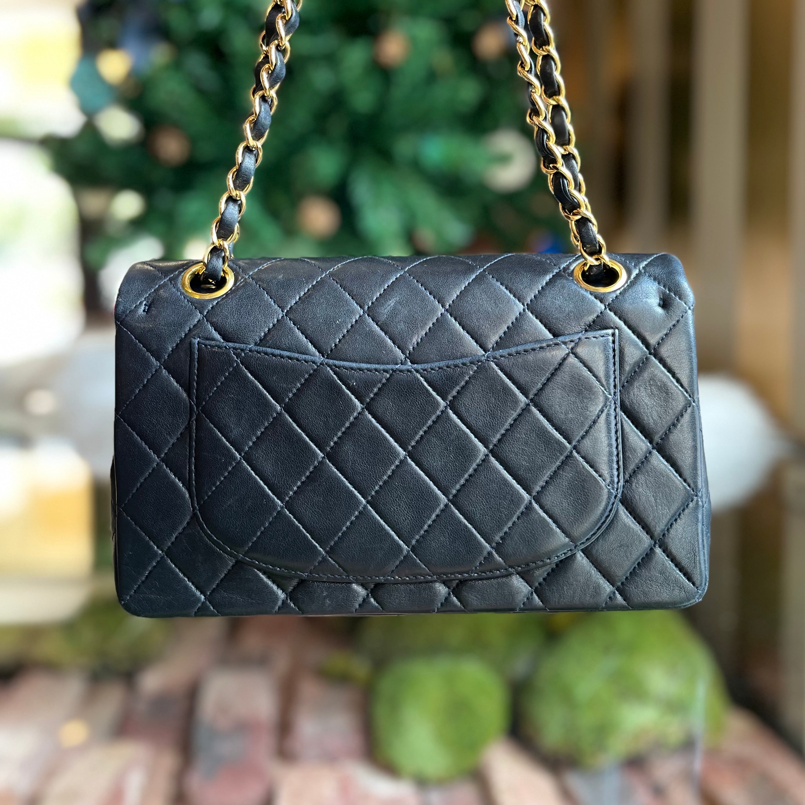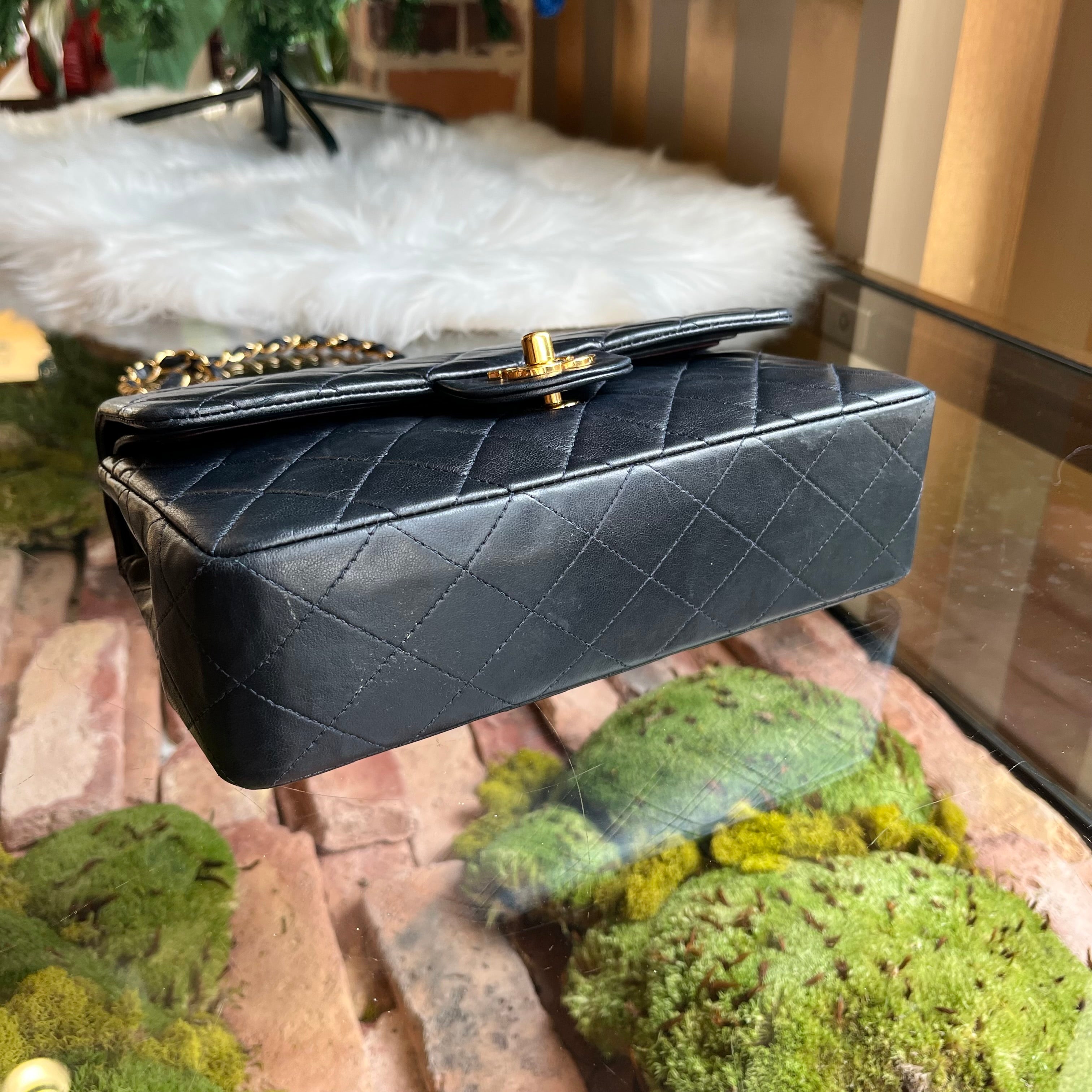 CHANEL Double Flap Small Navy Blue Quilted Lambskin Vintage Shoulder Bag