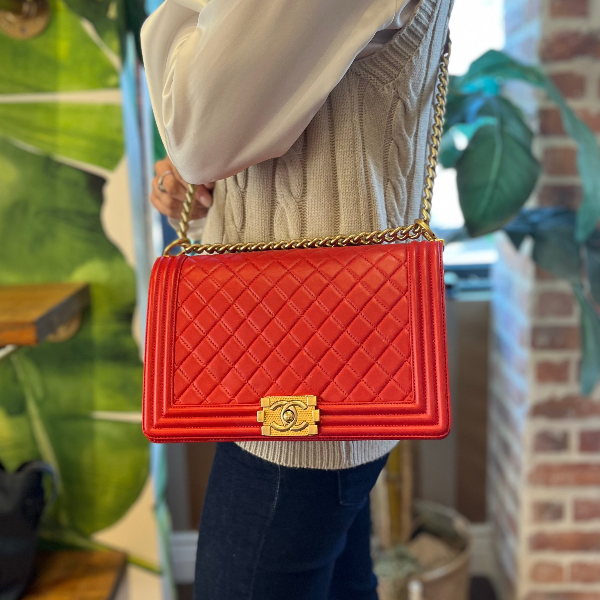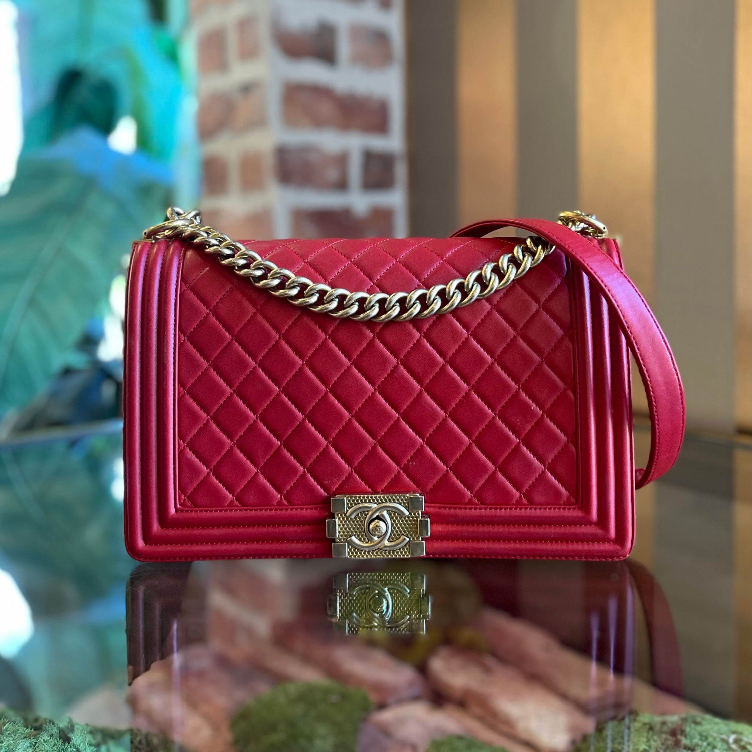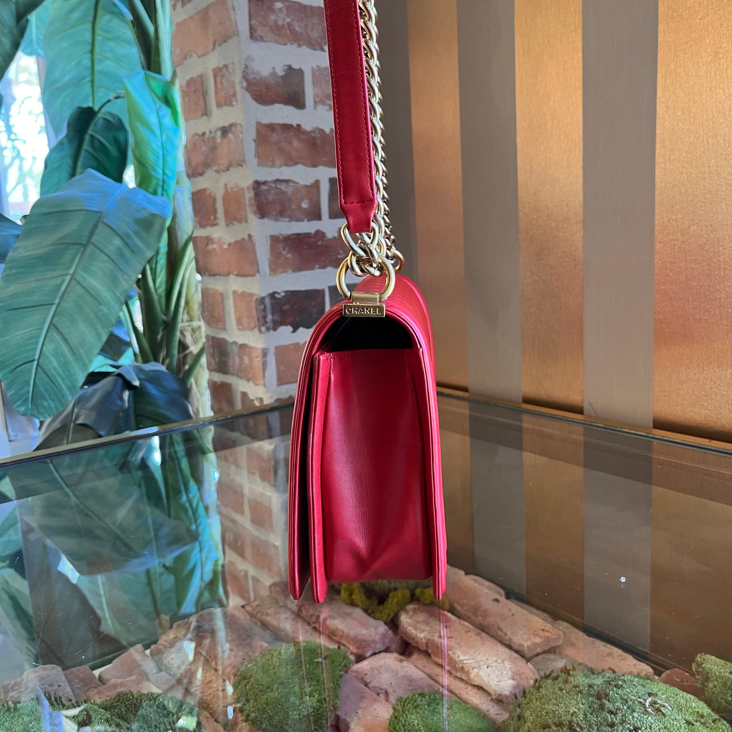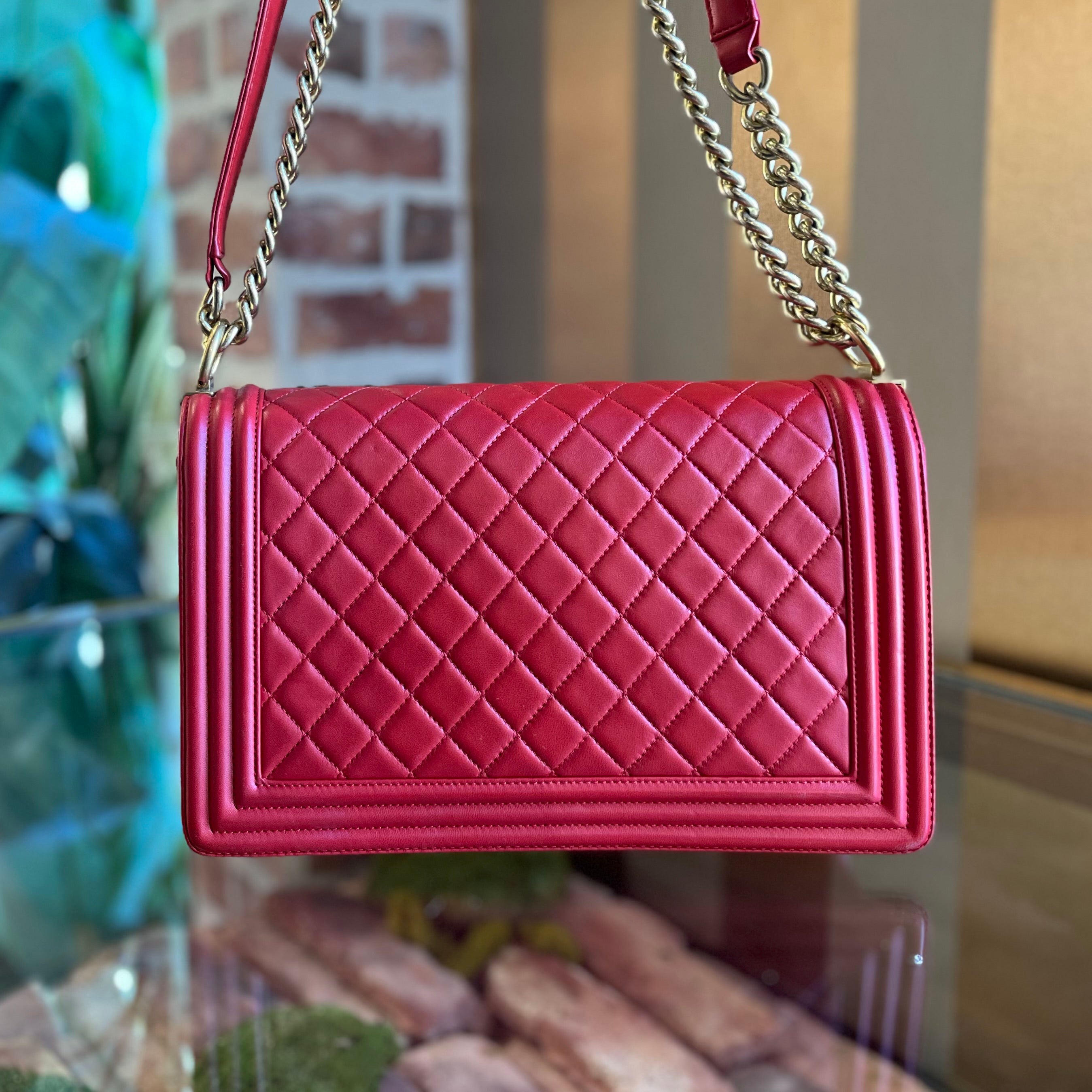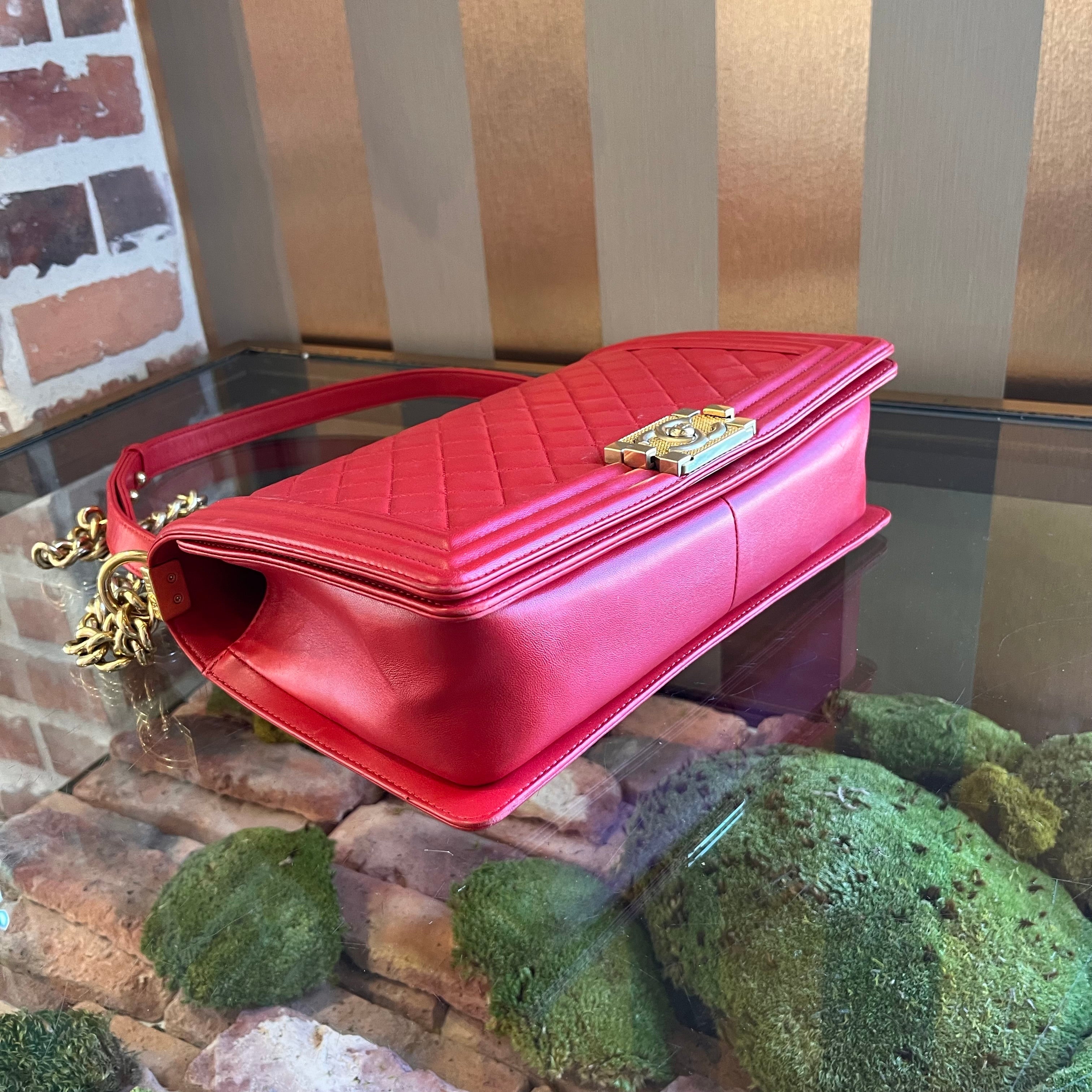 CHANEL Boy Flap New Medium Quilted Red Calfskin Shoulder Bag