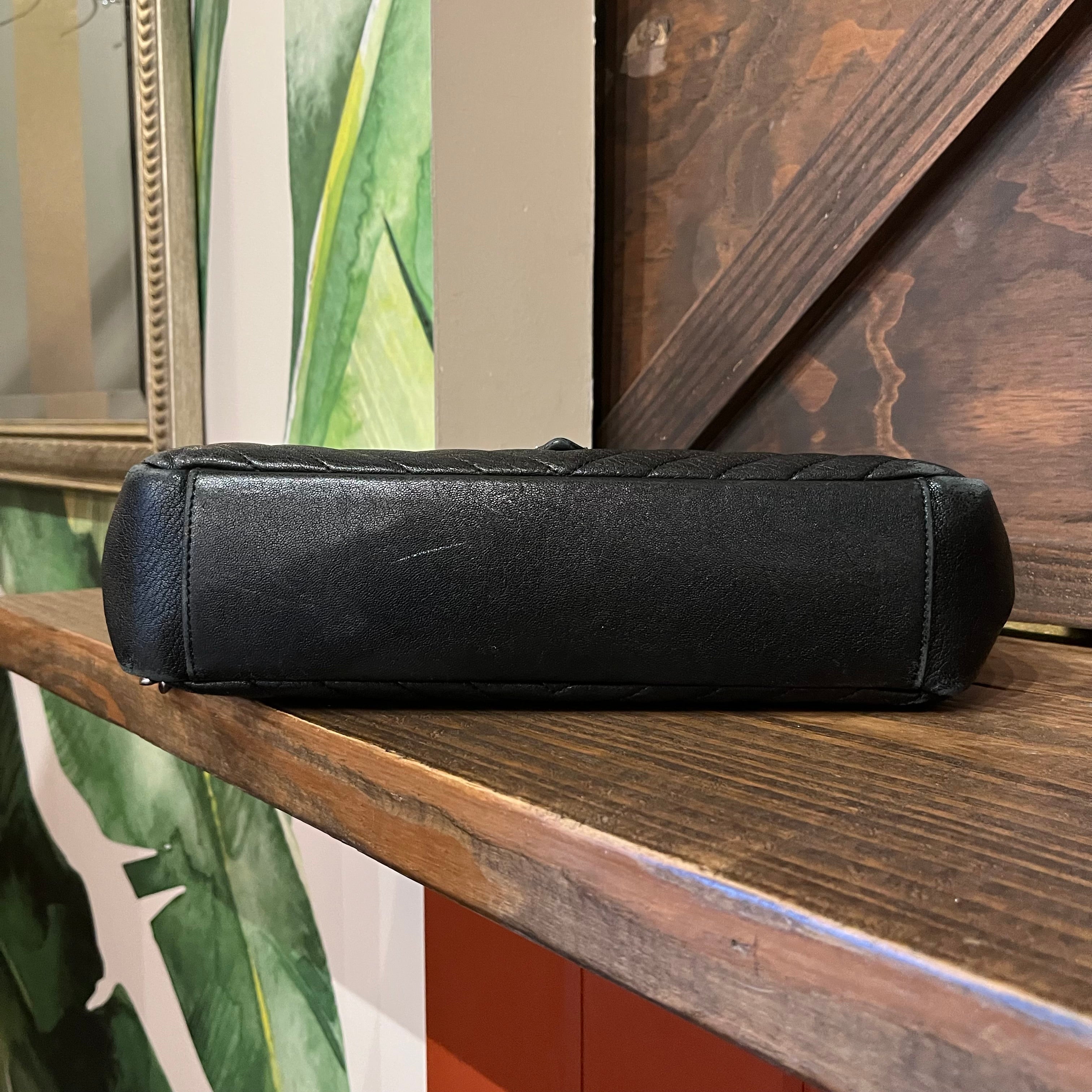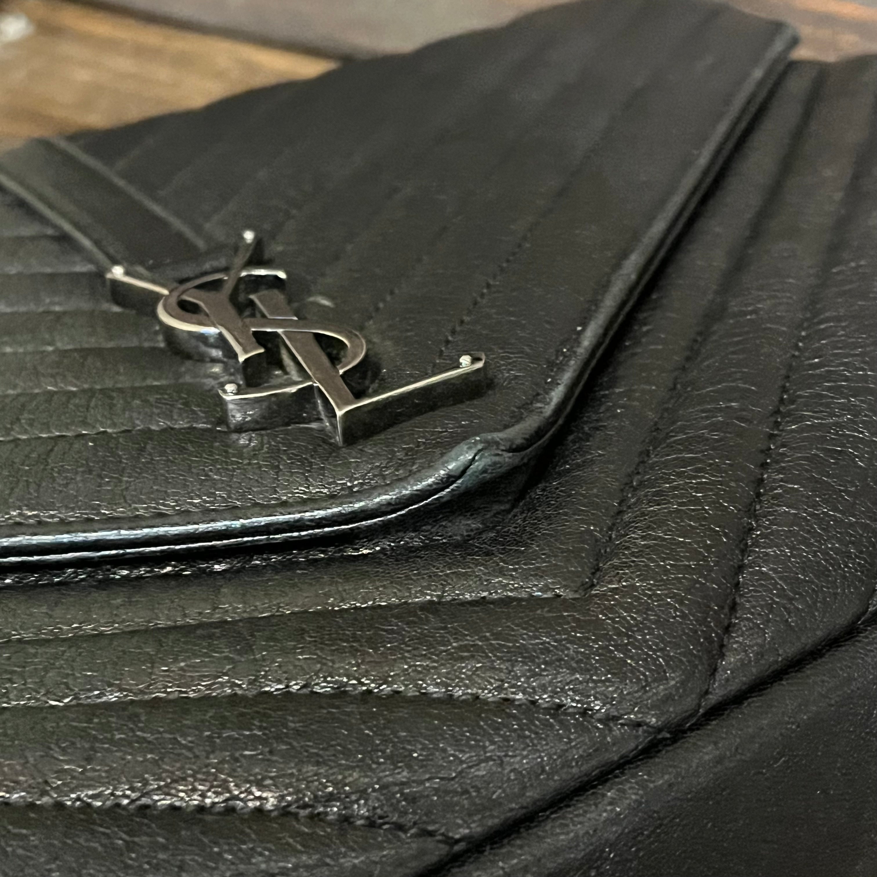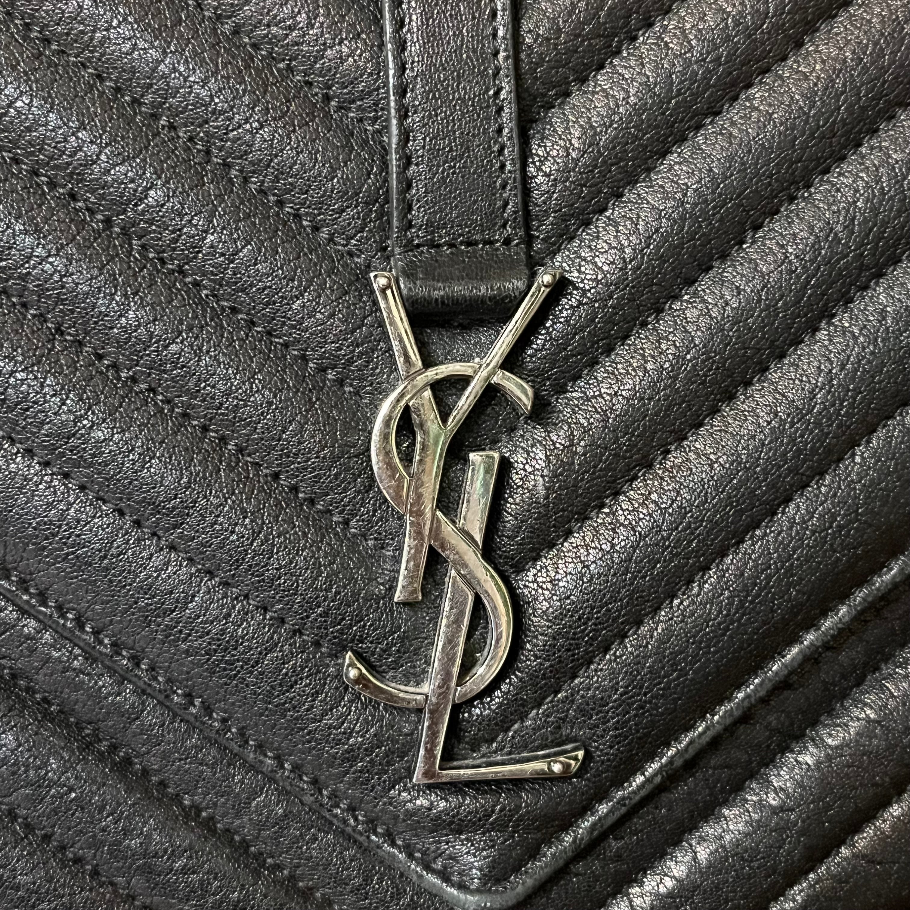 SAINT LAURENT YSL College Black Sheepskin Matelassé Chevron Monogram Shoulder Bag