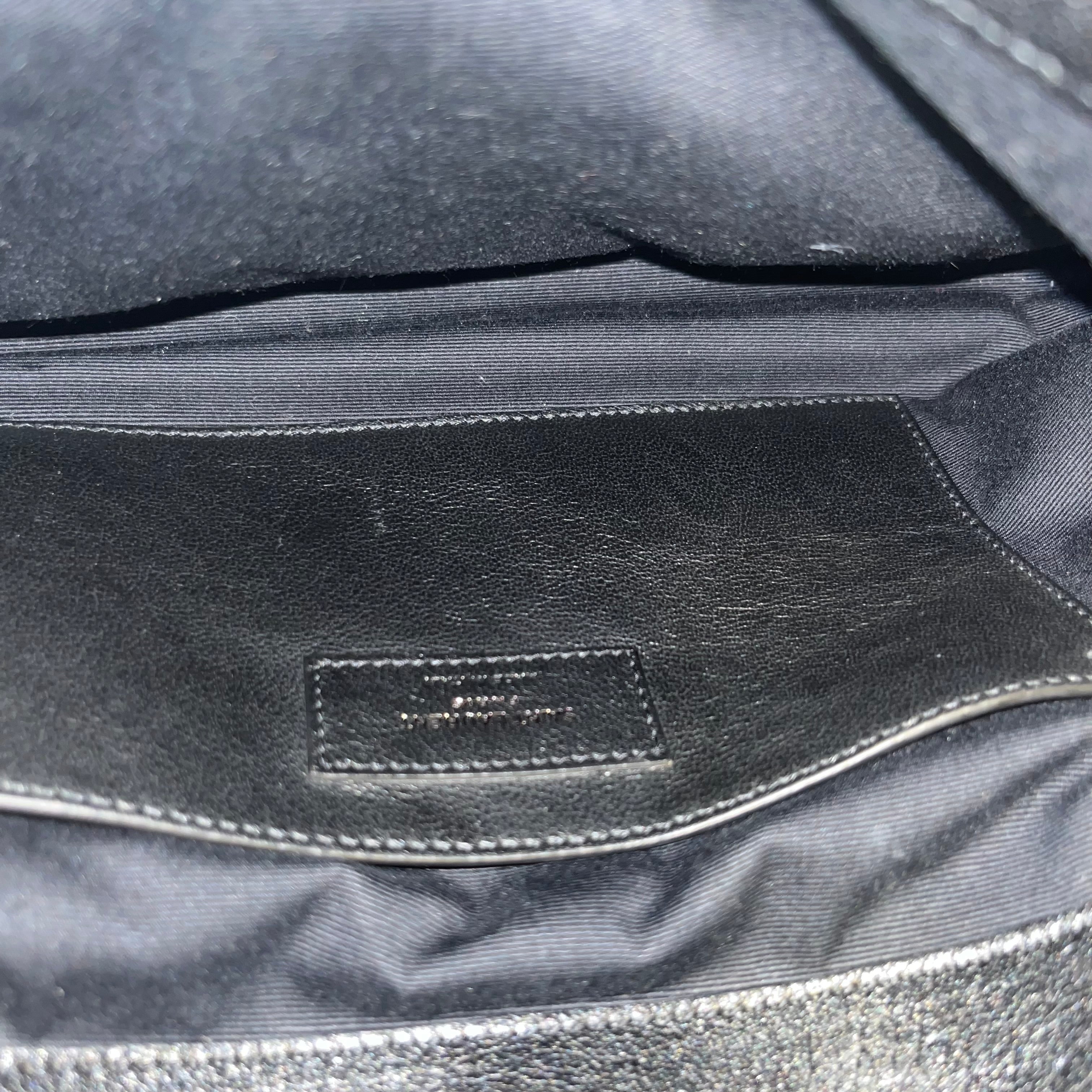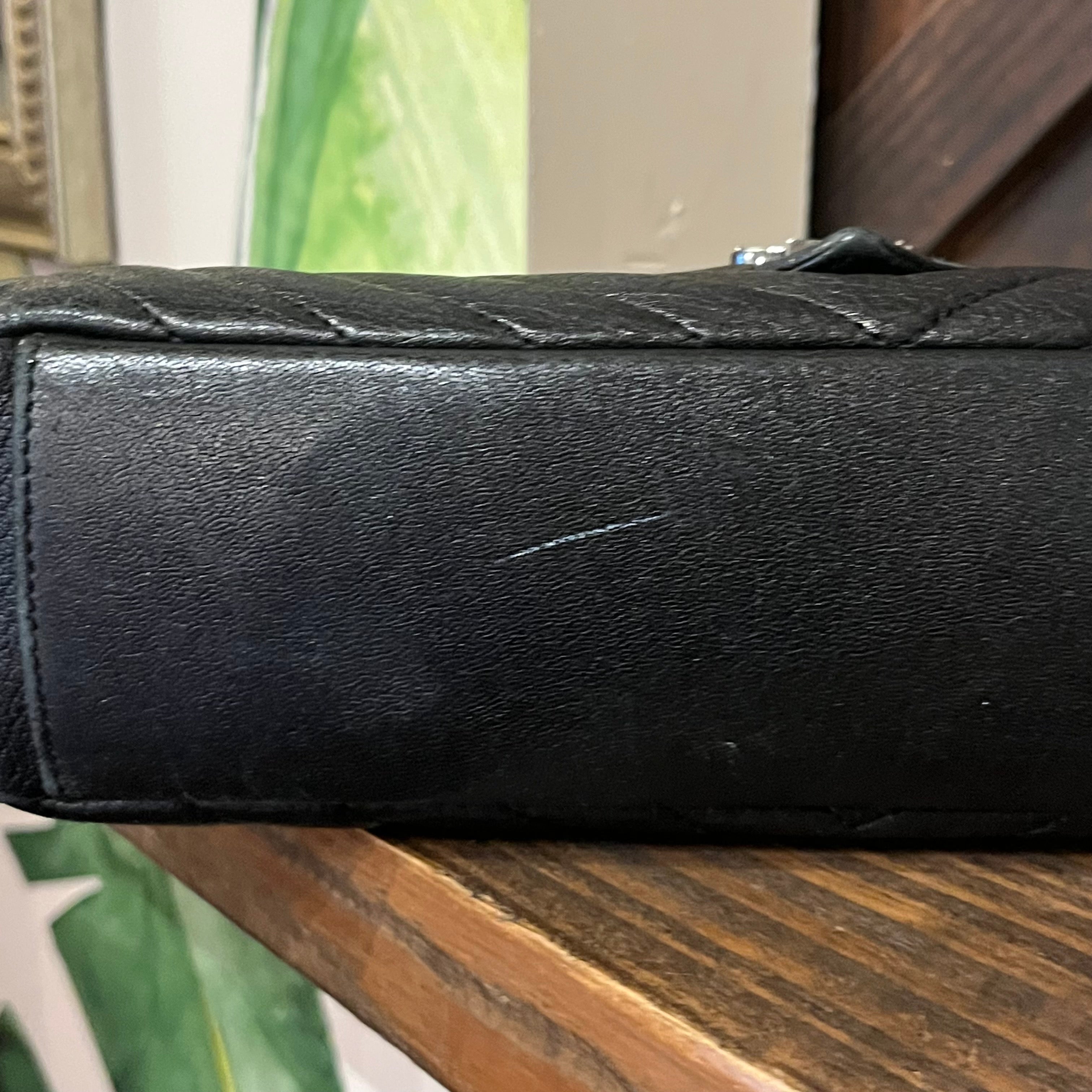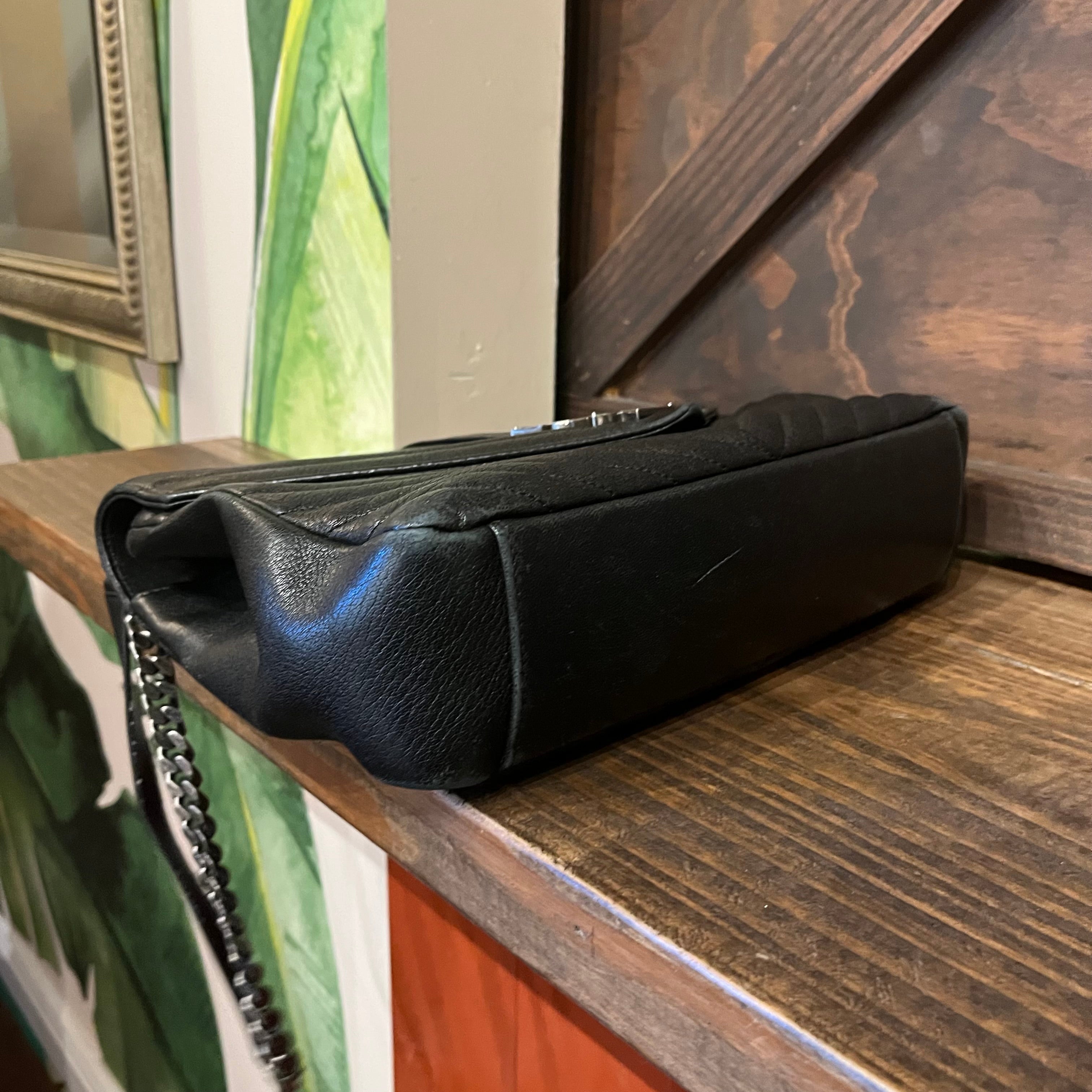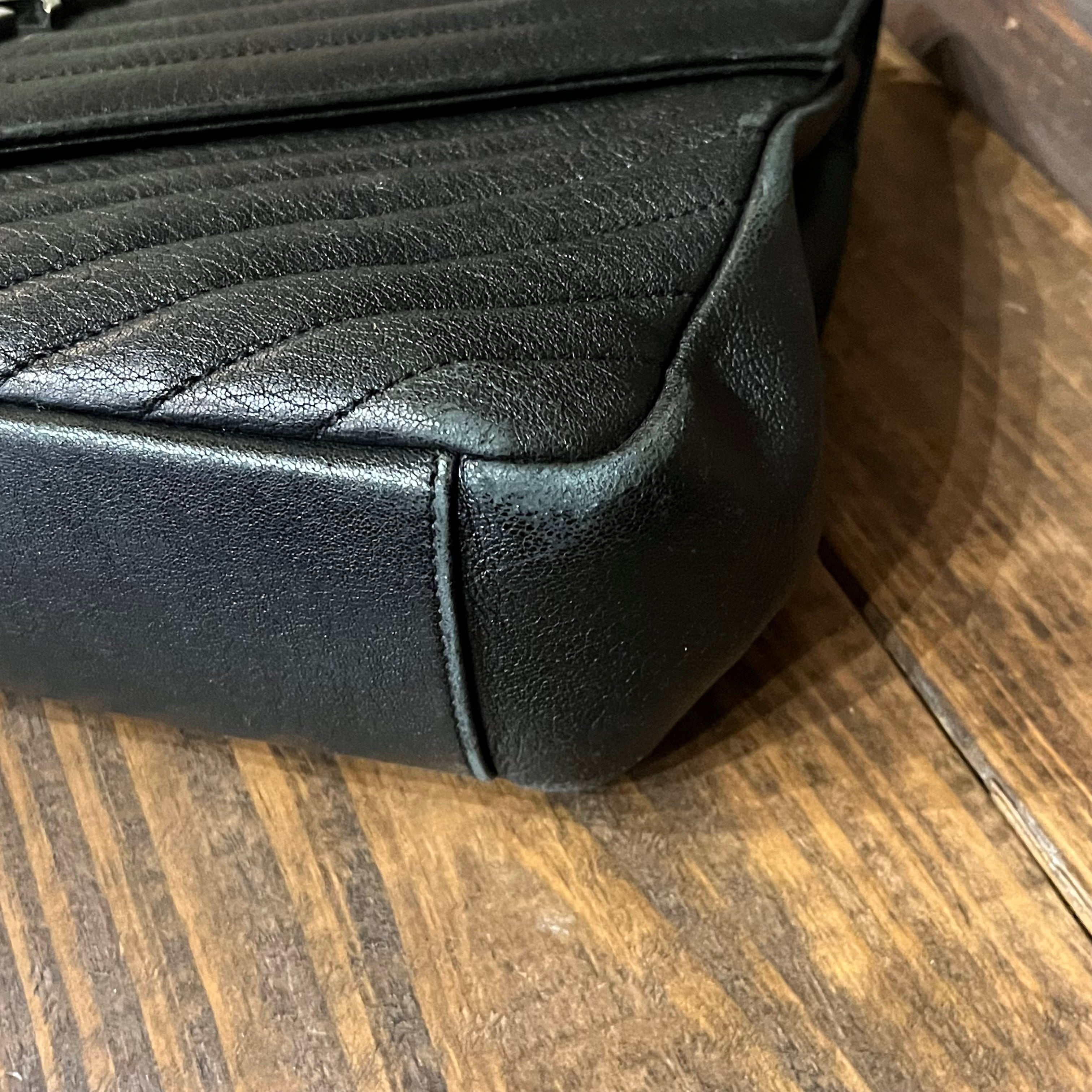 SAINT LAURENT YSL College Black Sheepskin Matelassé Chevron Monogram Shoulder Bag