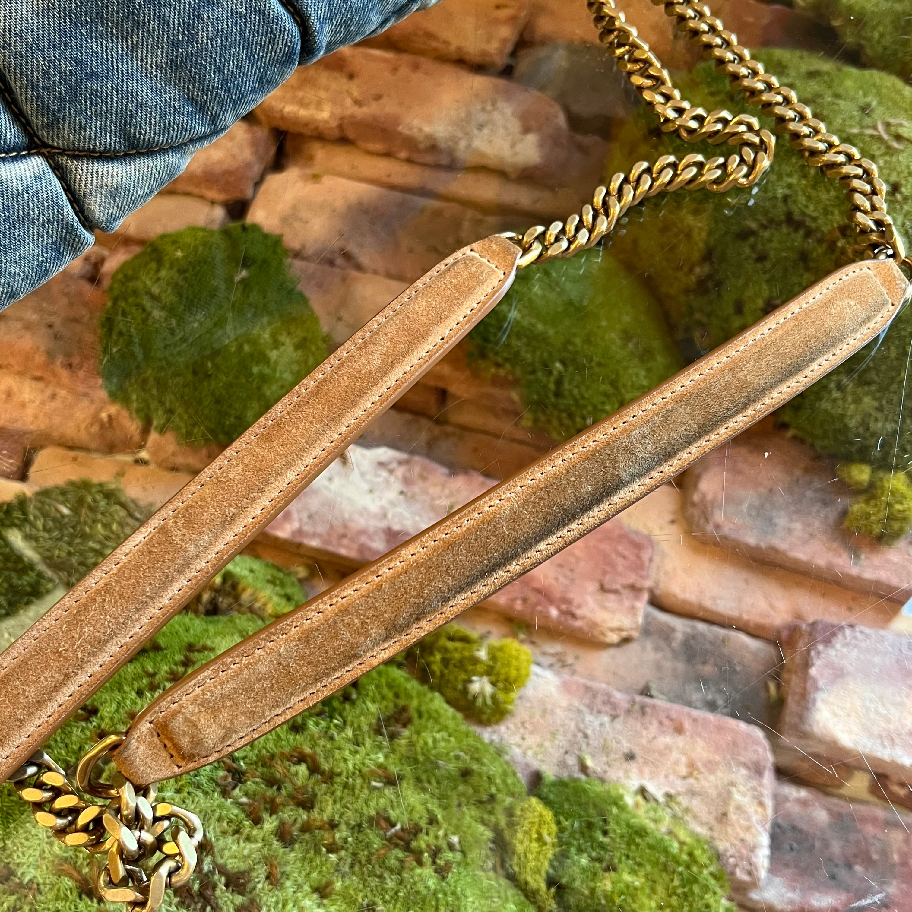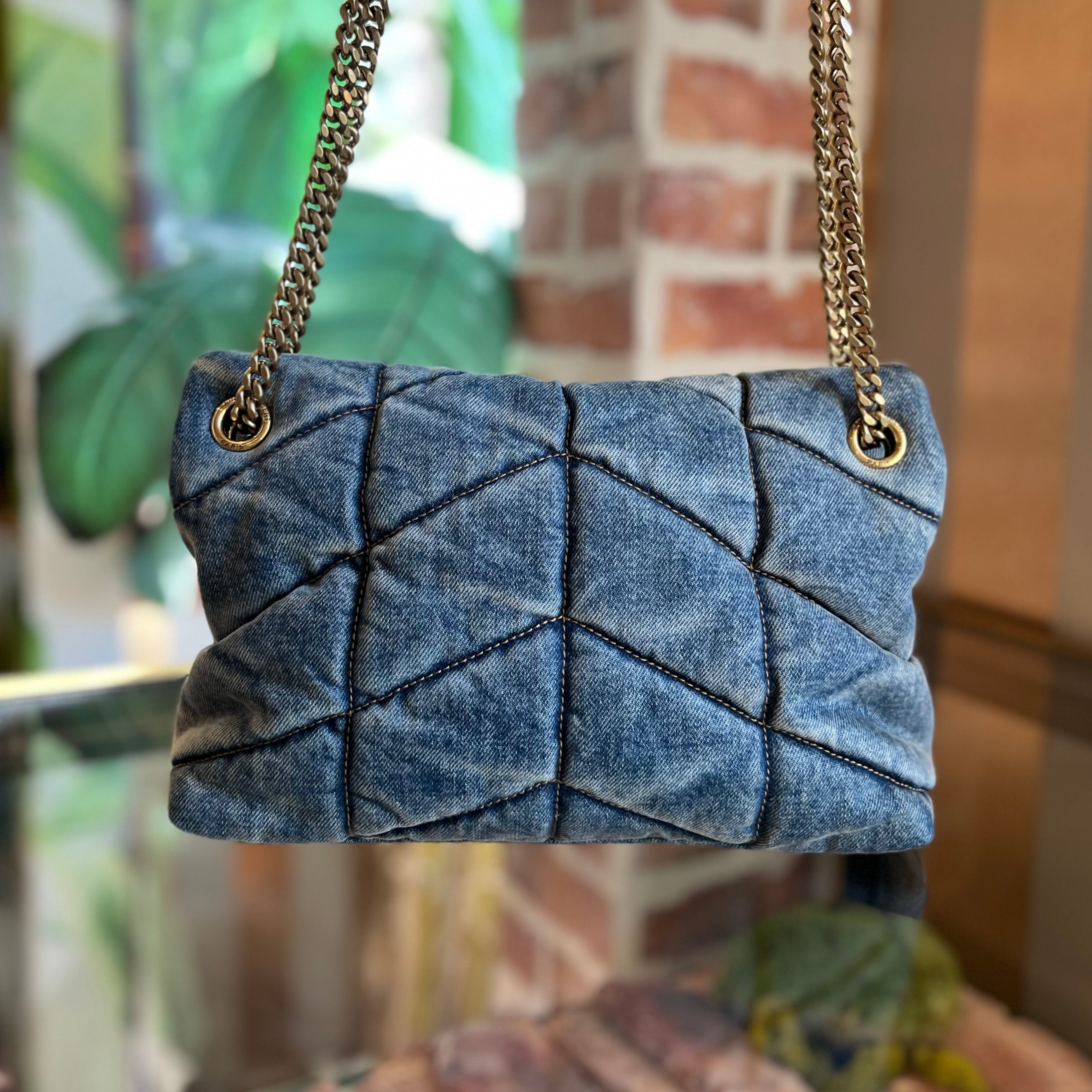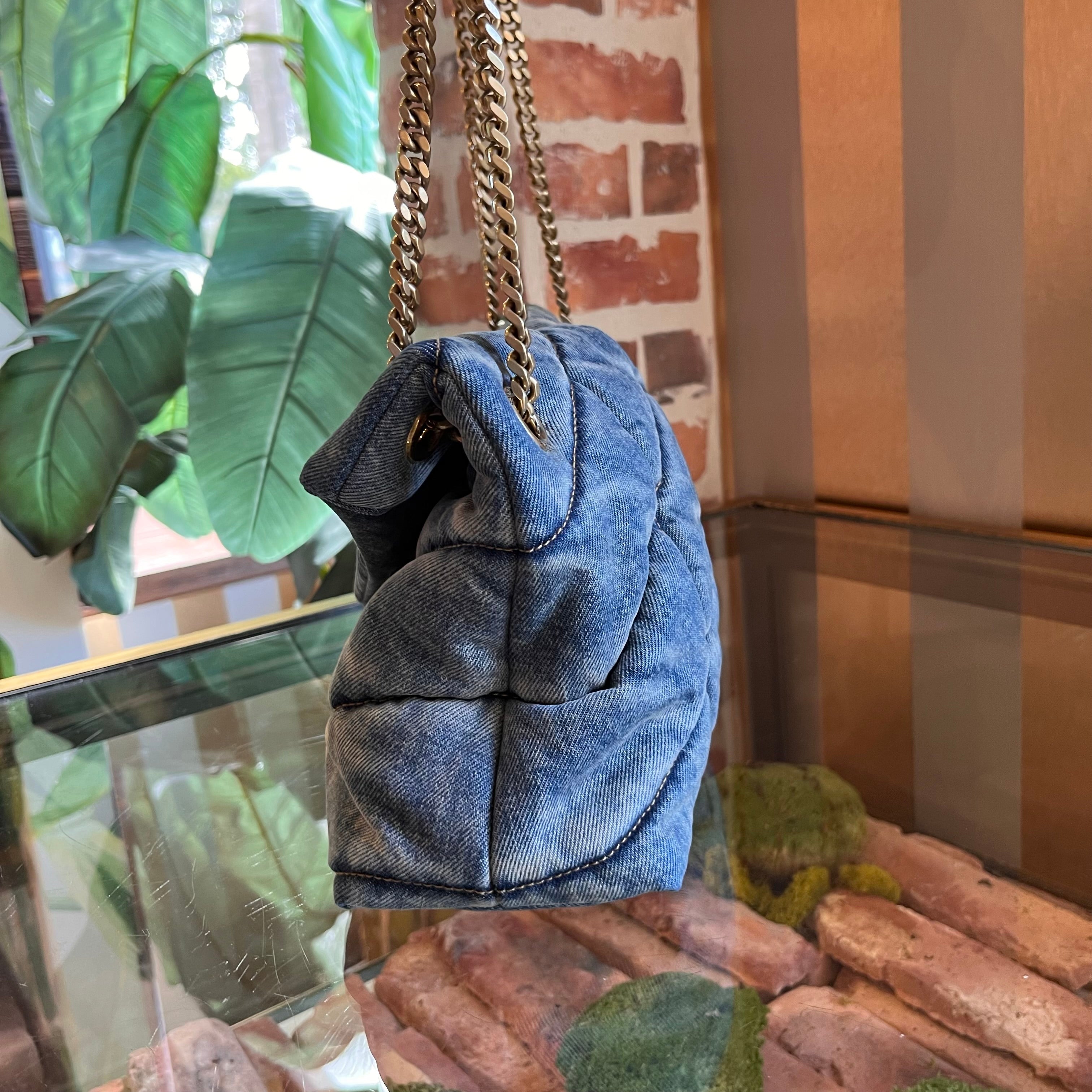 SAINT LAURENT Puffer Small Quilted Denim Shoulder Bag