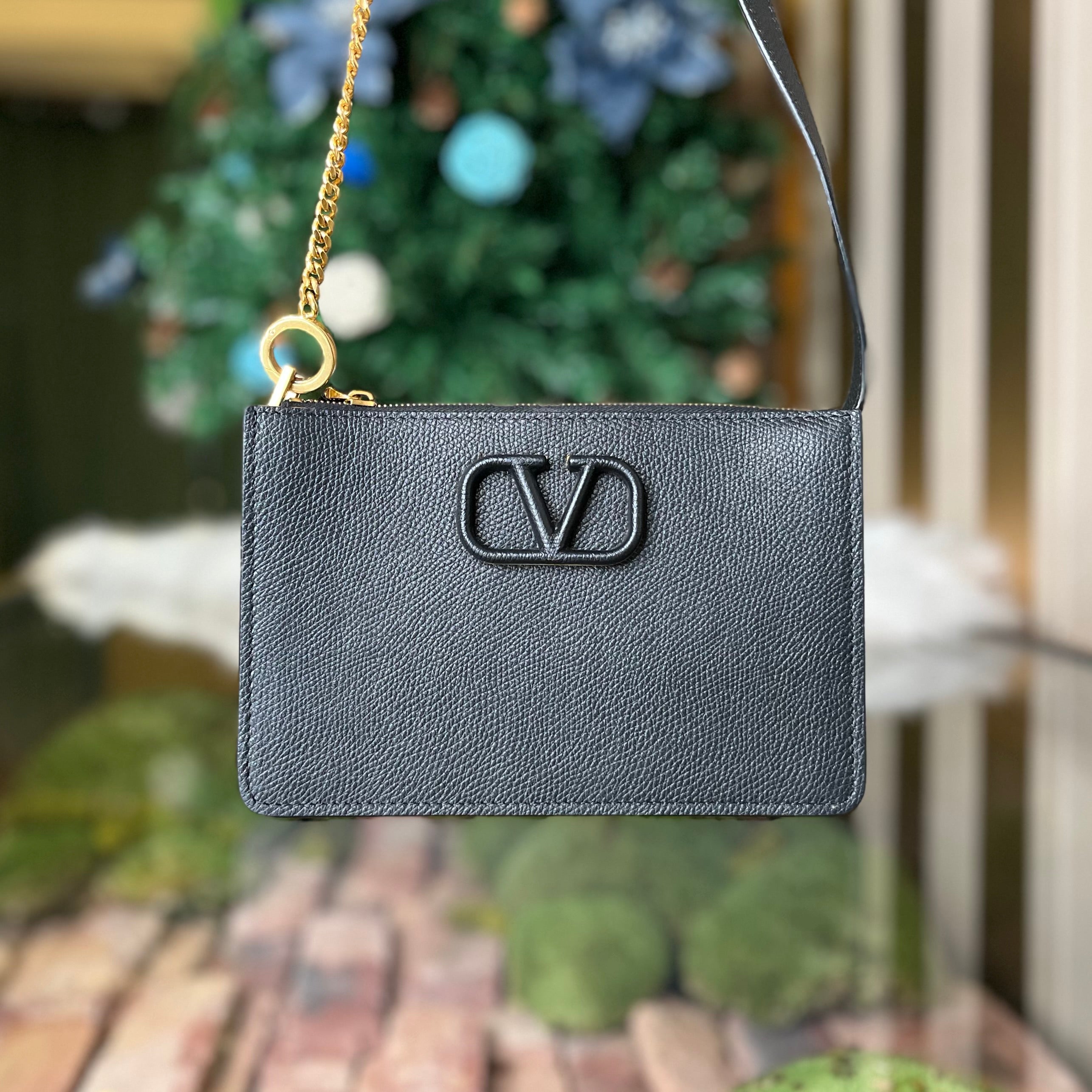 VALENTINO V Sling Black Grained Calfskin Shoulder Bag