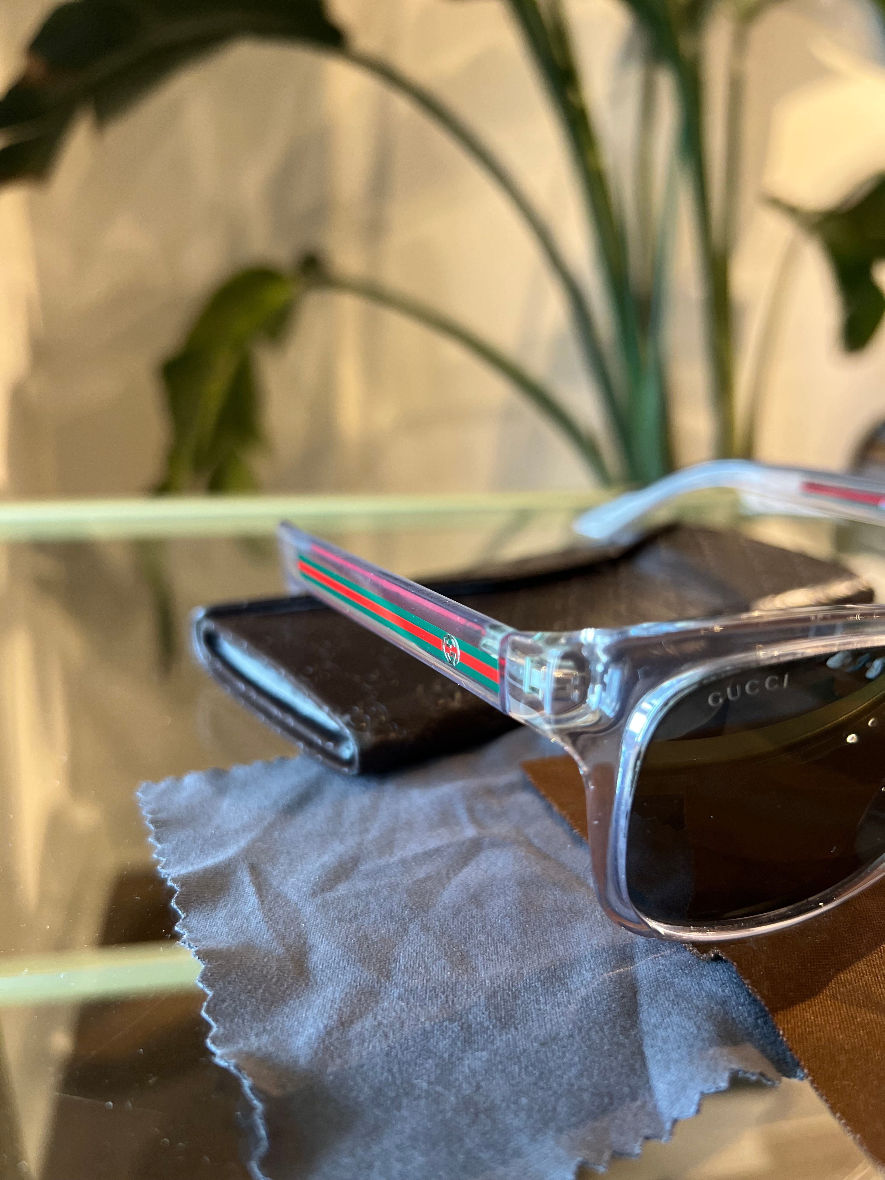 - Details: Wide temples featuring the interlocking GG logo in gold-tone hardware