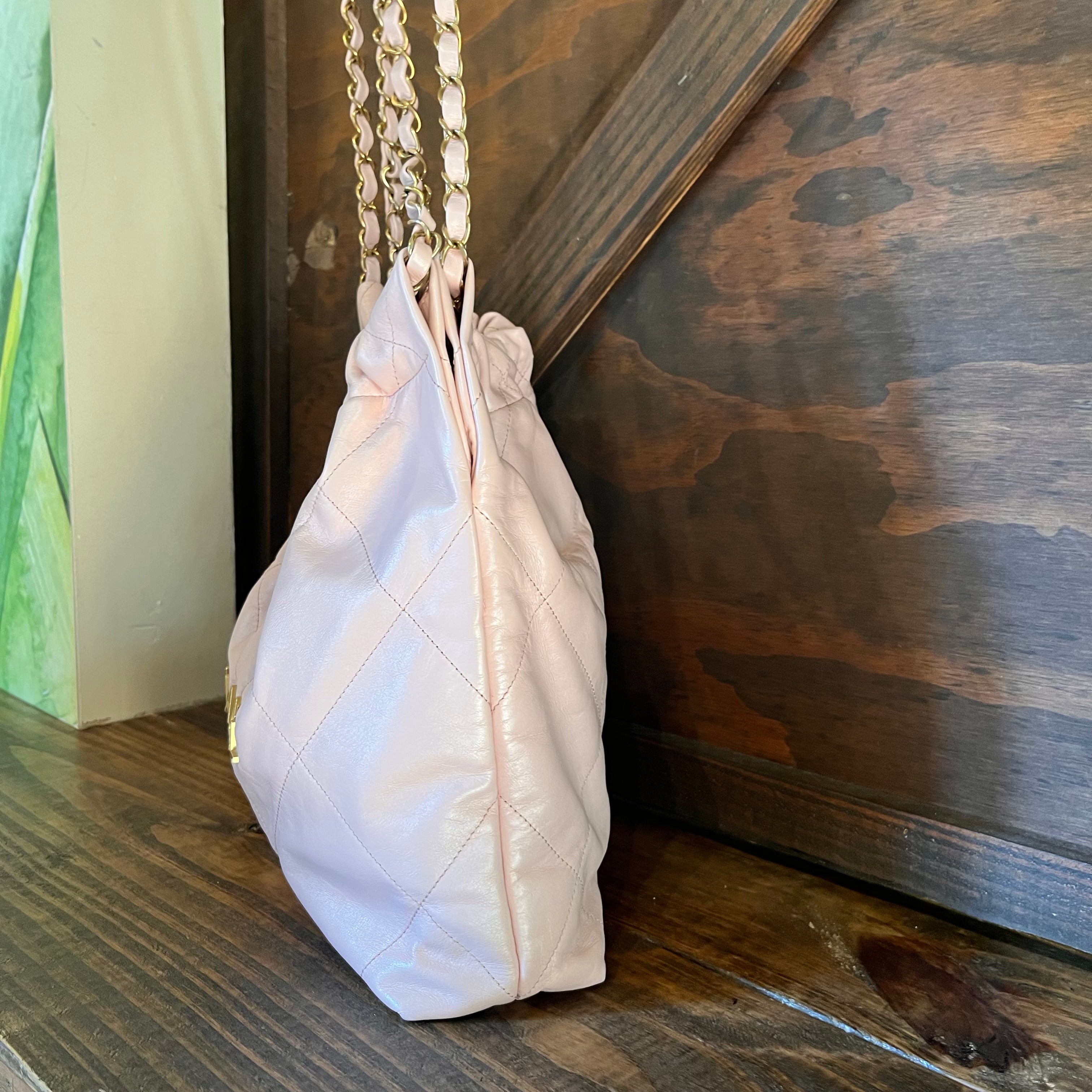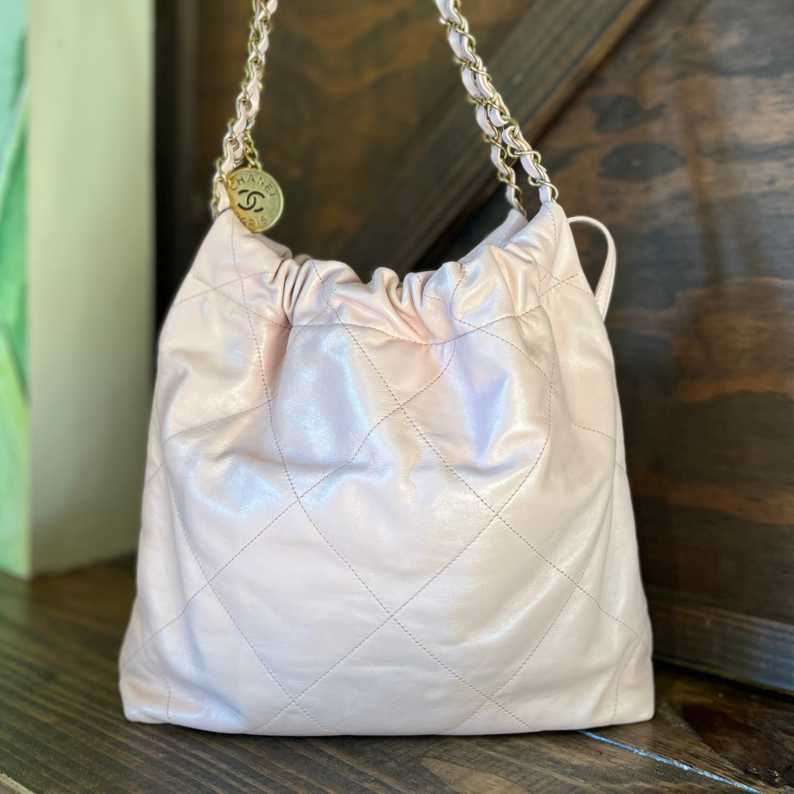 CHANEL Pink Calfskin 22 Shoulder Bag Small