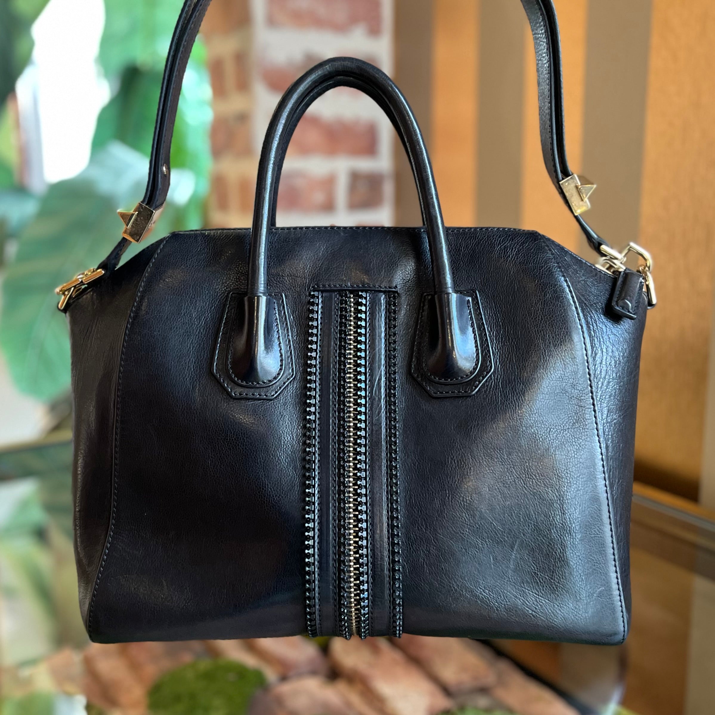 GIVENCHY Antigona Medium Black Leather Zippered Tote Bag