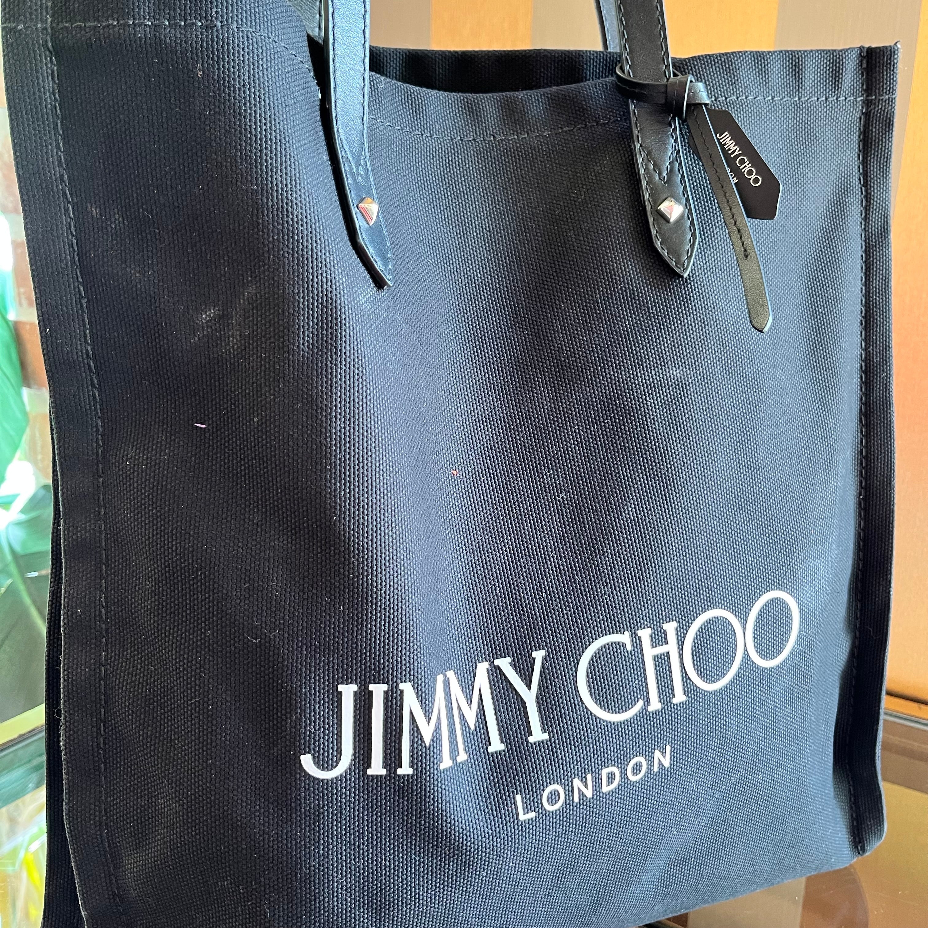 JIMMY CHOO Logo Canvas North South Tote Bag Second-Hand Collections