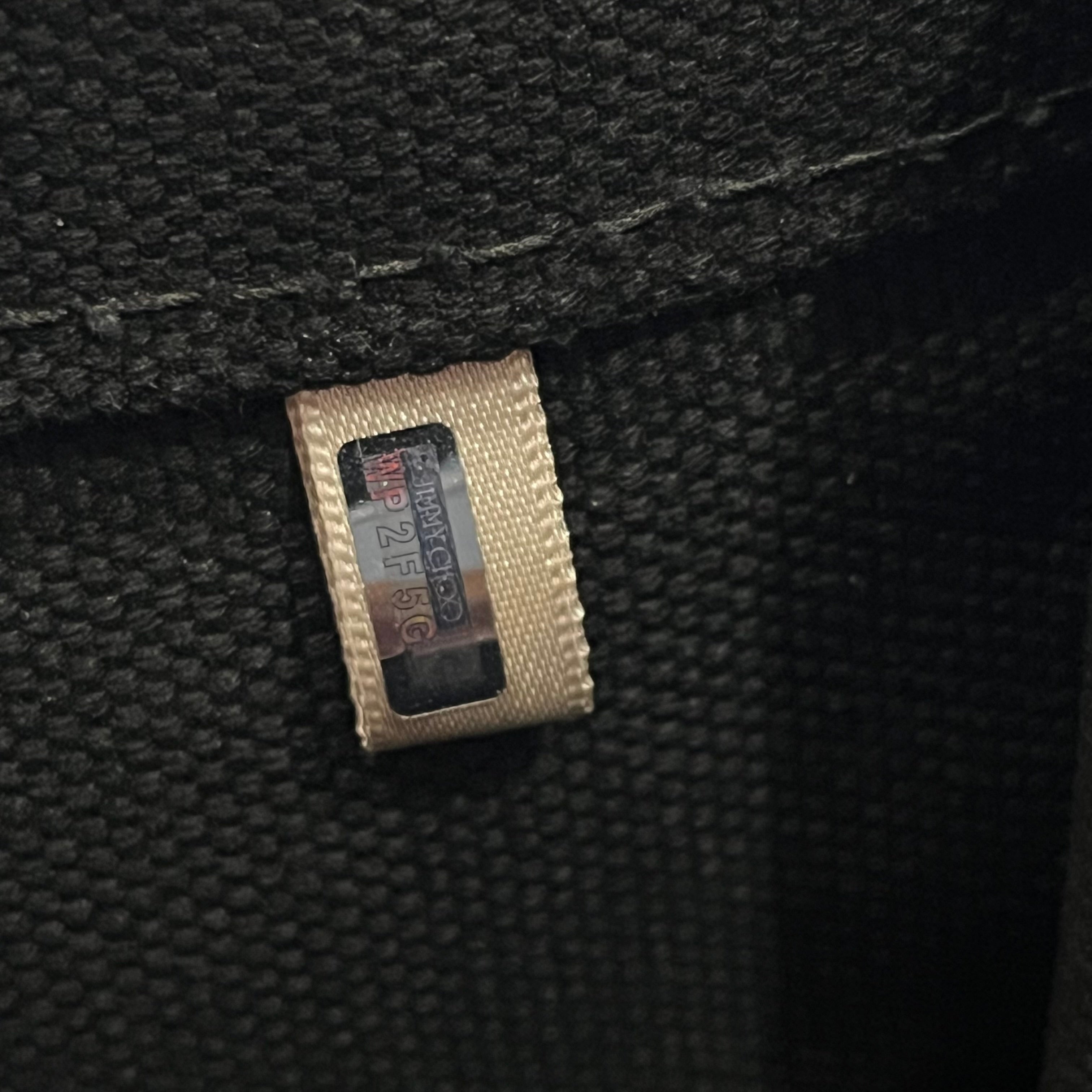 • Exterior: The canvas displays rubbing and stains that could possibly be cleaned if desired after purchase although it is wearable as is. Gentle scratches to the base.