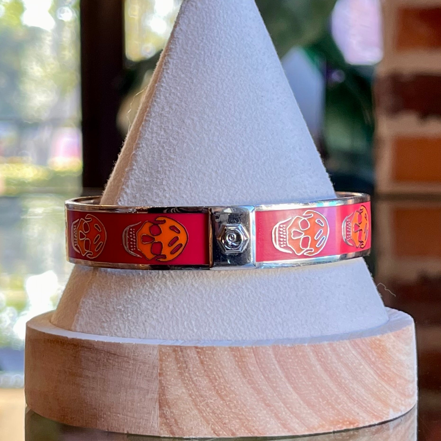 ALEXANDER MCQUEEN Red Enamel Skull Bangle Bracelet