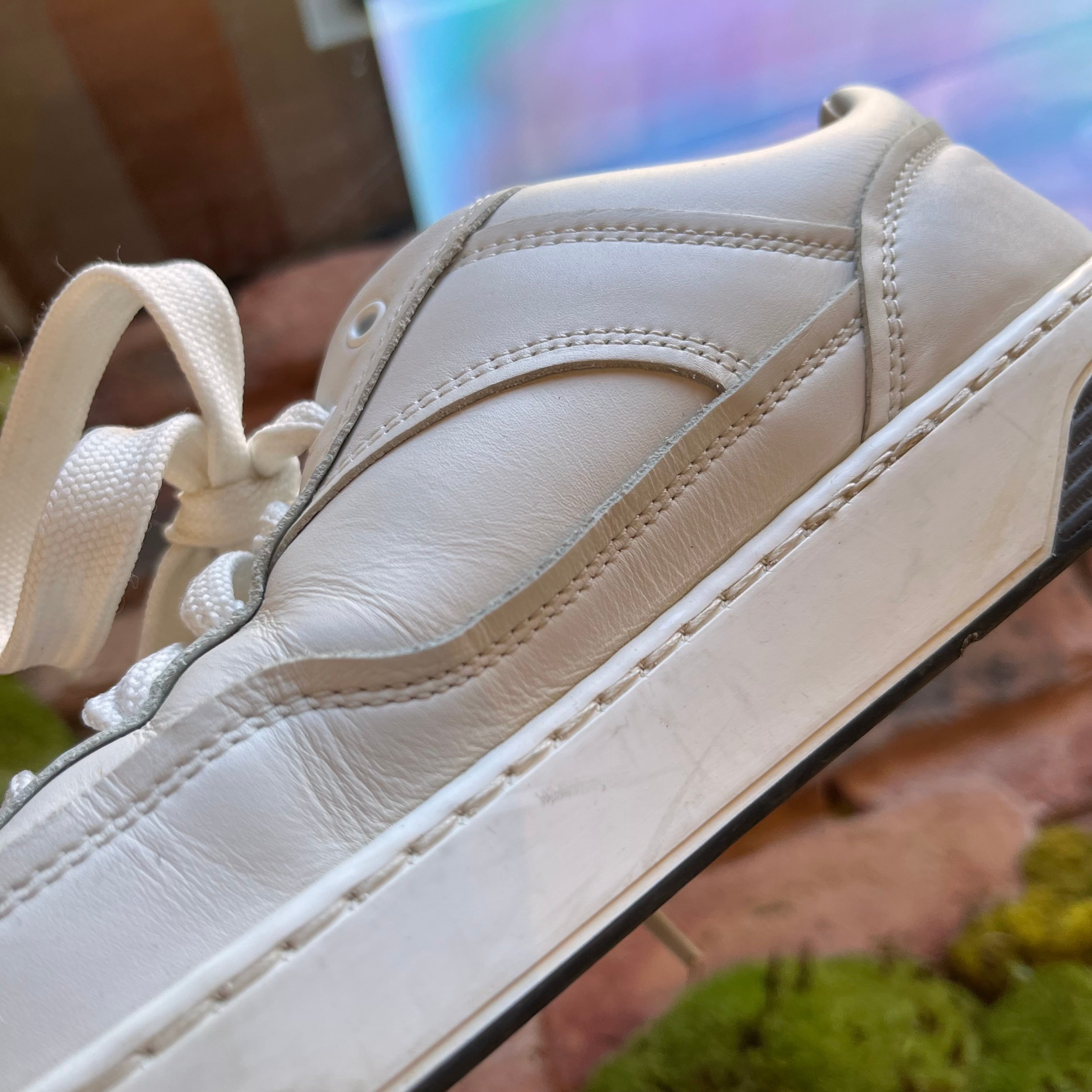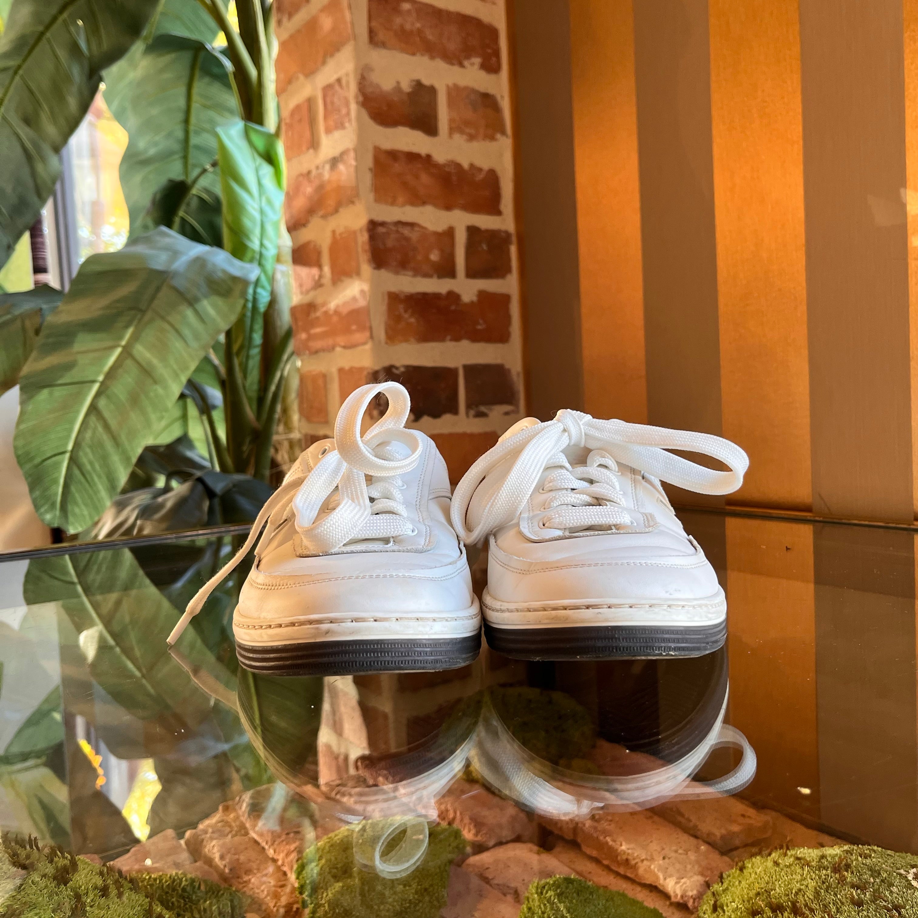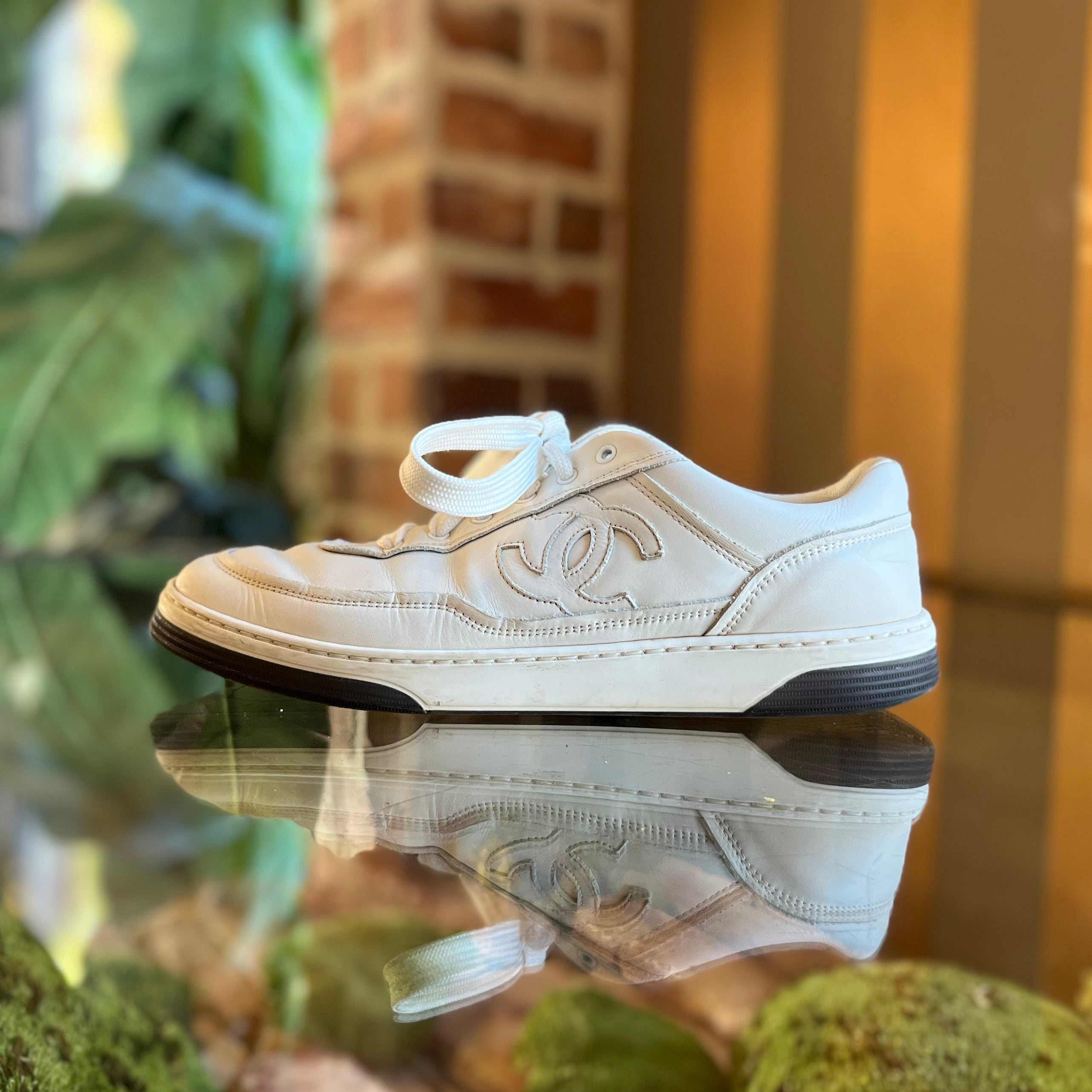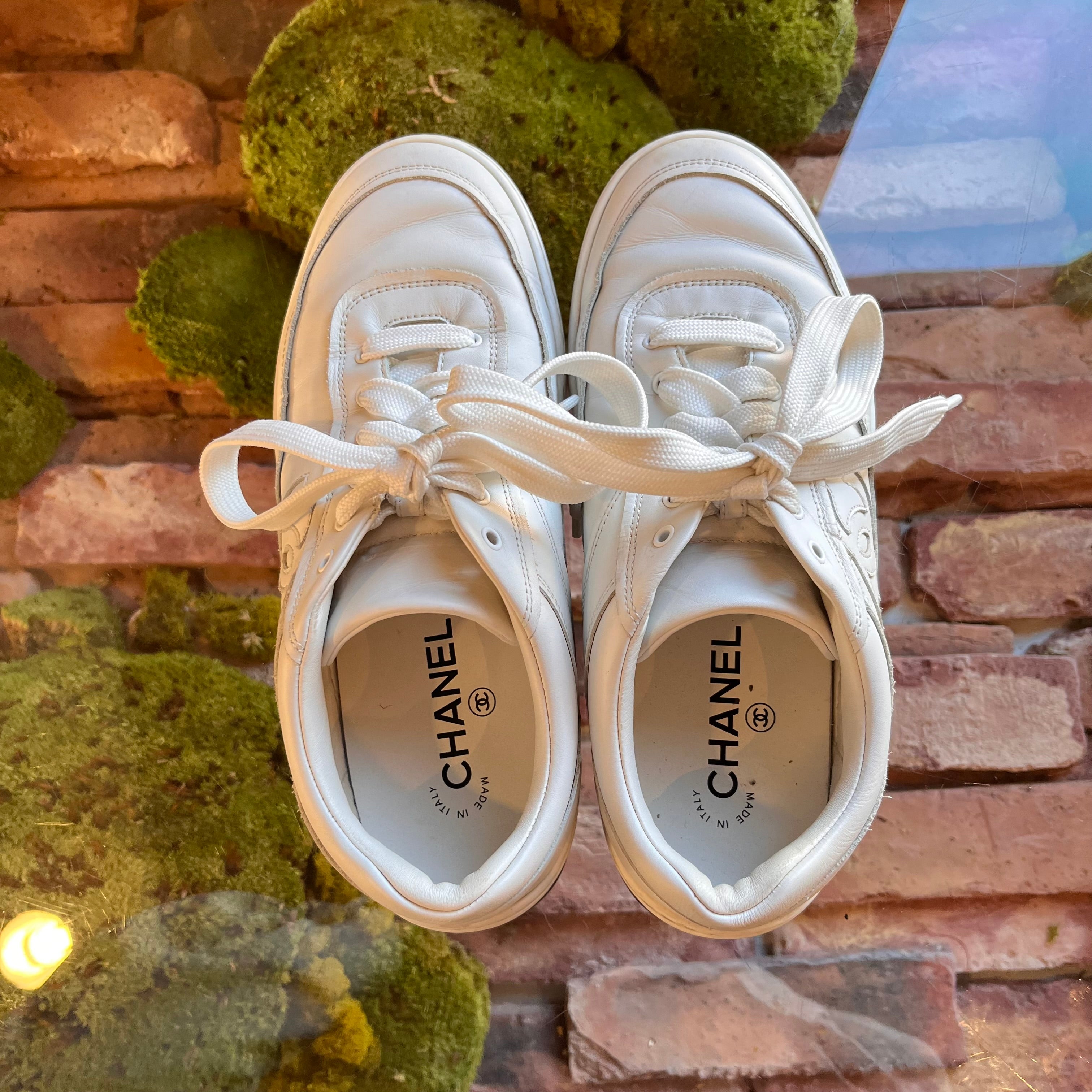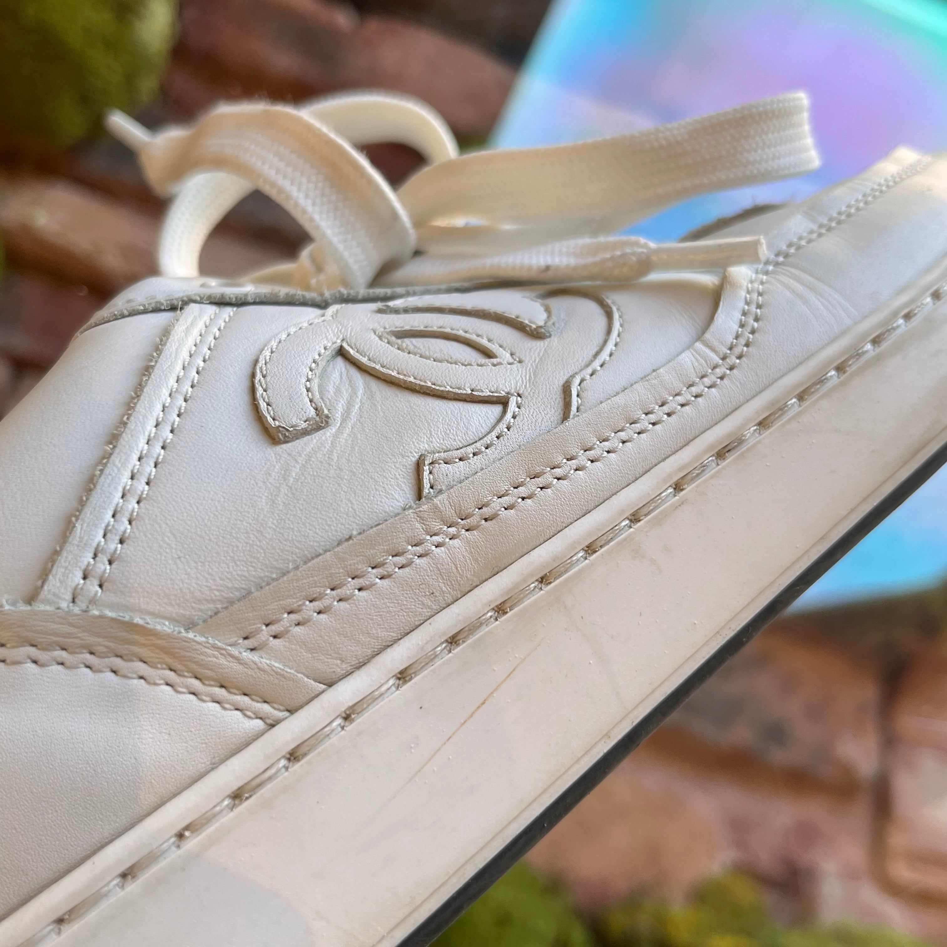 CHANEL White CC Leather Sneakers SZ8 Second-Hand Collections
