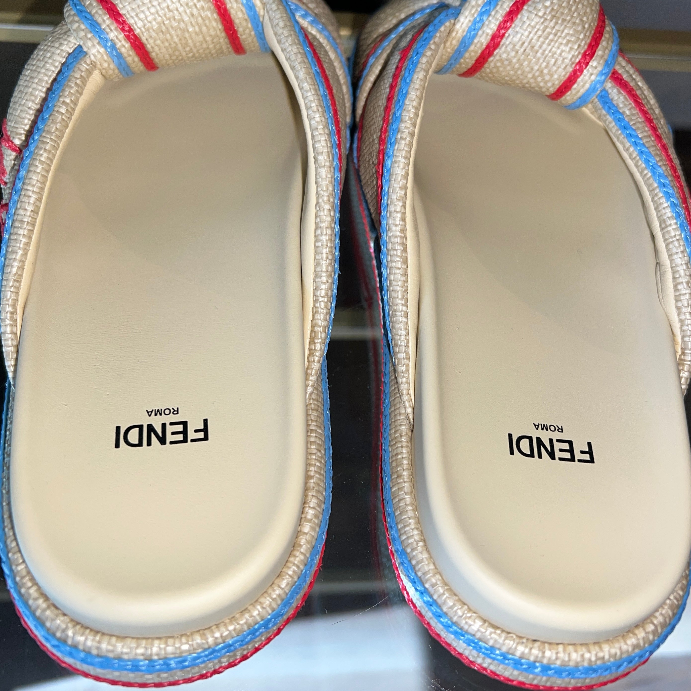 FENDI Raffia Embroidered Knot Sandals SZ 36(6US)