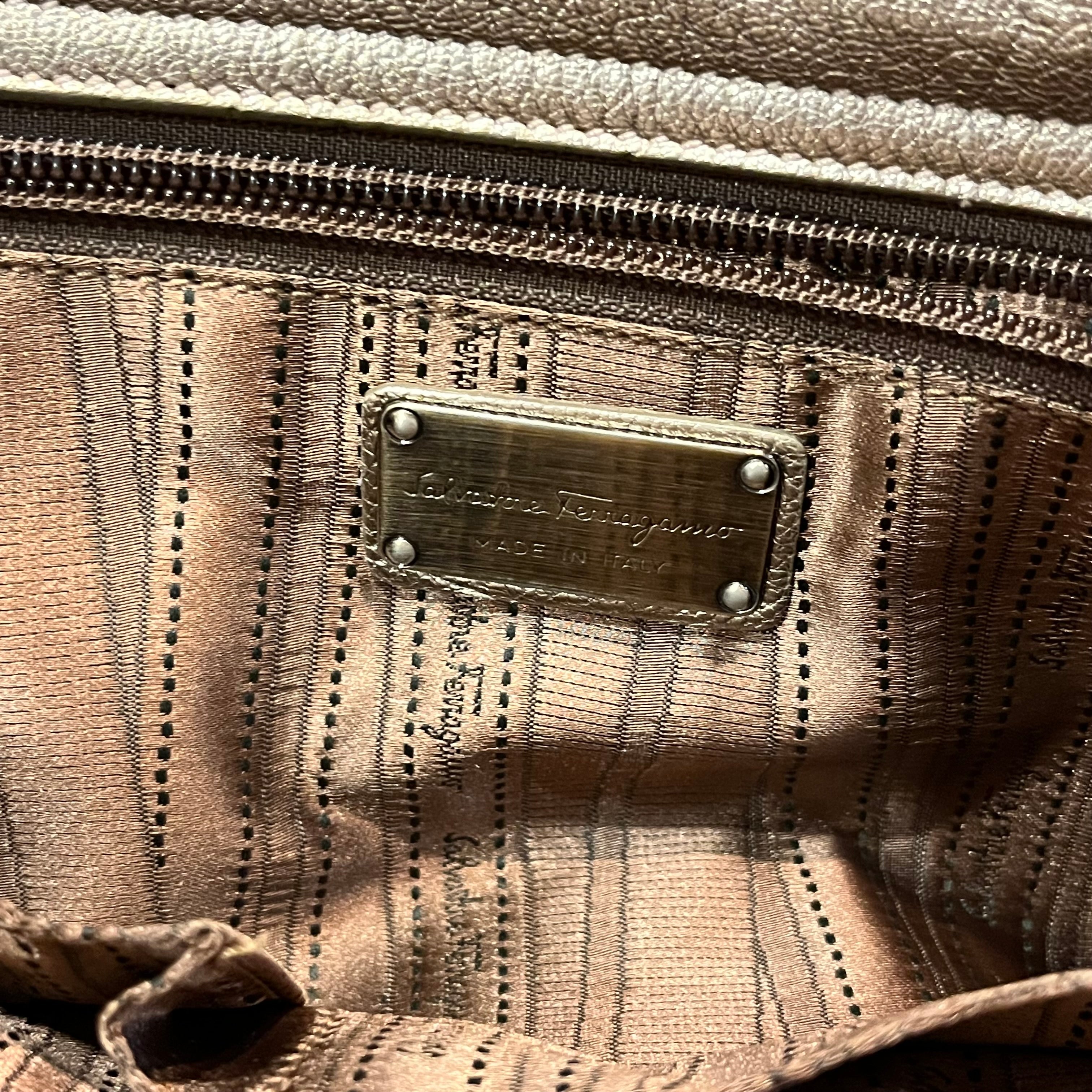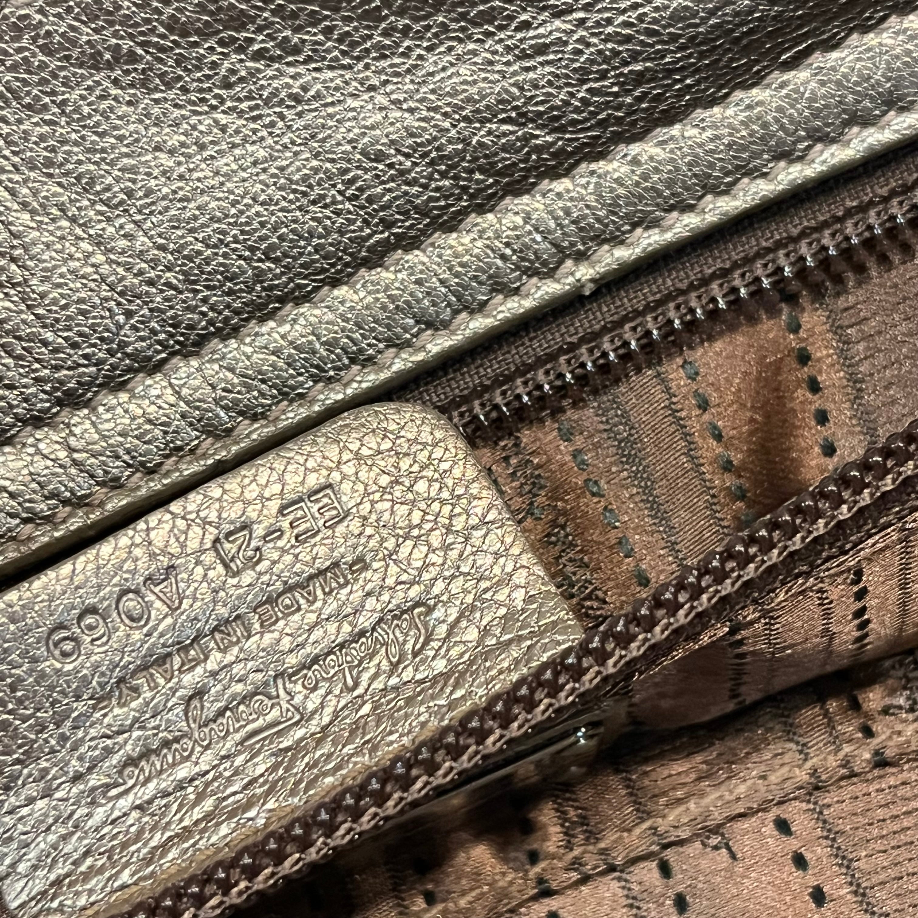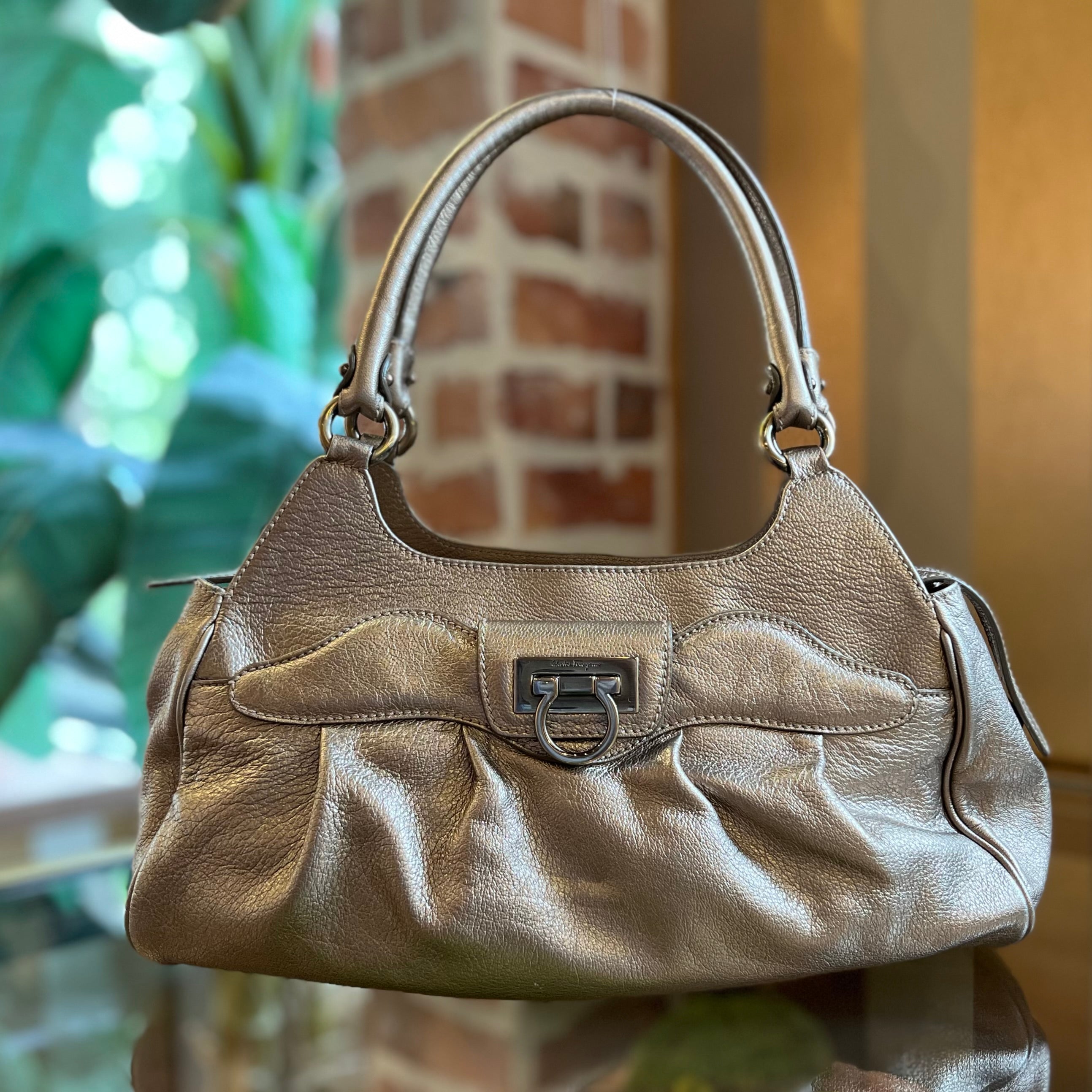 FERRAGAMO Metallic Champagne Leather Shoulder Bag