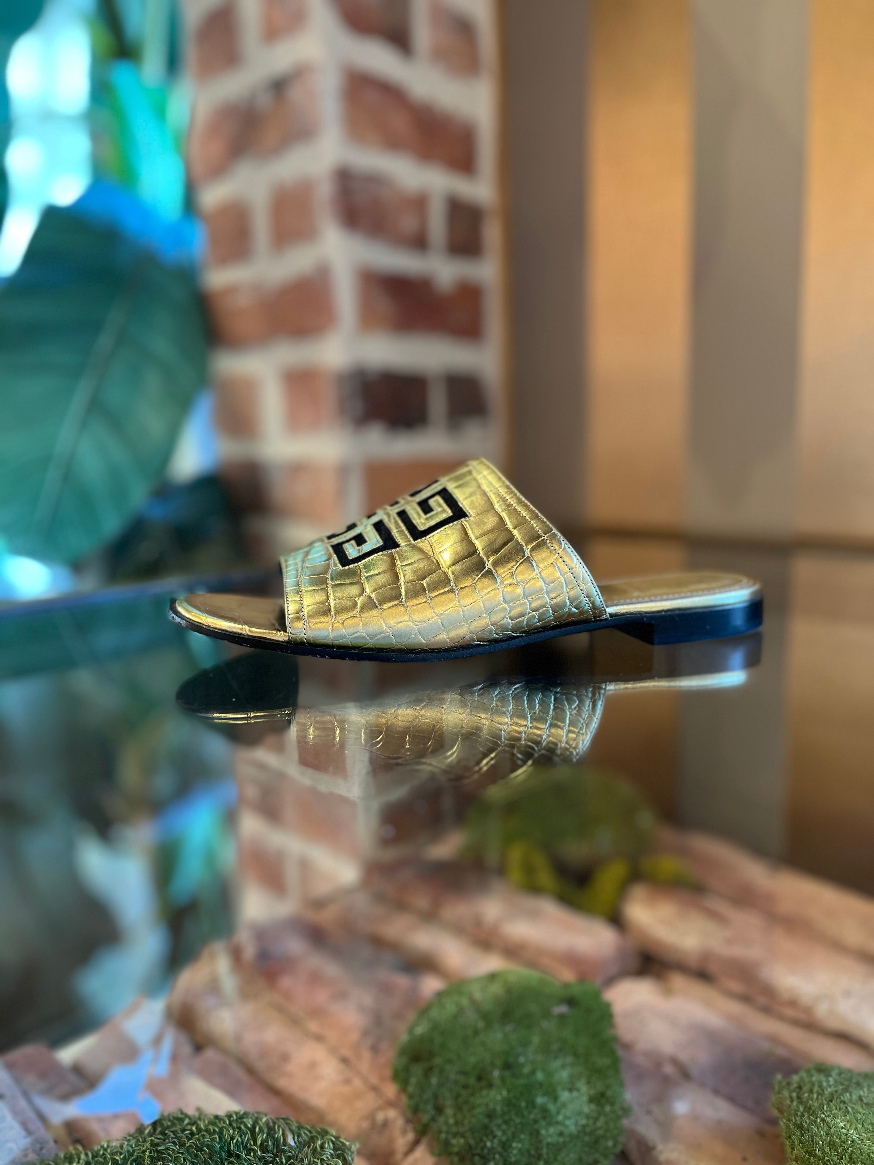 GIVENCHY 4G Cut Out Gold Metallic Leather Slip On Sandals SZ 39 (9 US)