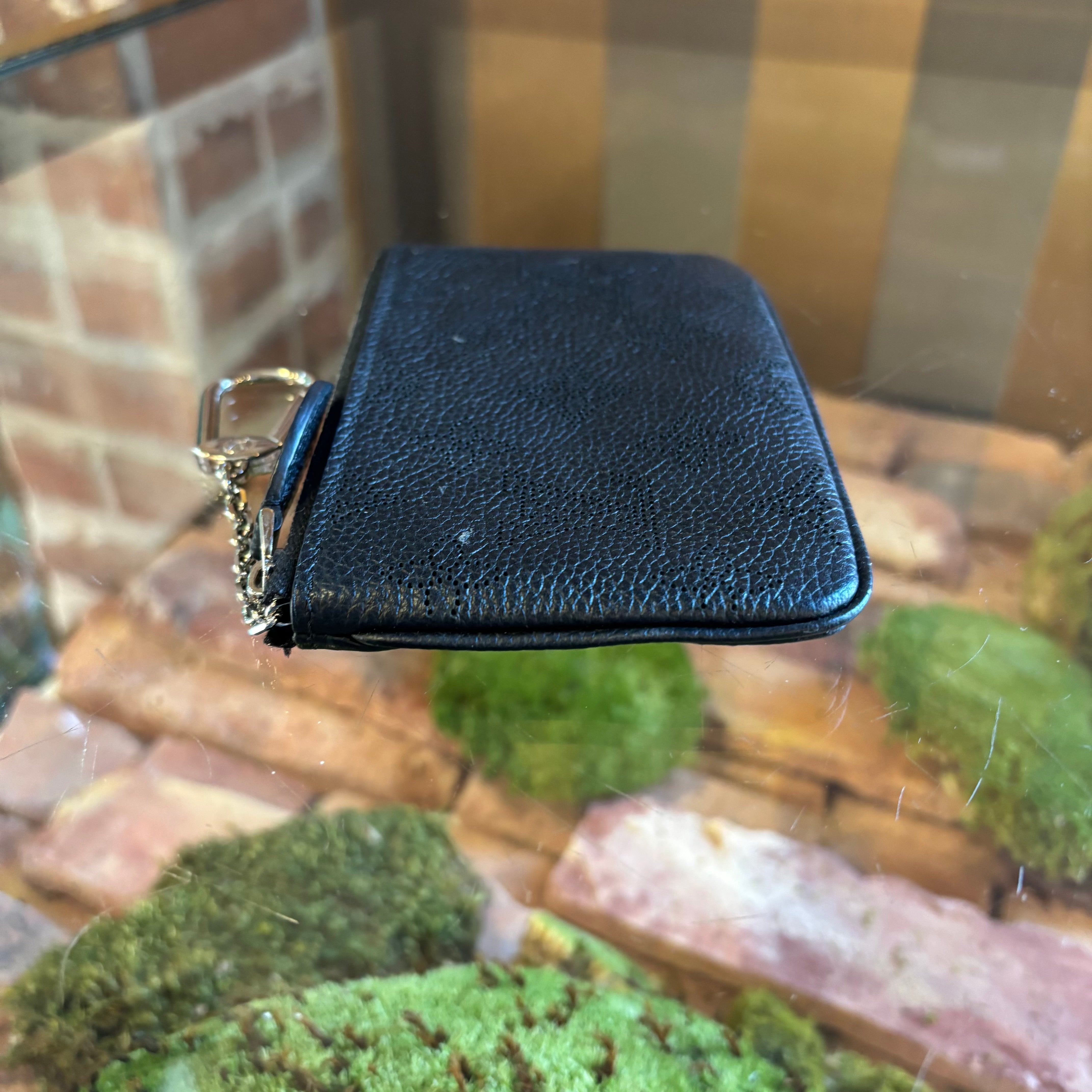 - Hardware: Features a chain with a hook (clasp or lobster claw) that allows it to be attached to the D-rings of larger bags or used as a keychain.