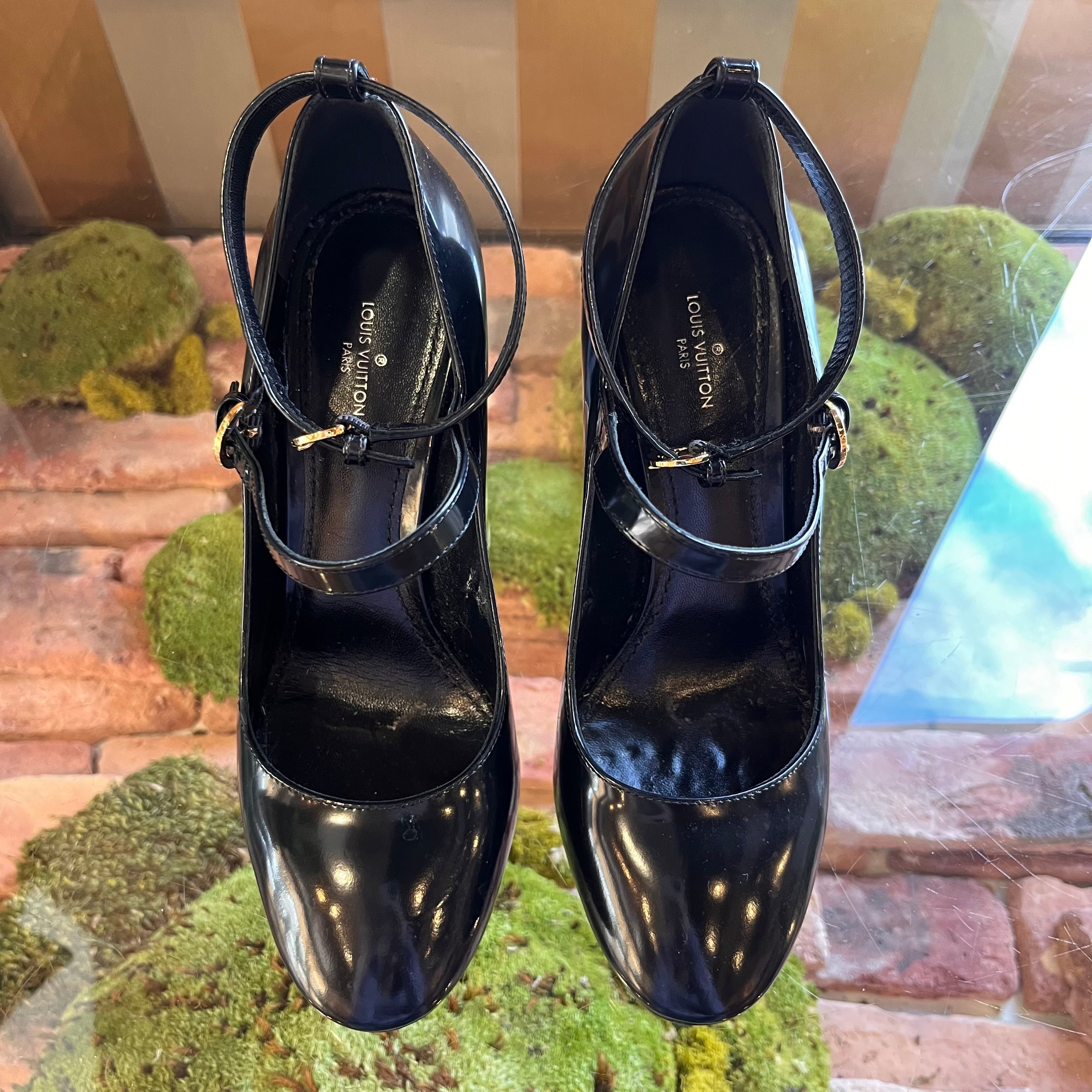 LOUIS VUITTON Black Mary Jane Pumps SZ 37.5 (US 7.5)