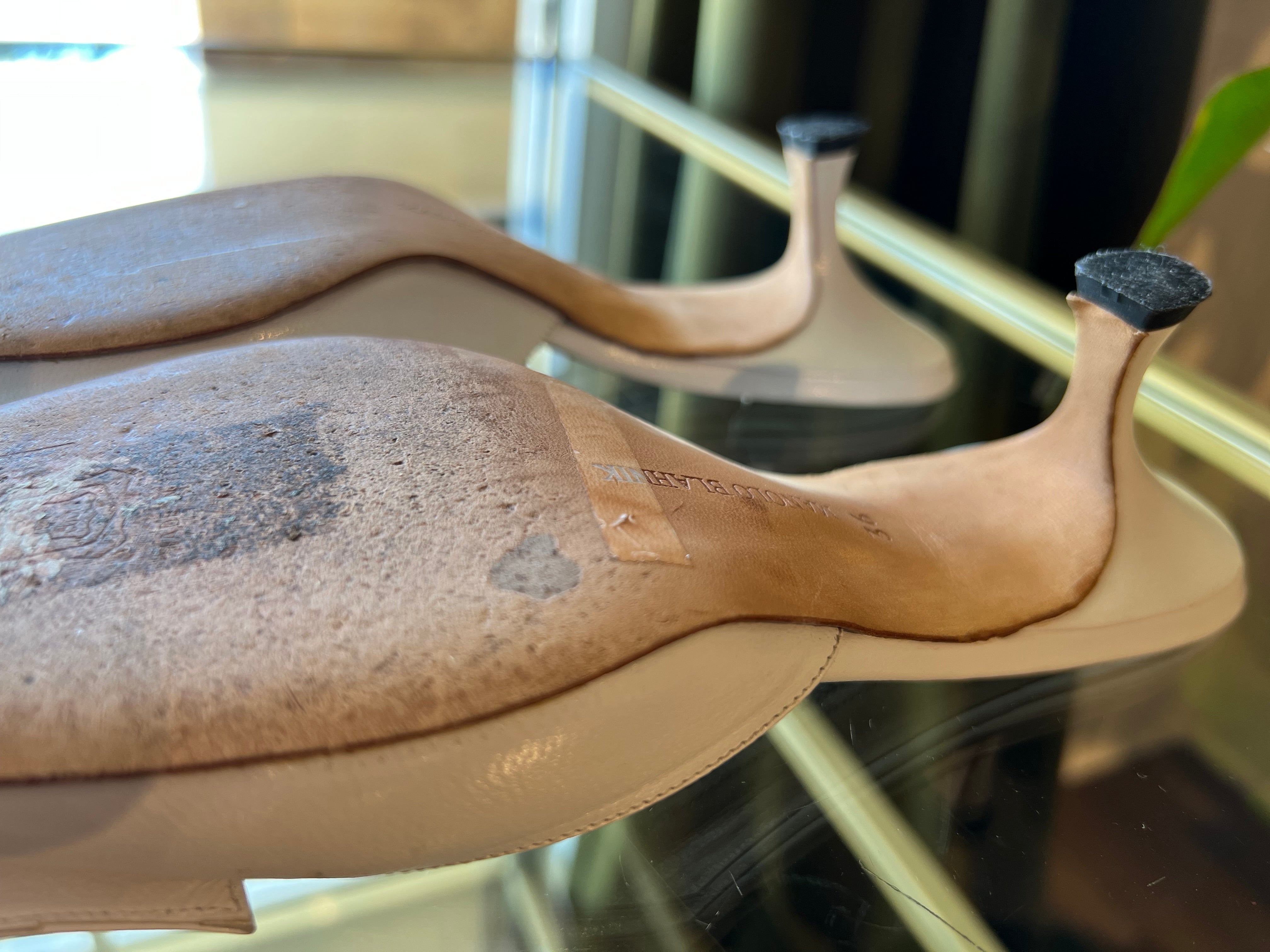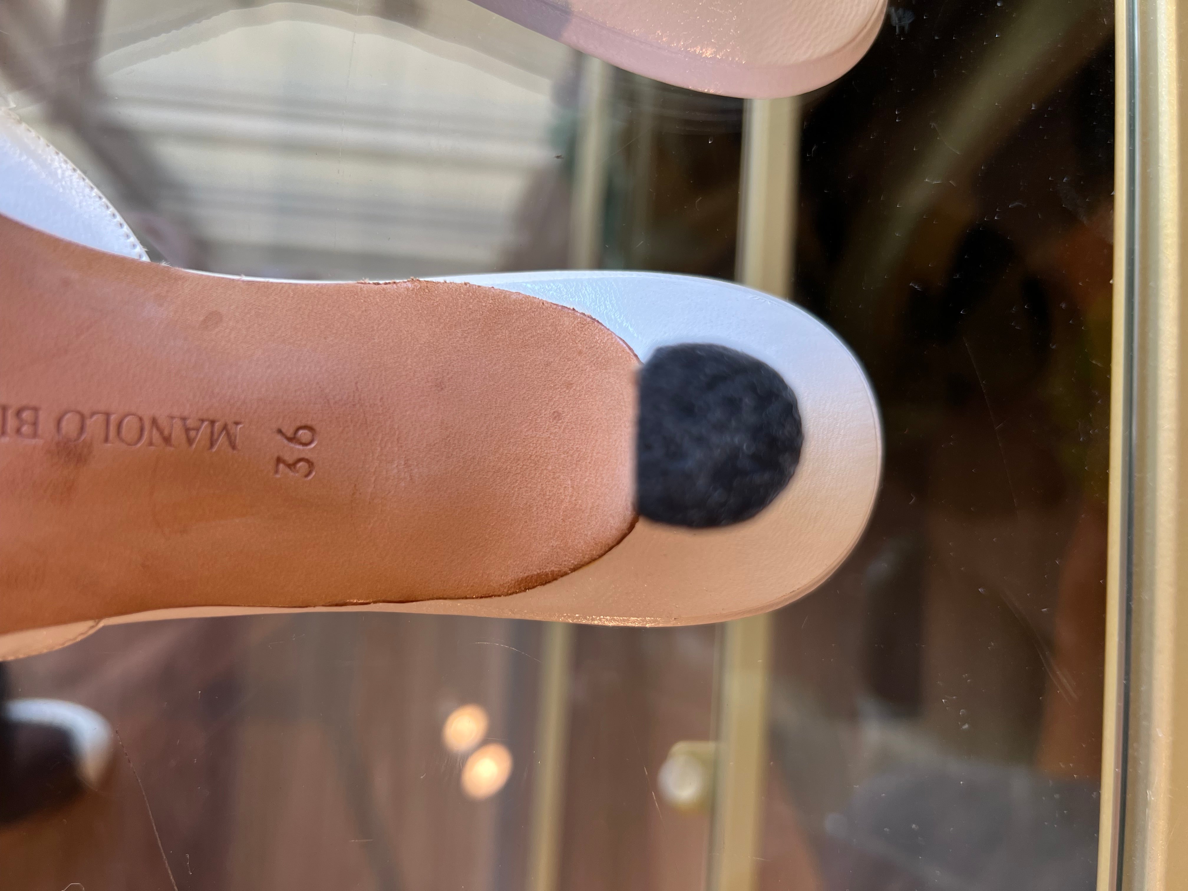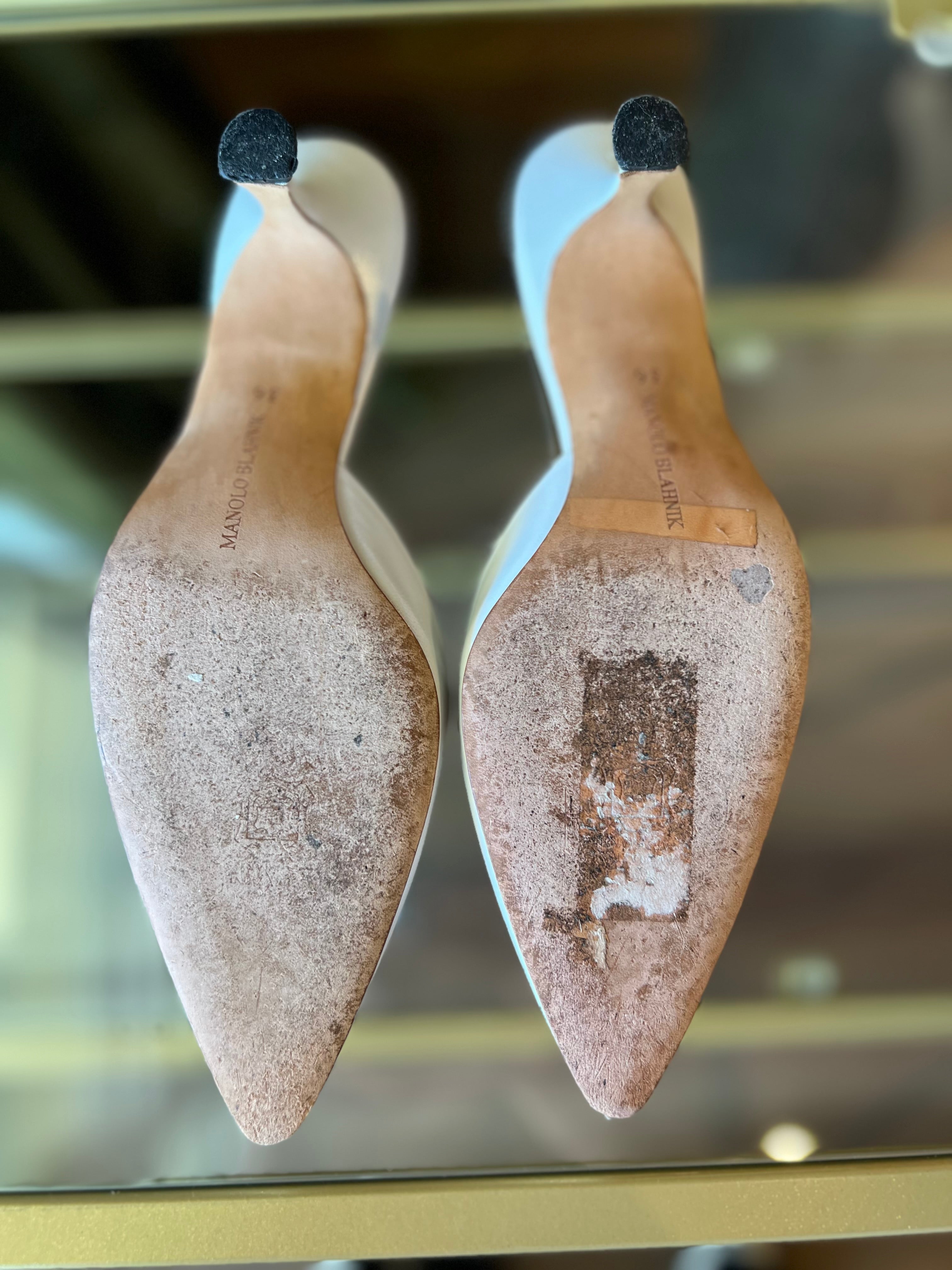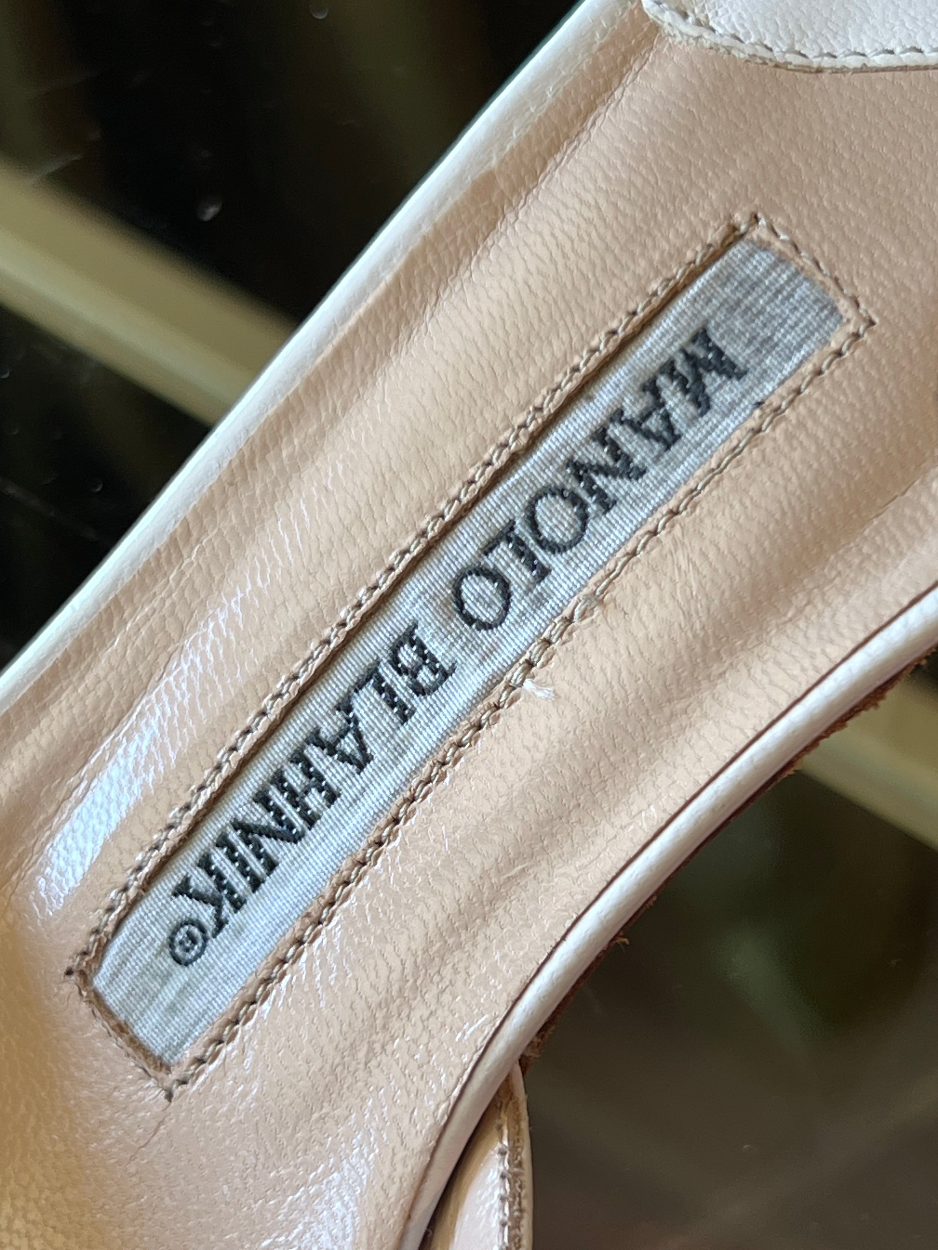 MANOLO BLAHNIK White Patent Leather Buckle Mules SZ36 (6US)