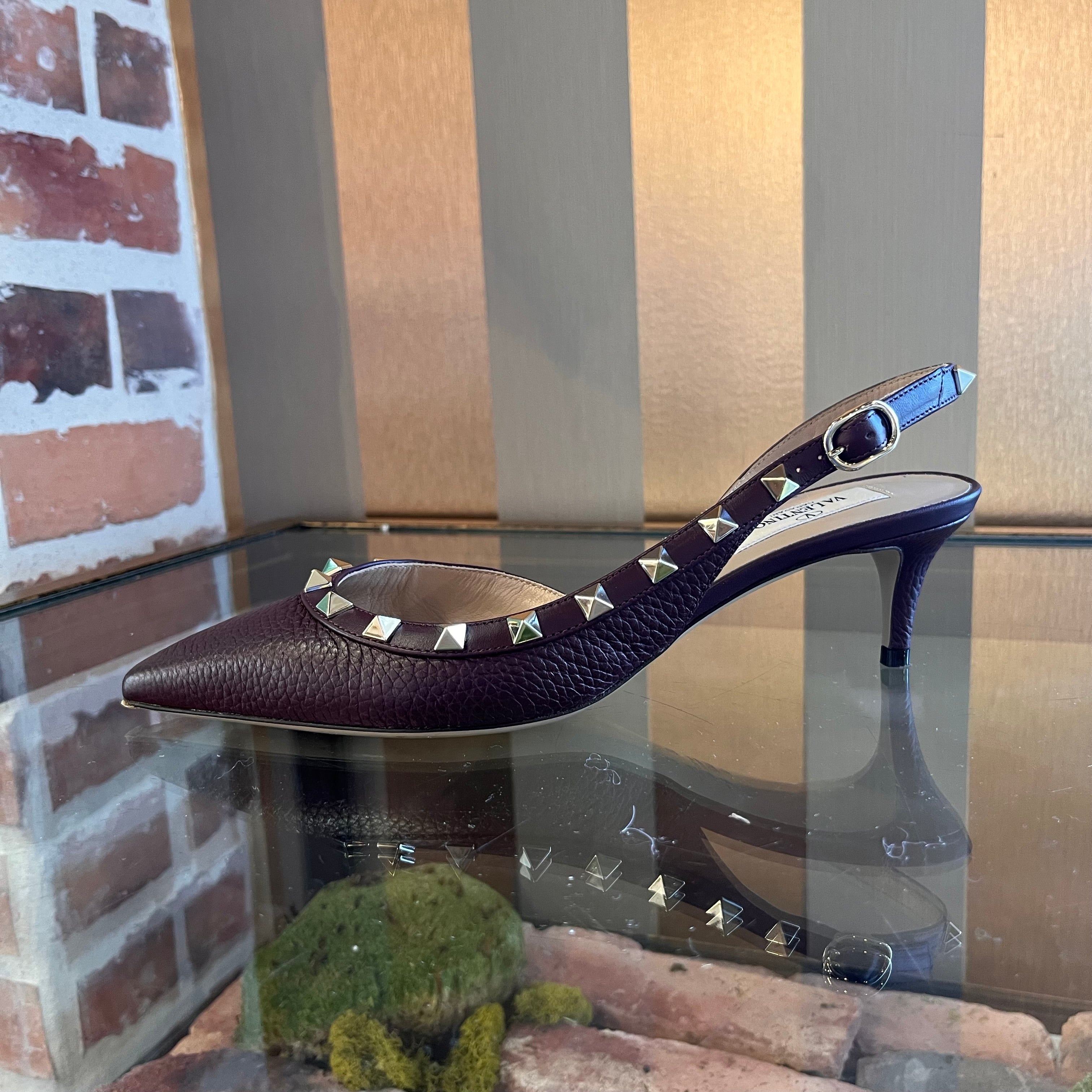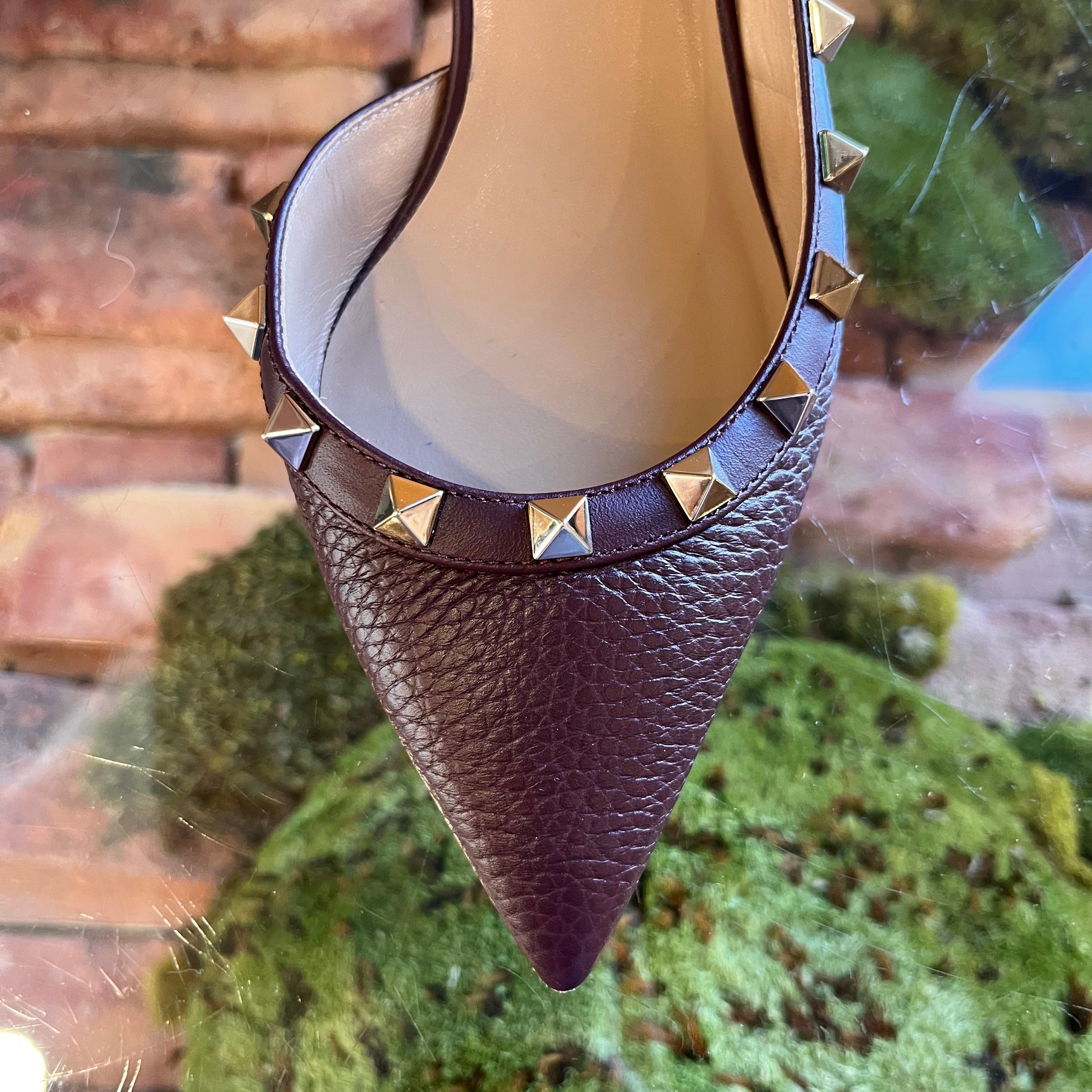 VALENTINO Burgundy Leather Rockstud Kitten Heels SZ 37 (US 7)