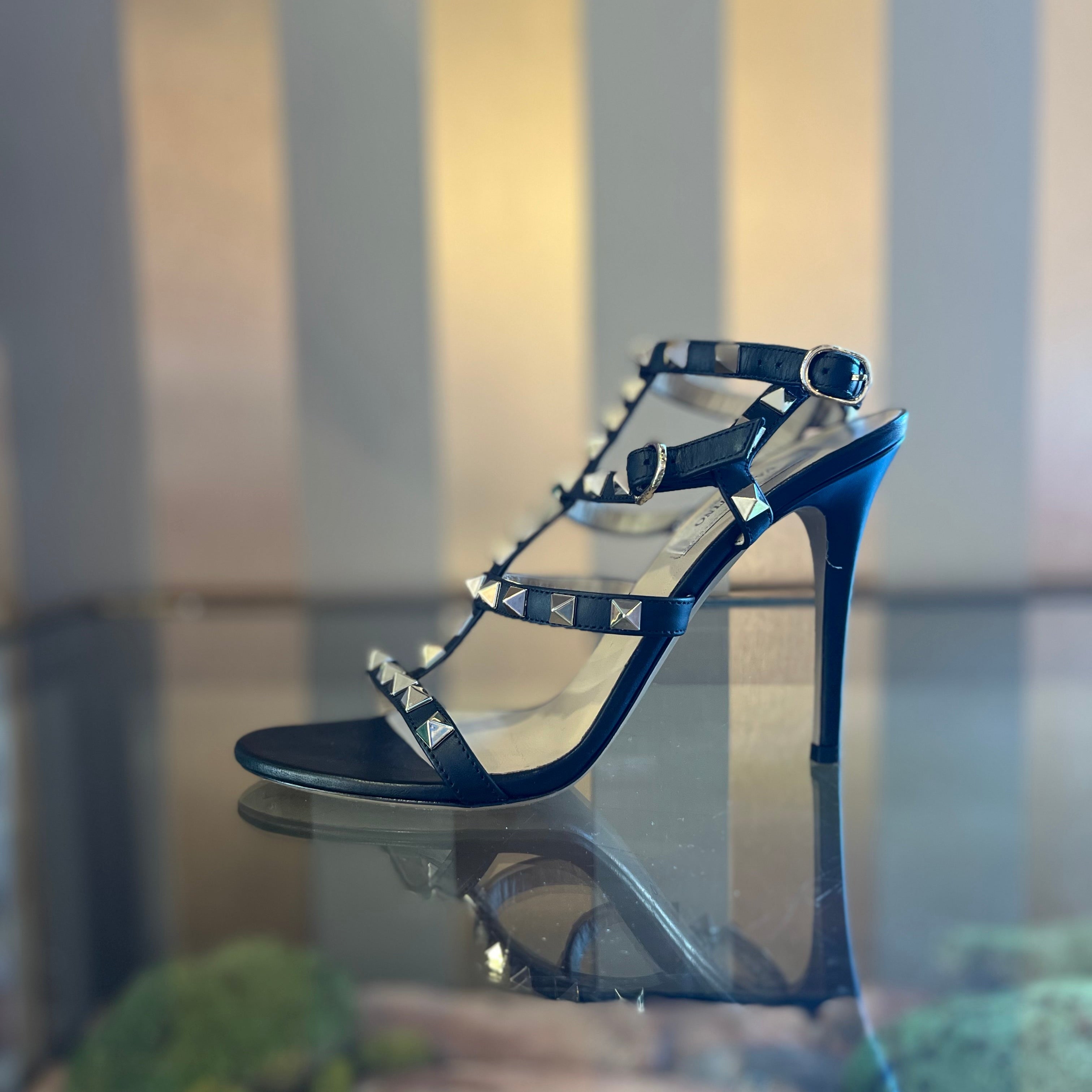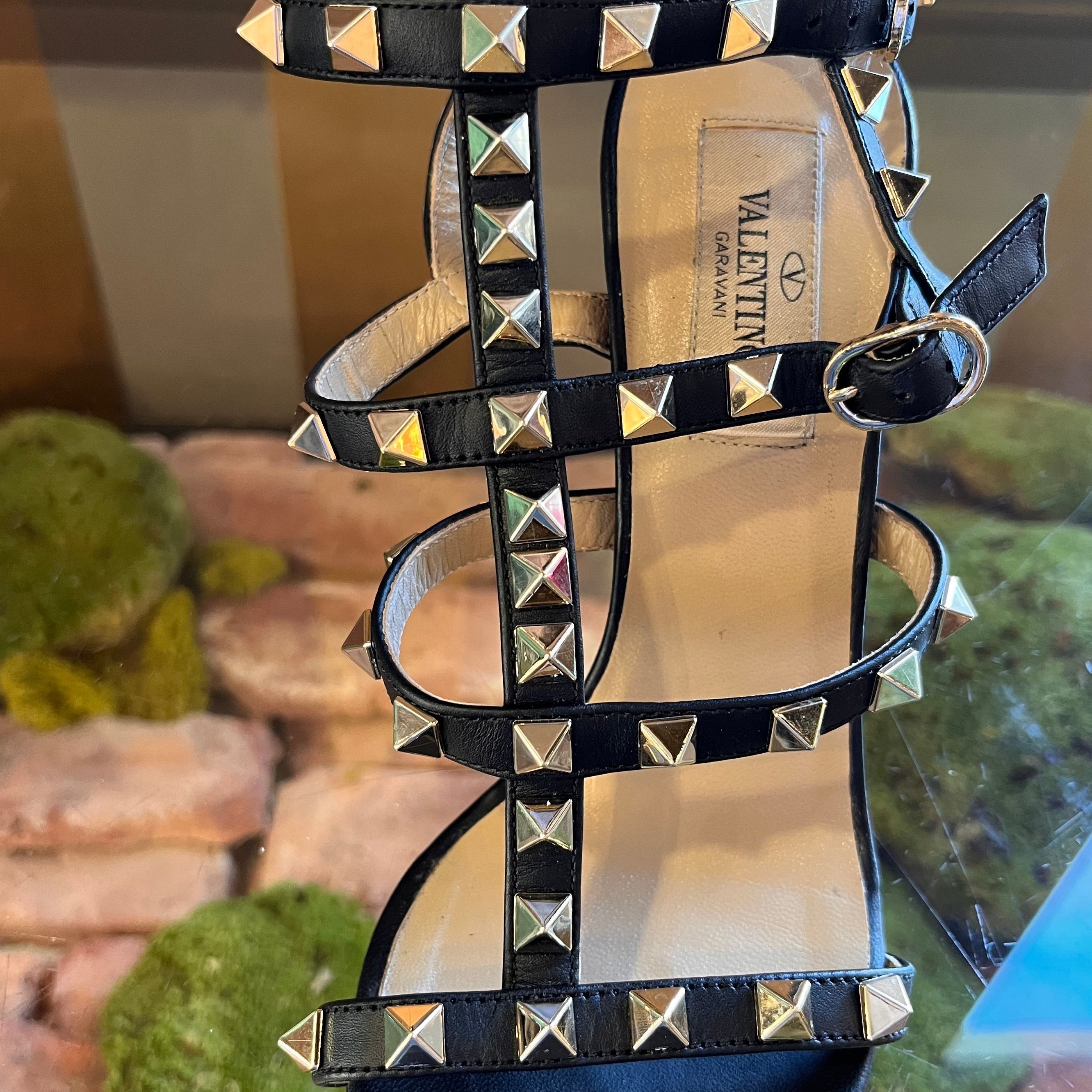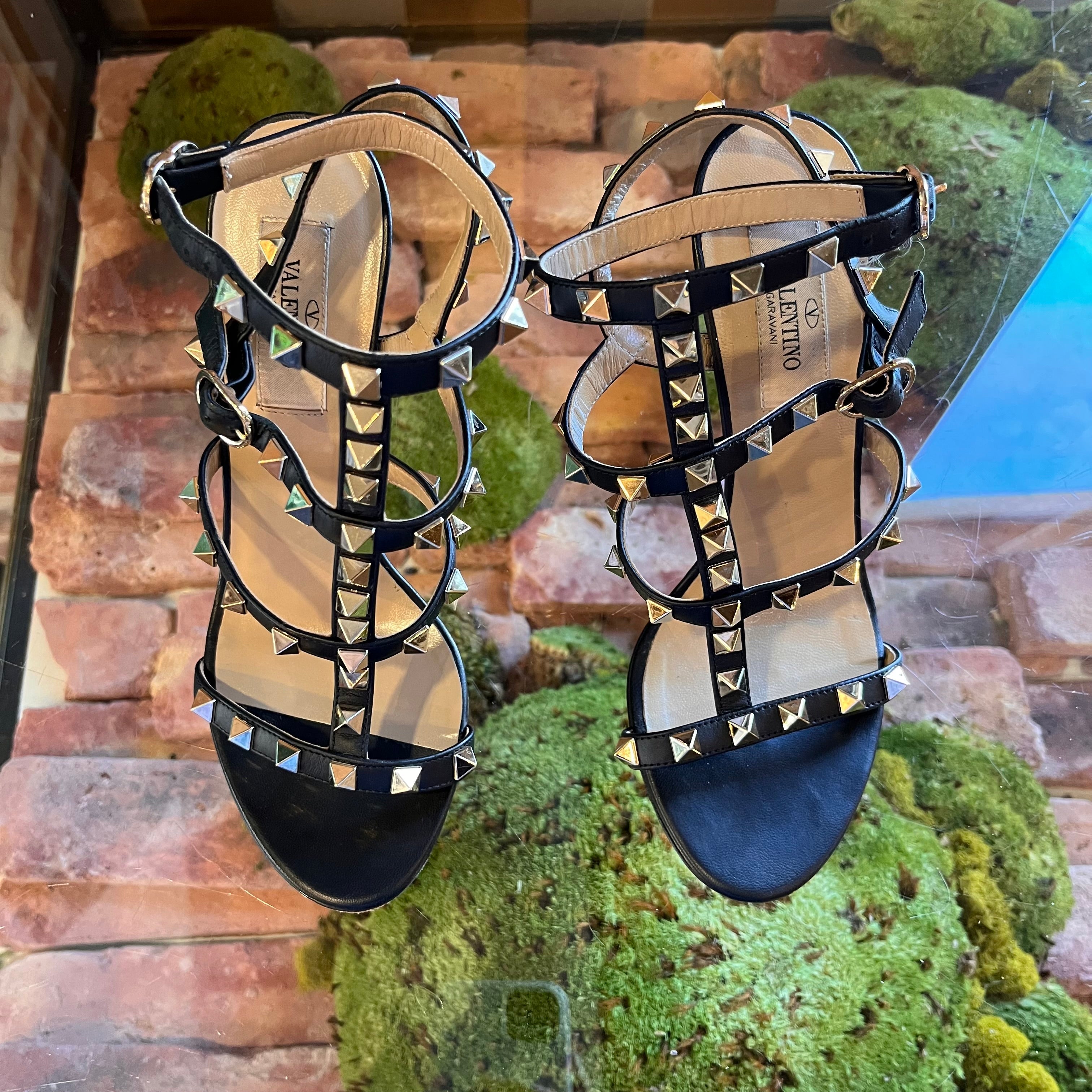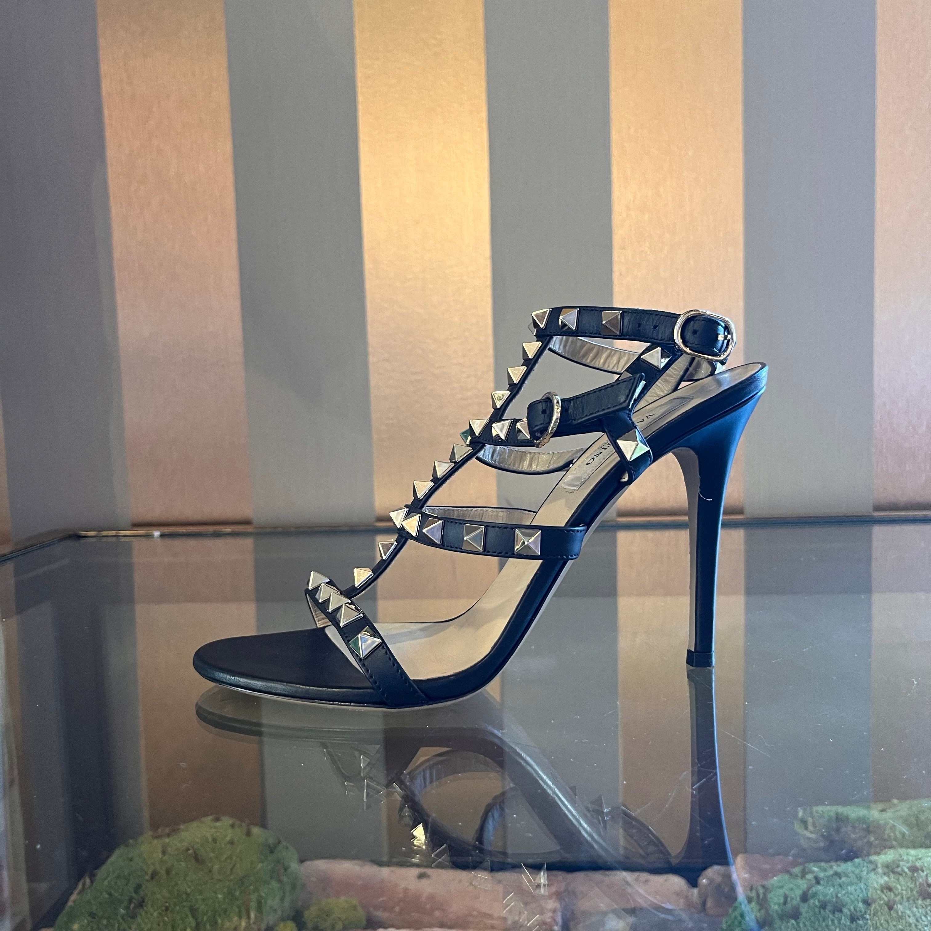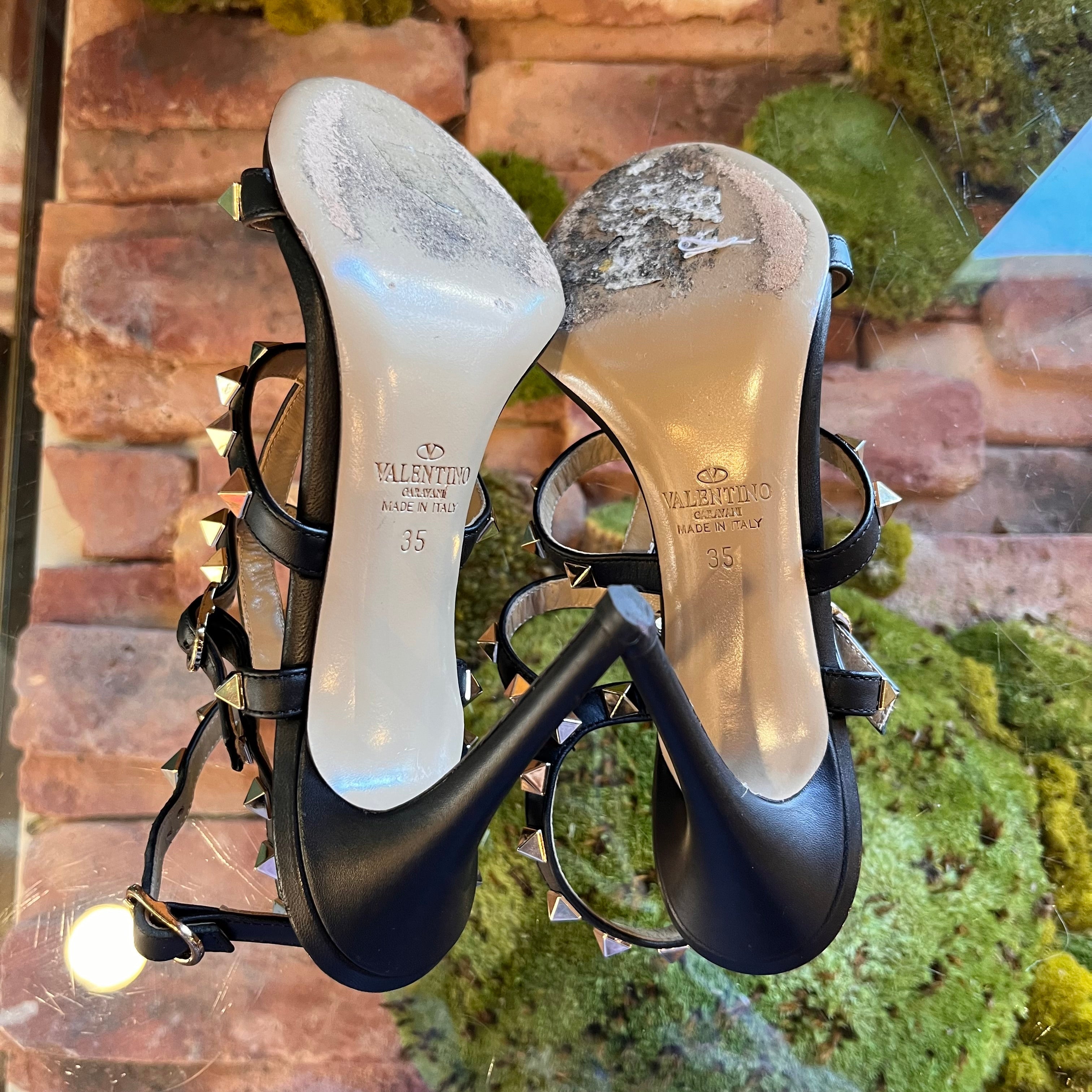 VALENTINO Black Leather Rockstud Strappy Heels SZ 35 (US 5)