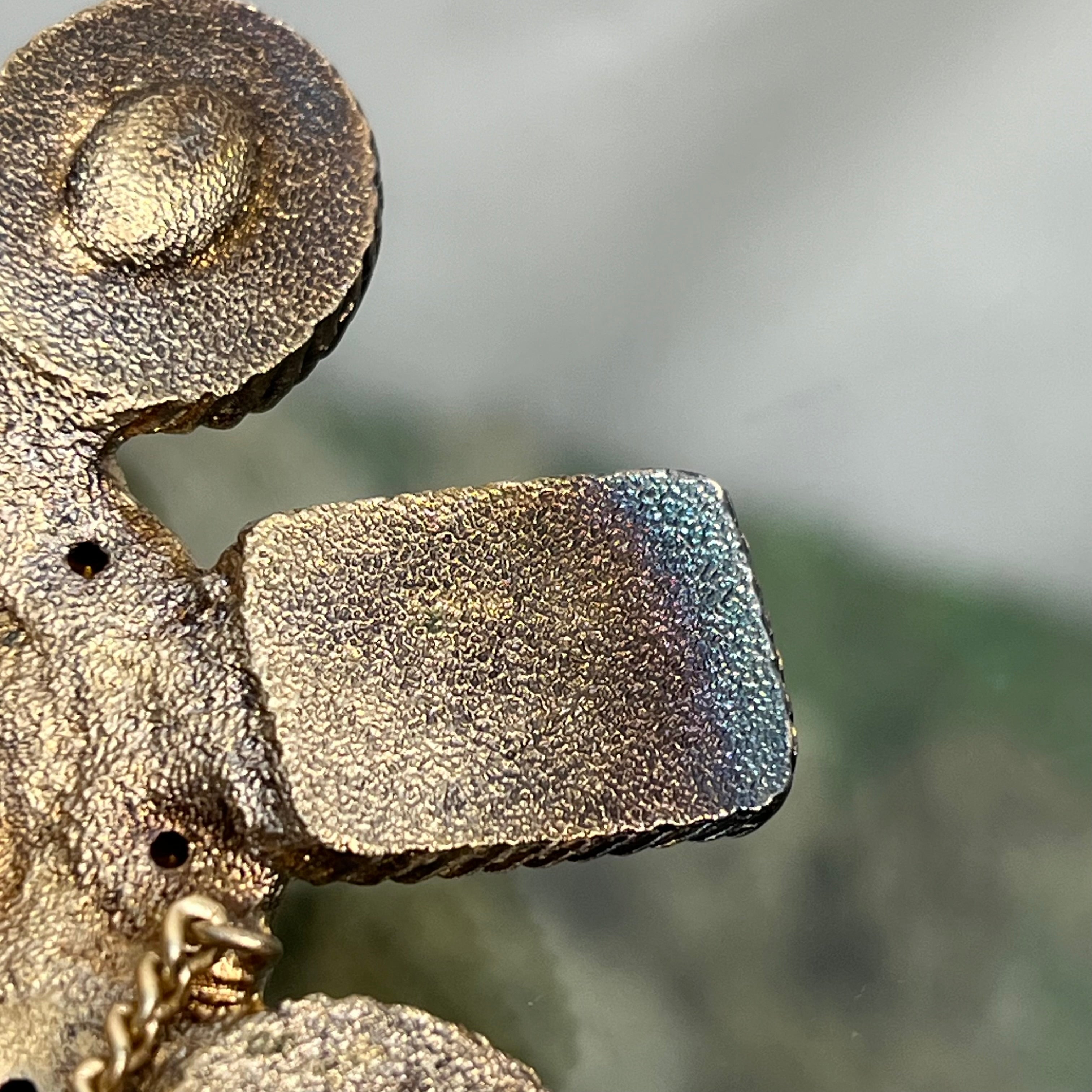 - Hardware: All of the stones shine brightly in every light and are all intact however the metal hardware on the back is very discolored ( please see photos).