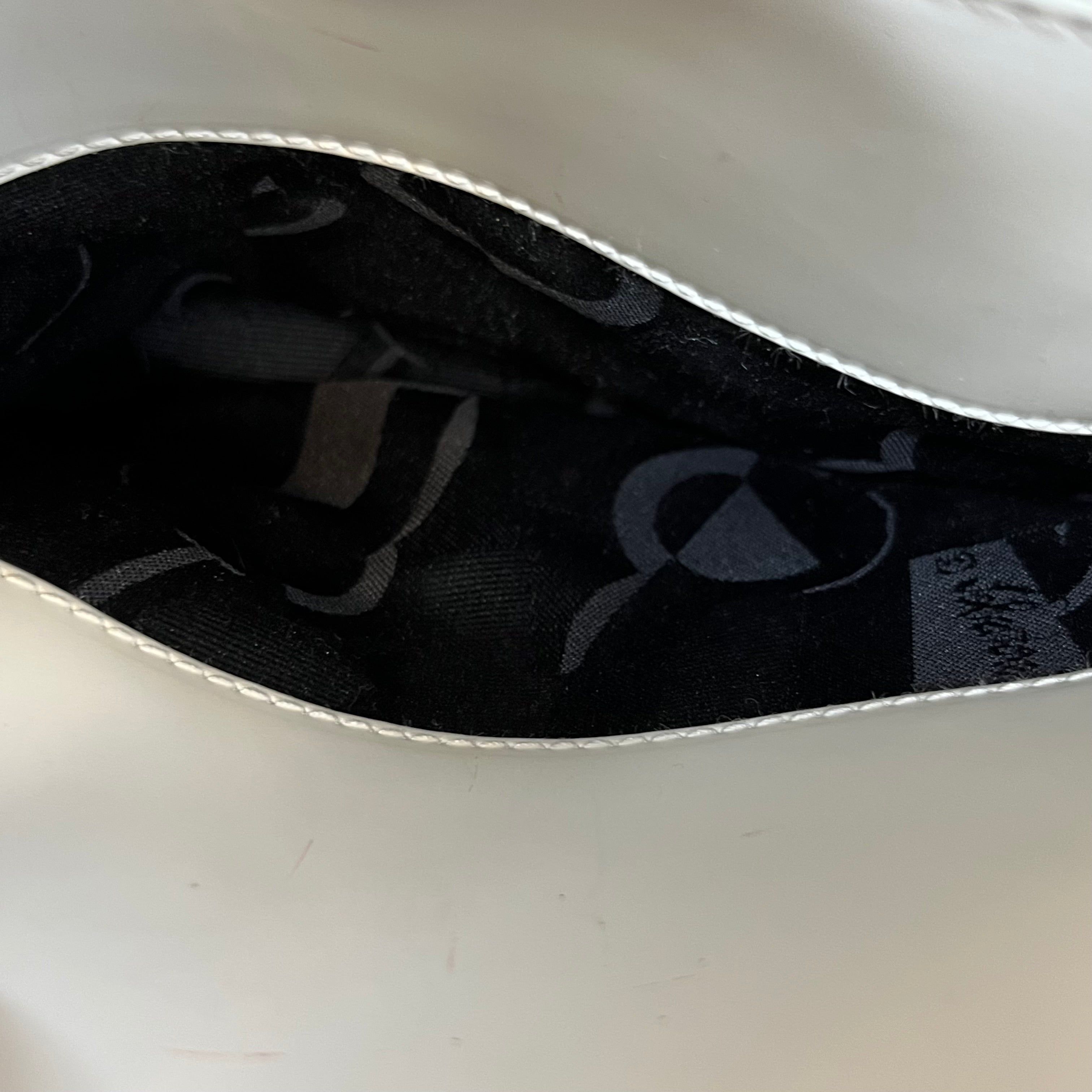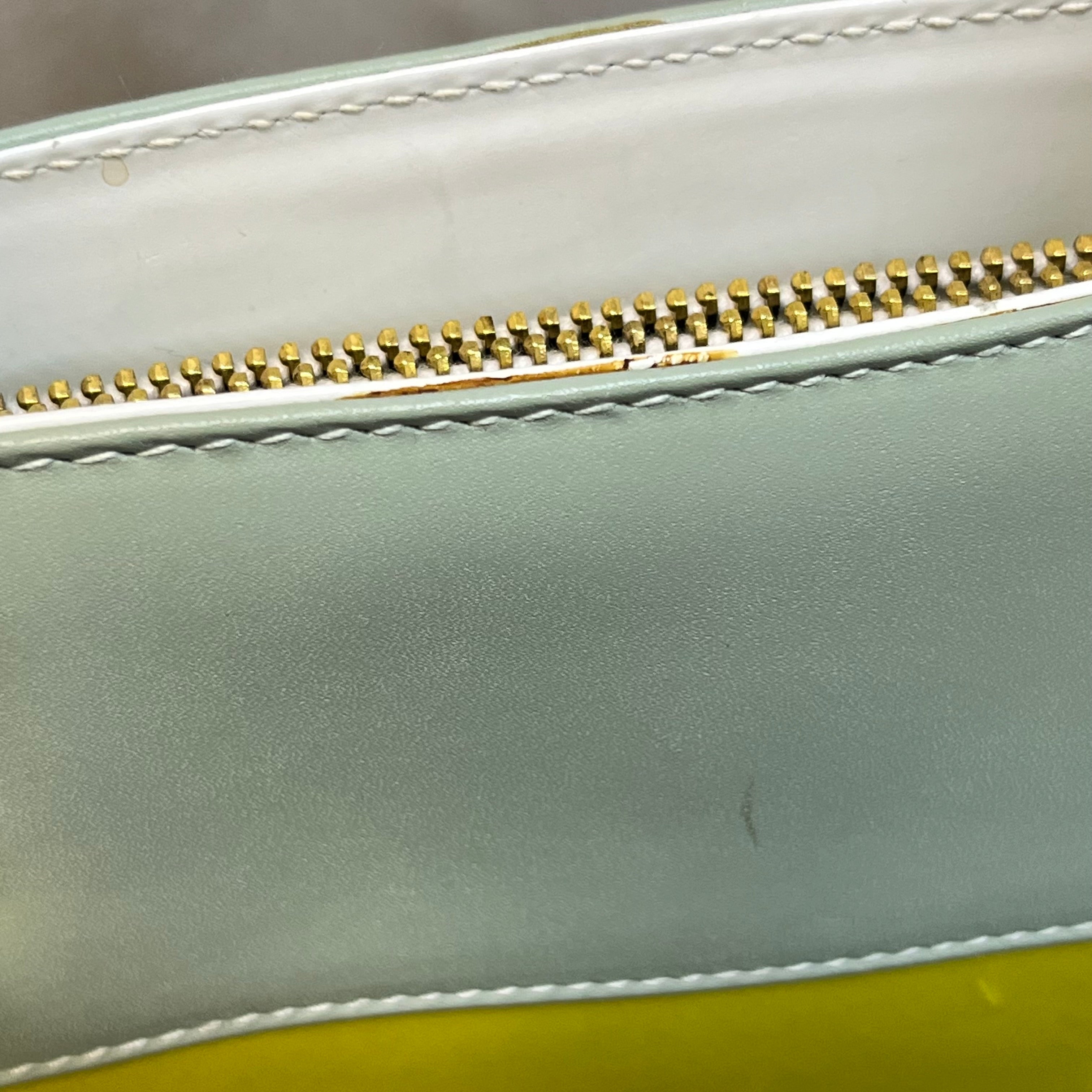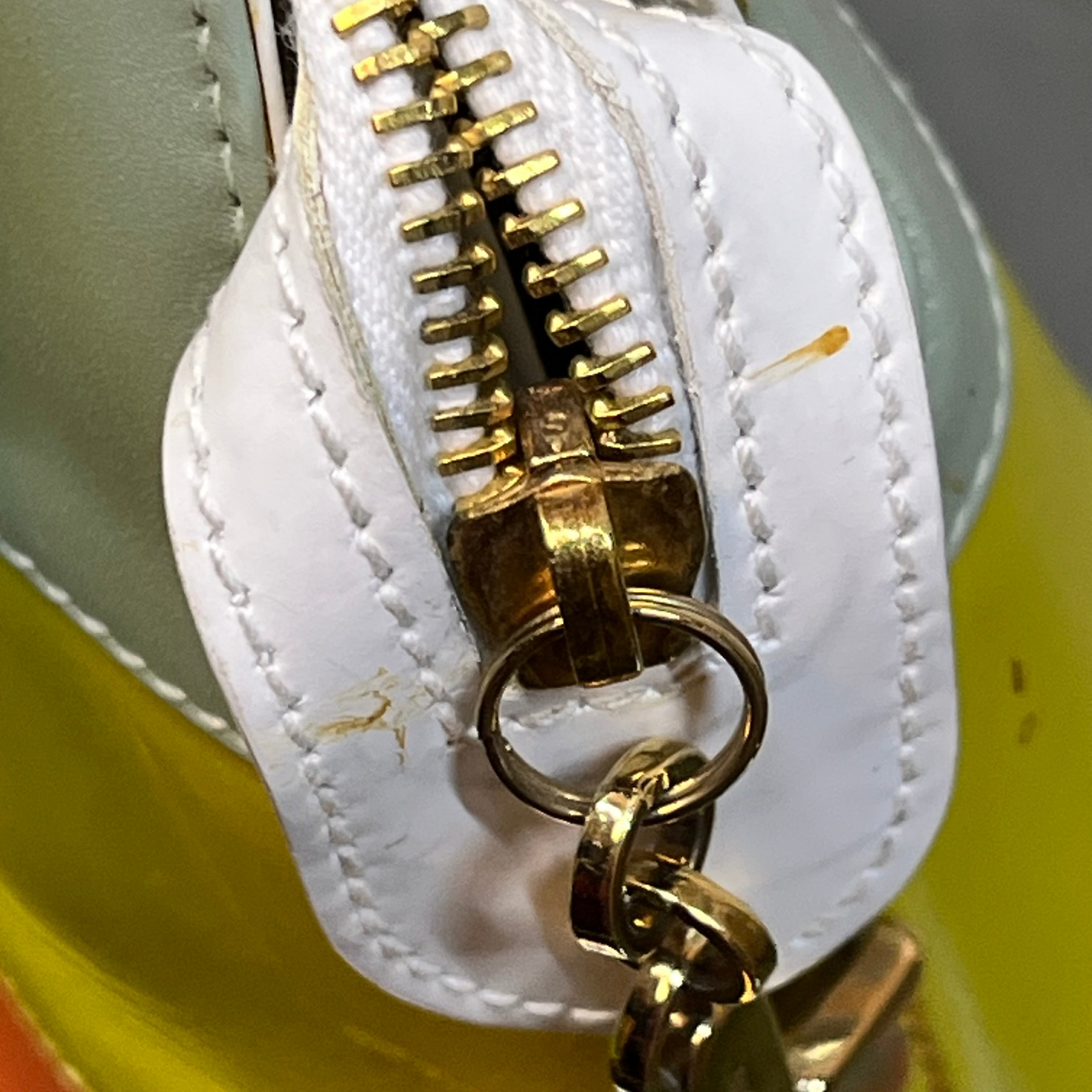- Interior: The textile interior lining is clean and well-maintained, offering a fresh and vibrant backdrop. The white leather trim, however, displays subtle hardware marks, a small crack (please refer to photos), light scratches, and pen marks—details that add a touch of character and history. Despite these signs of use, the piece remains fully functional and stylish, maintaining its timeless appeal.