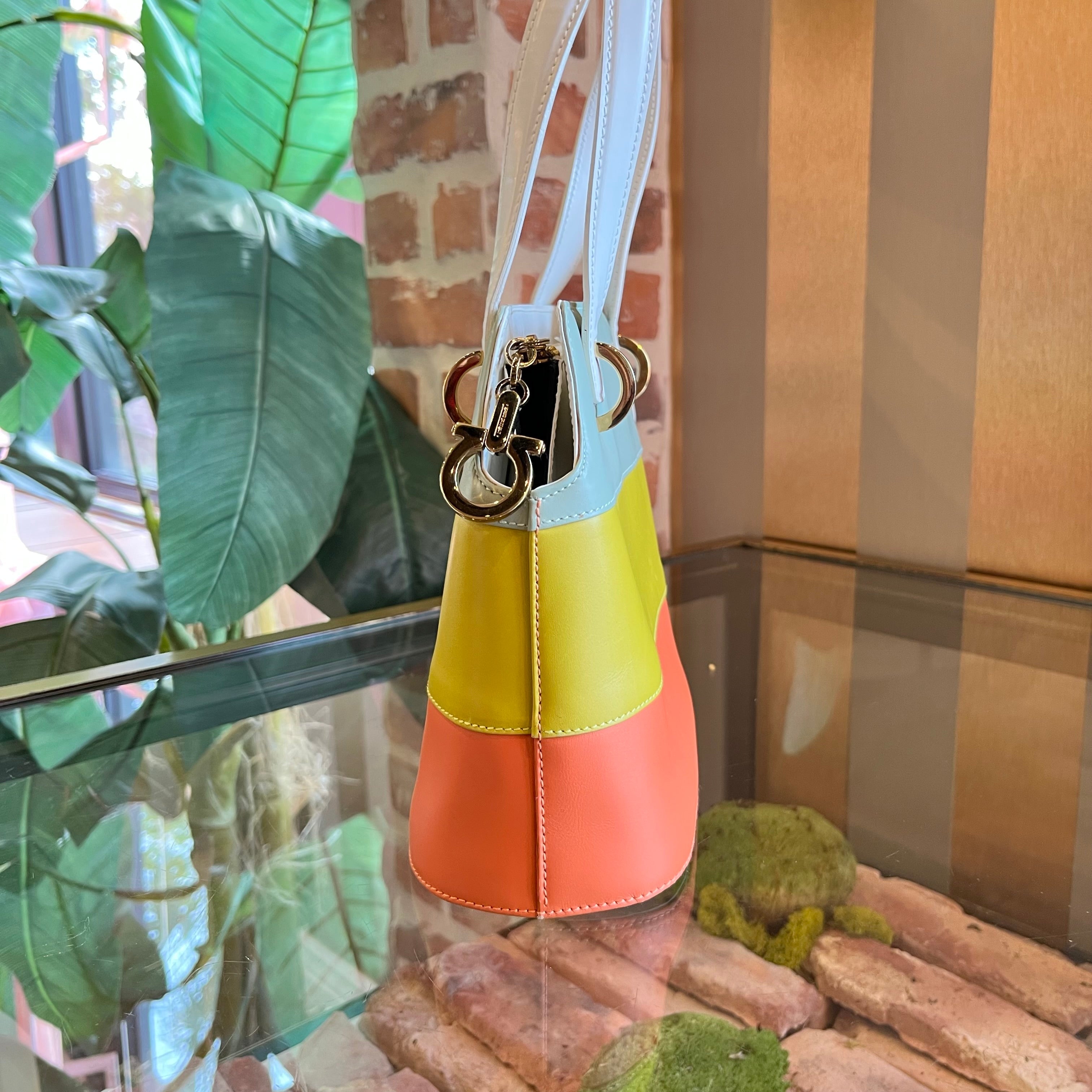 FERRAGAMO Blue Green Orange Striped Vintage Tote Bag