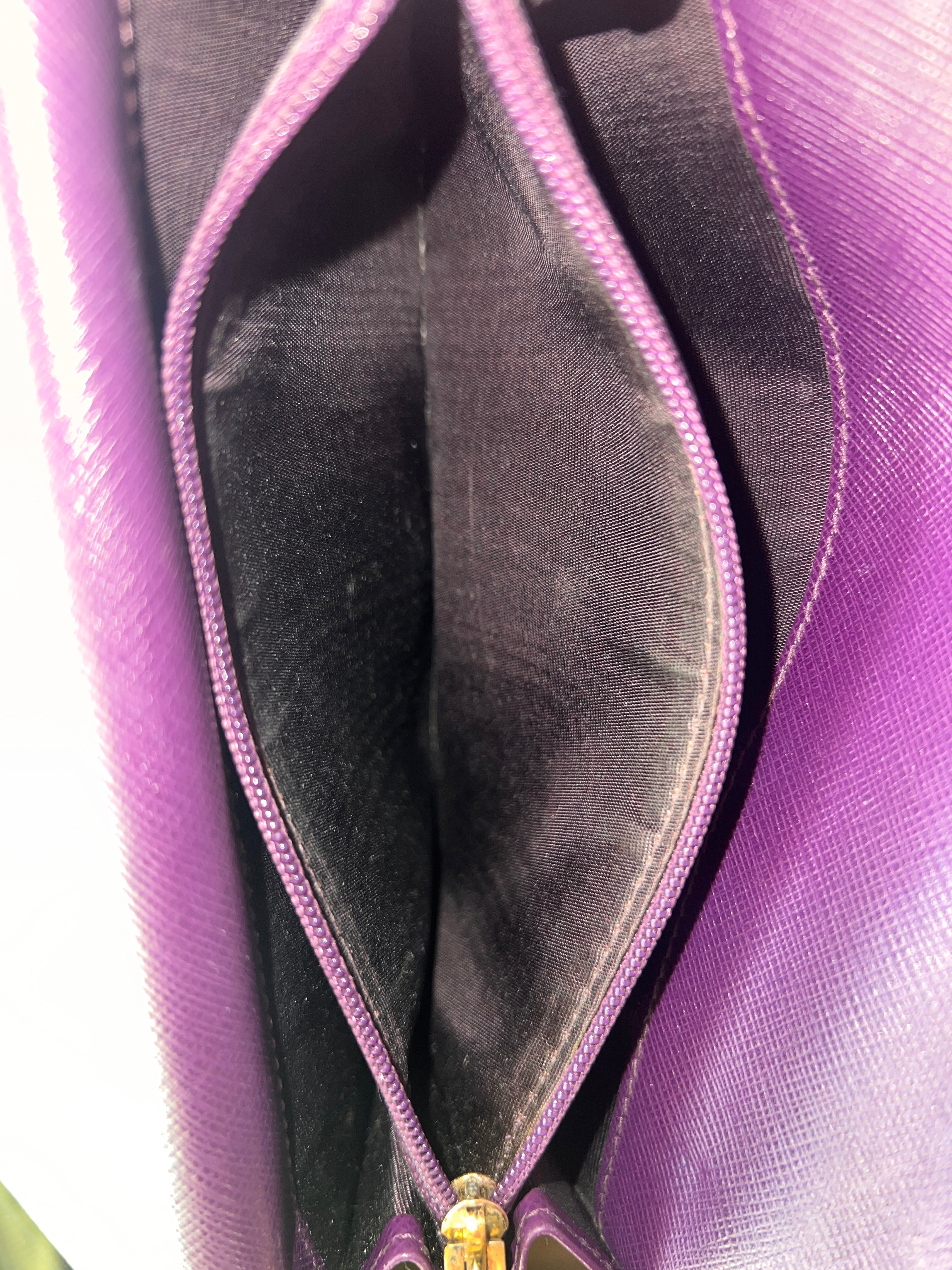 - Interior: Multiple card slots, bill compartments, and zip coin pocket