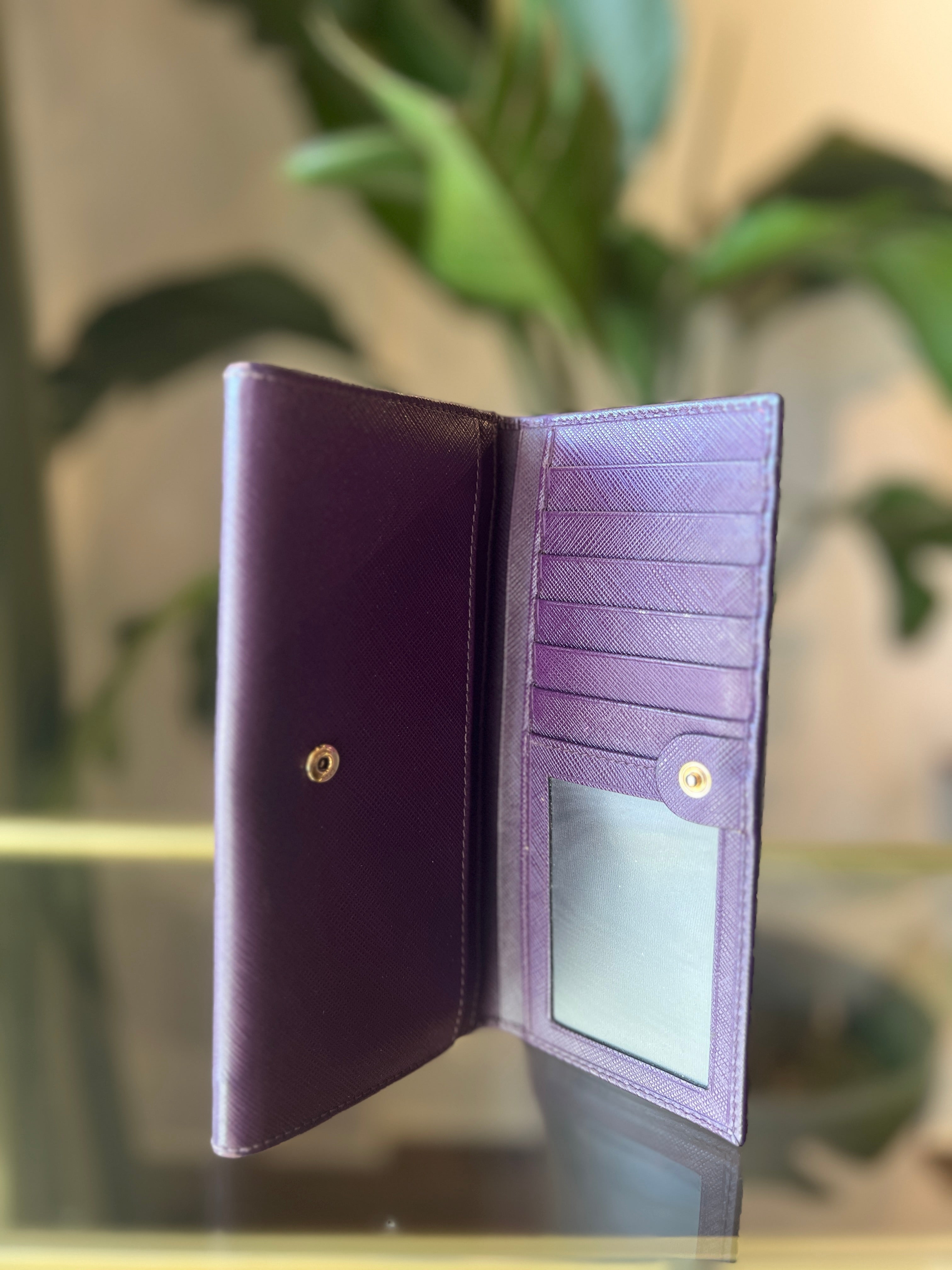- Design: Elegant long continental-style wallet with flap closure