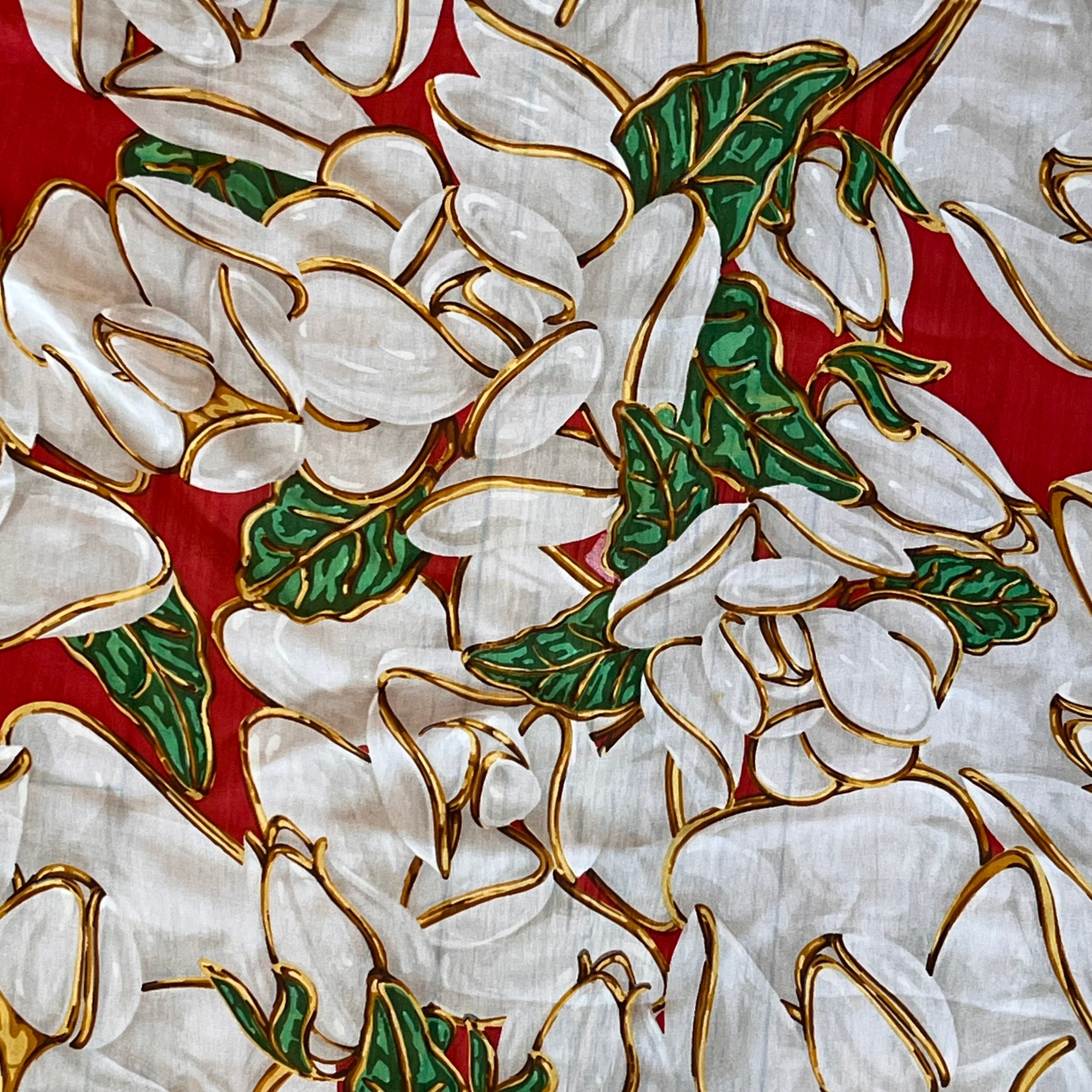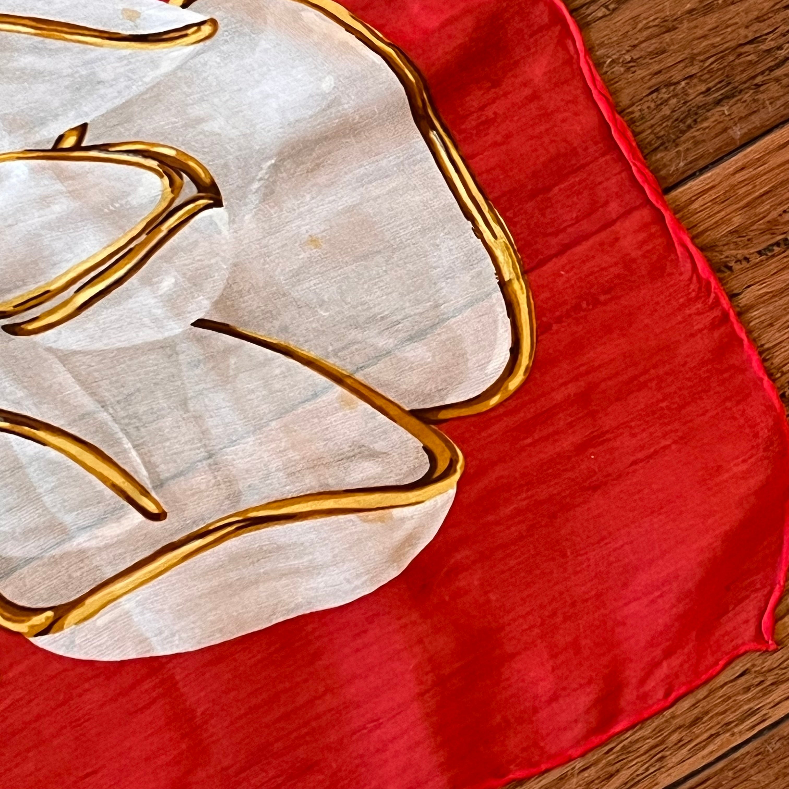 CHANEL Floral Red Sheer Silk Vintage Large Scarf