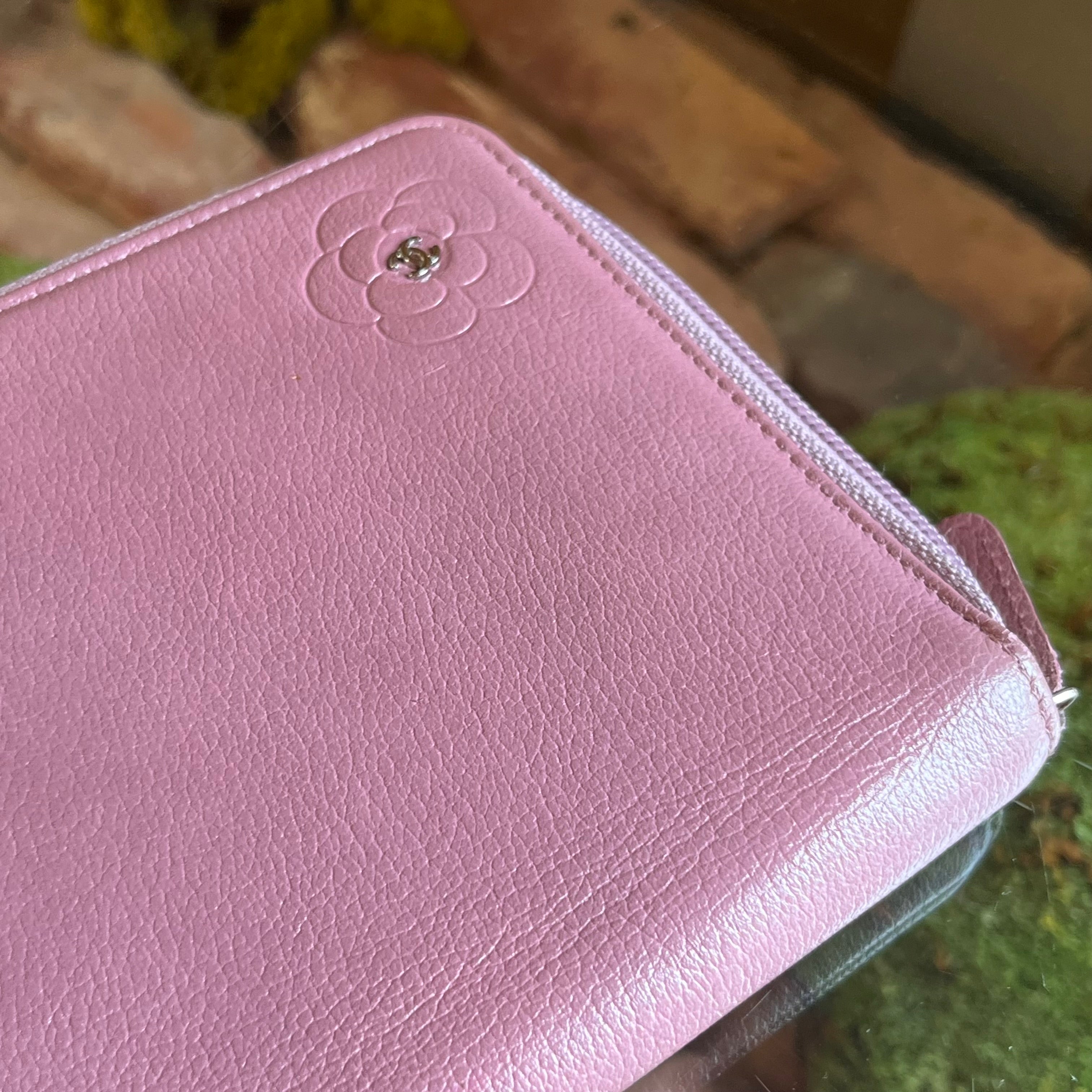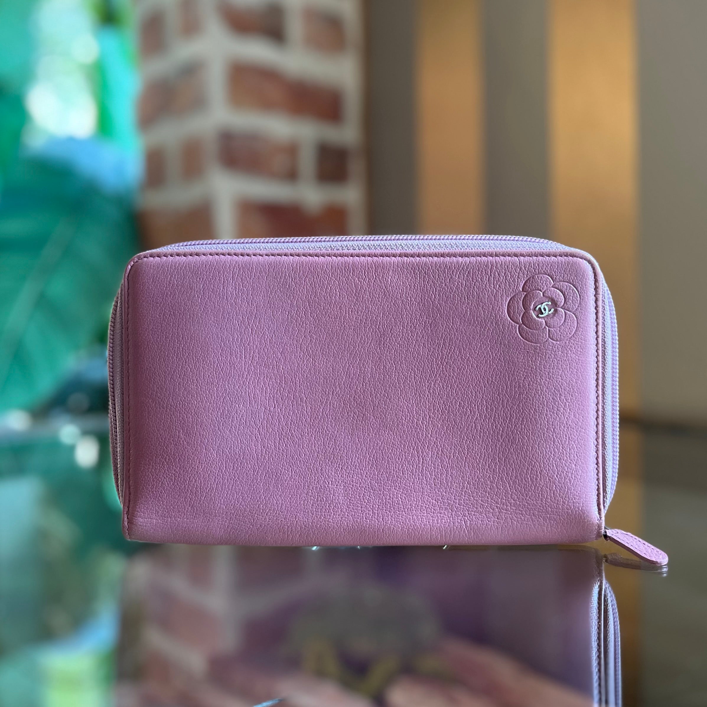 CHANEL Mauve Pink Leather Camilla Flower Organizer Wallet