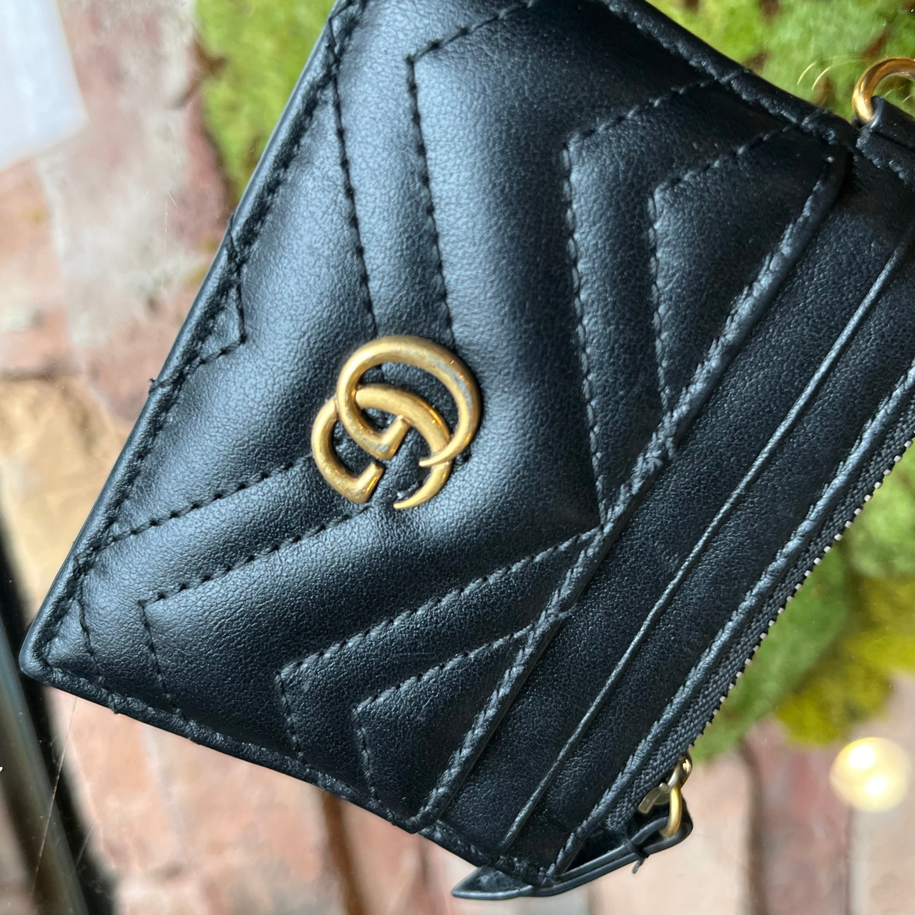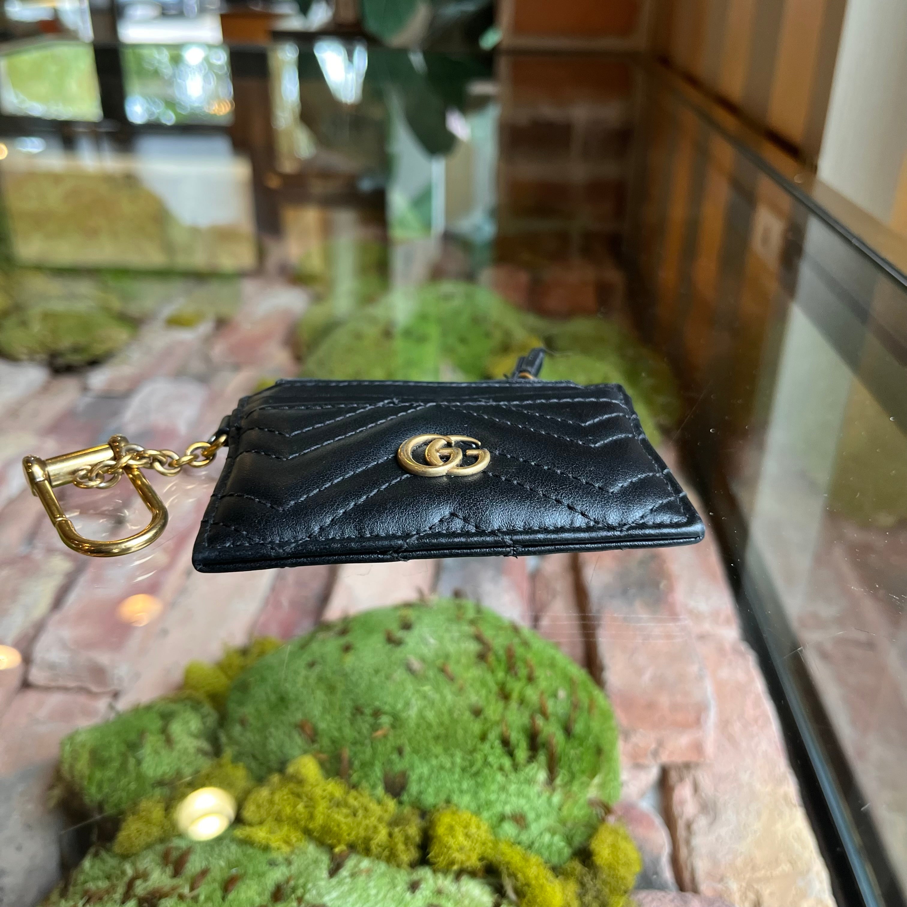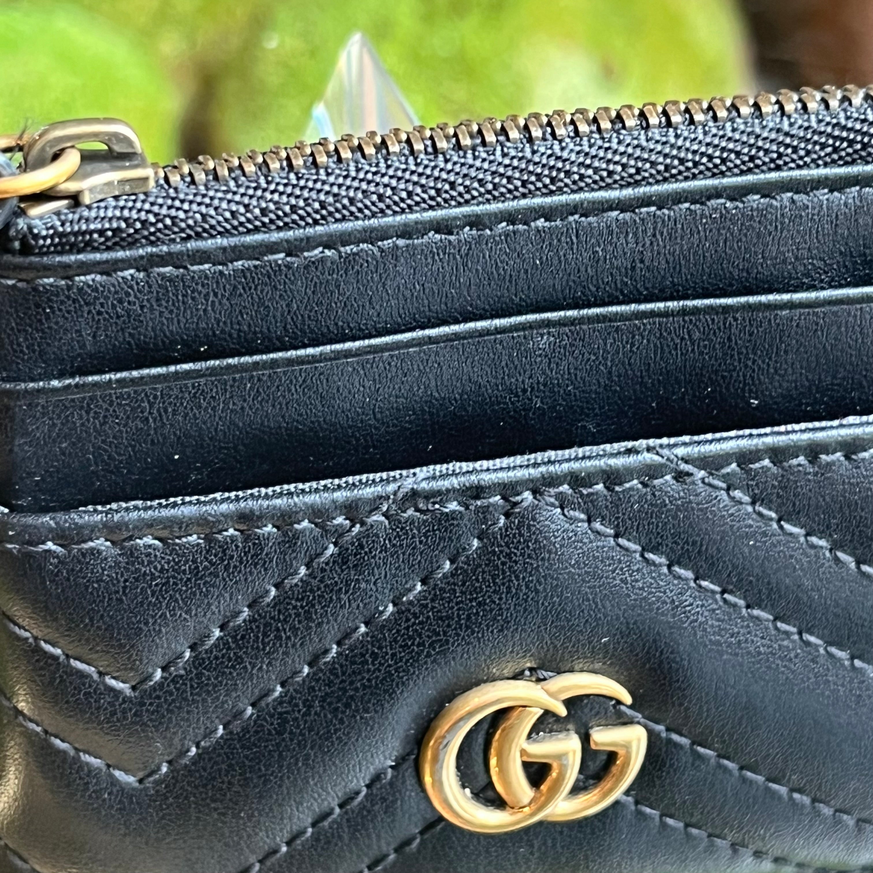 GUCCI GG Marmont Key Case Black Calfskin Matelassé Chevron Card Case