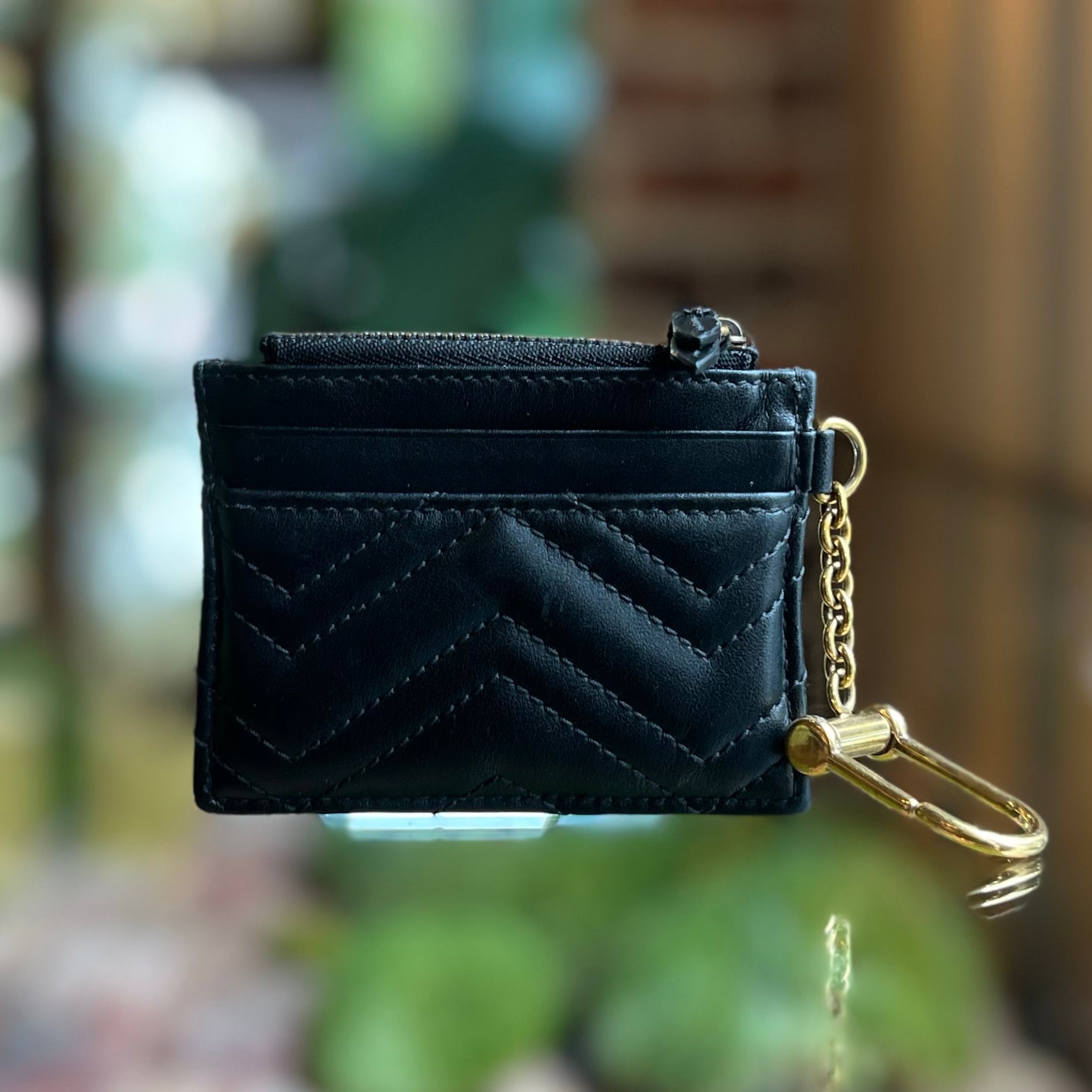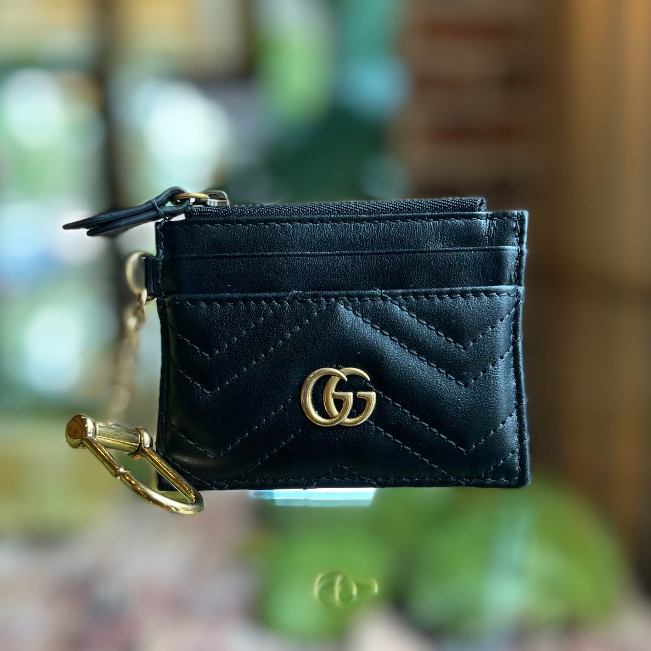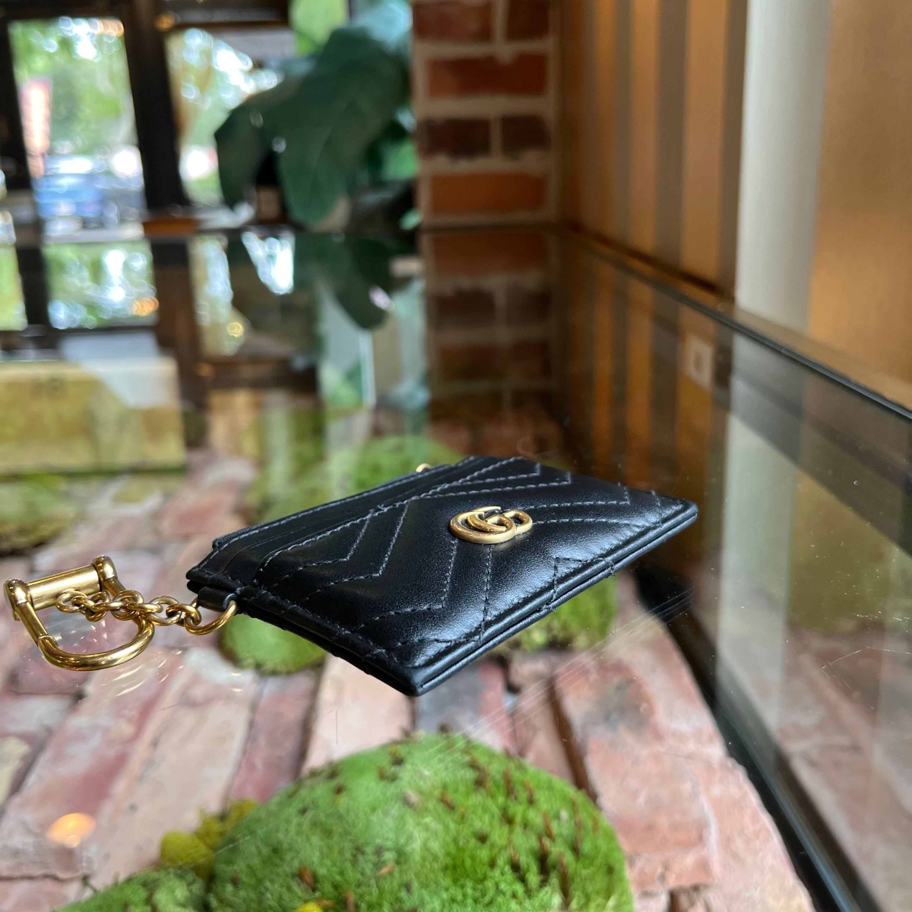 GUCCI GG Marmont Key Case Black Calfskin Matelassé Chevron Card Case