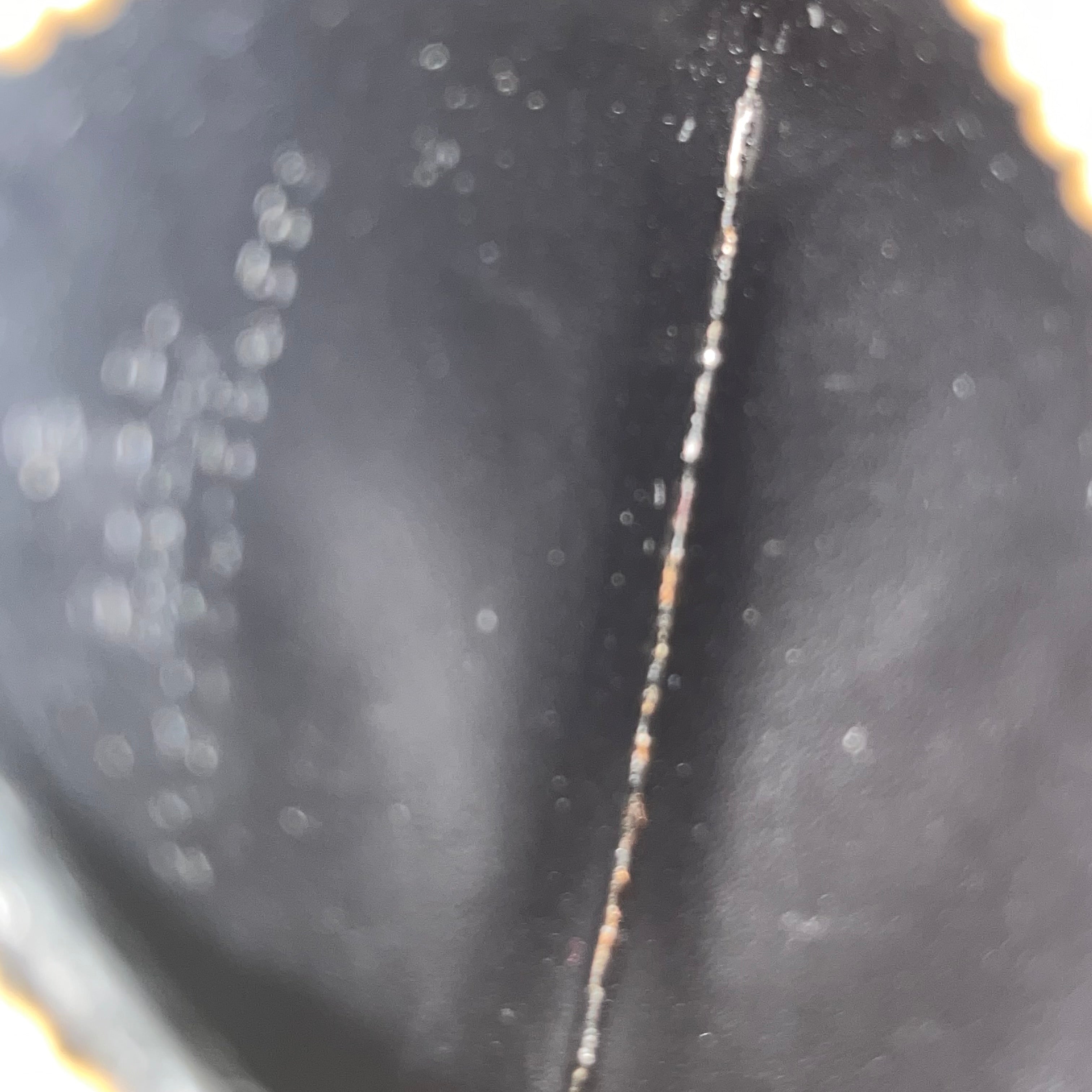 - Interior: The interior lining features some white markings, which may be inherent to the material or a result of handling.