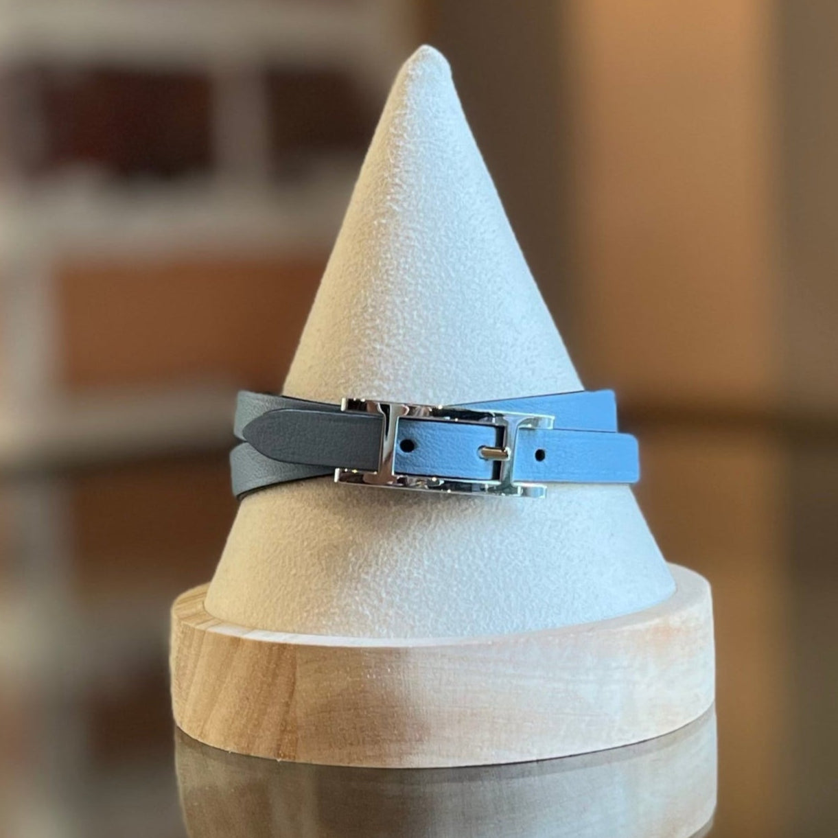 HERMES Blue Two Toned Behapi Reversible Double Tour Leather Bracelet S