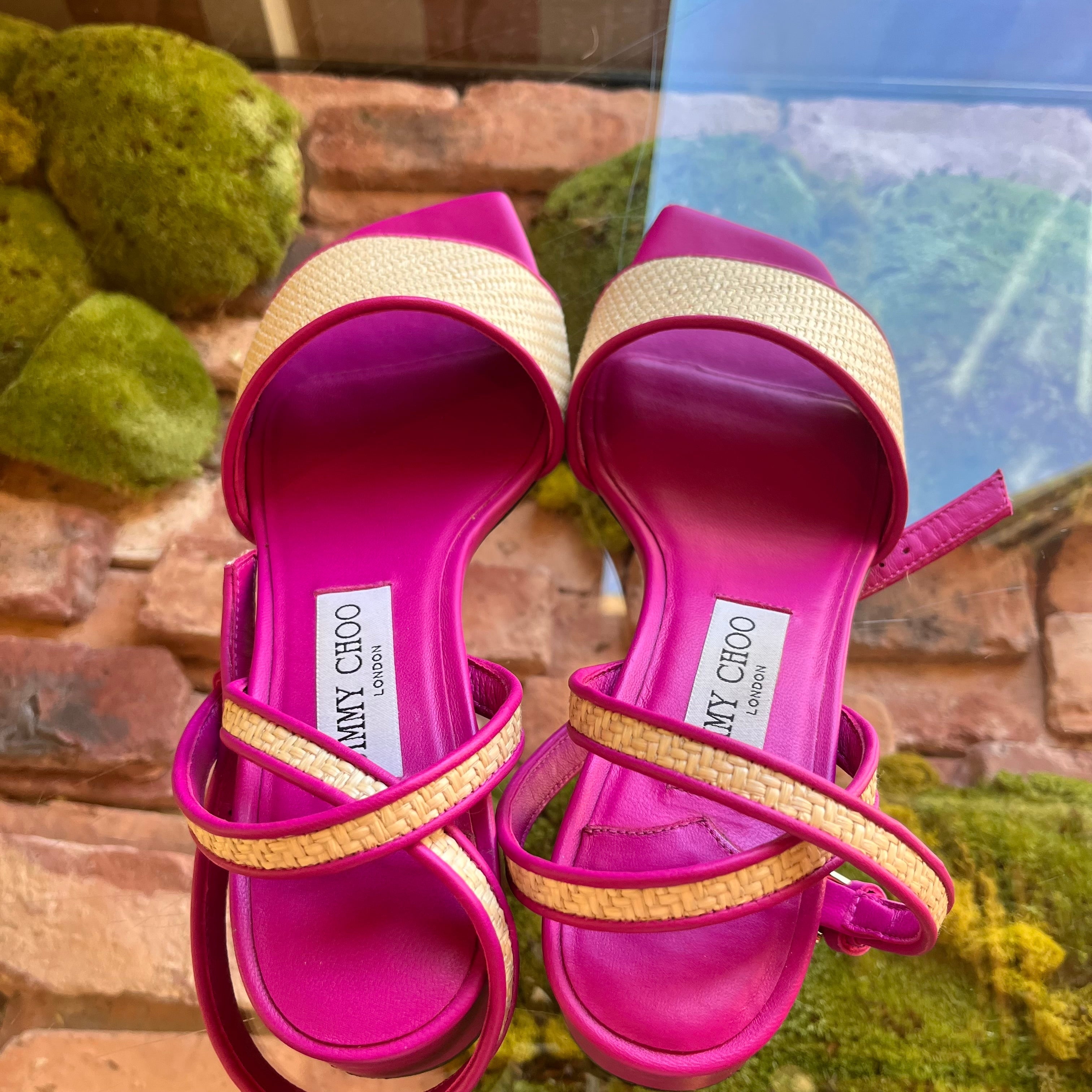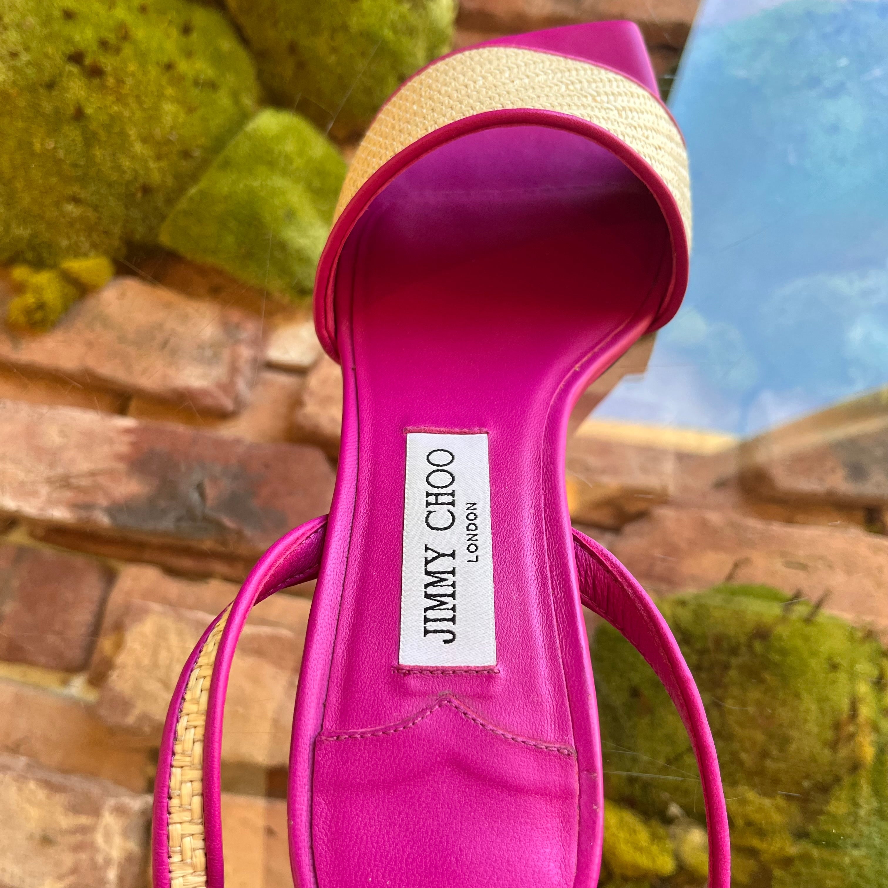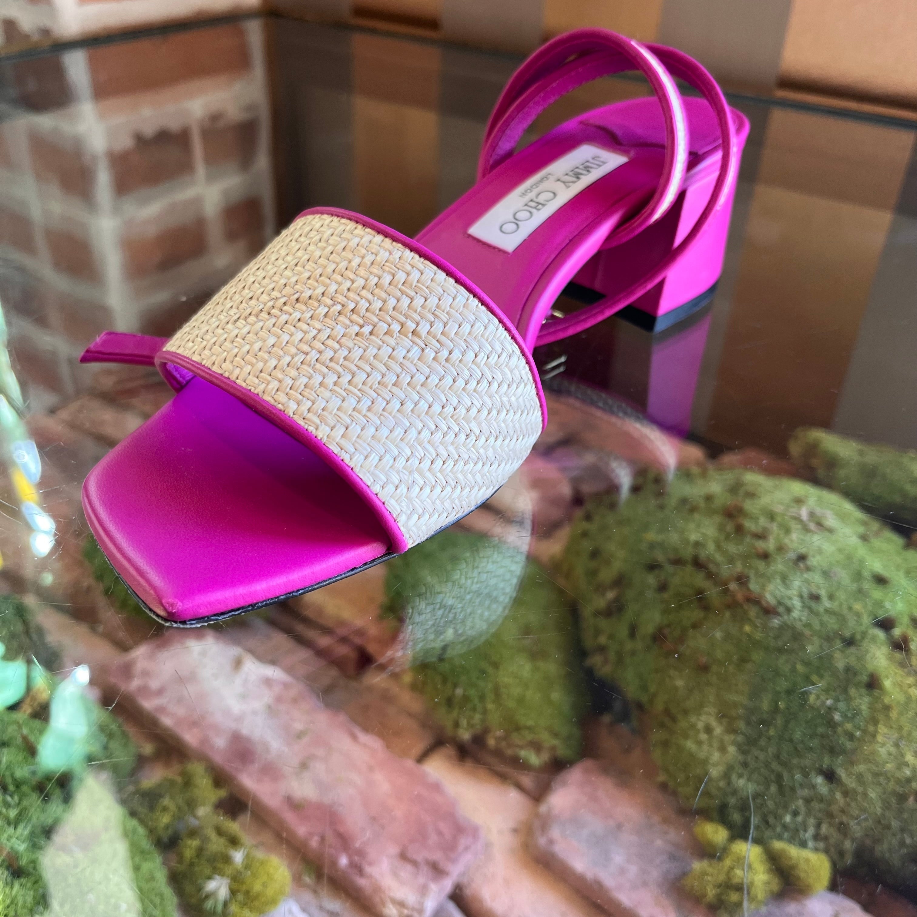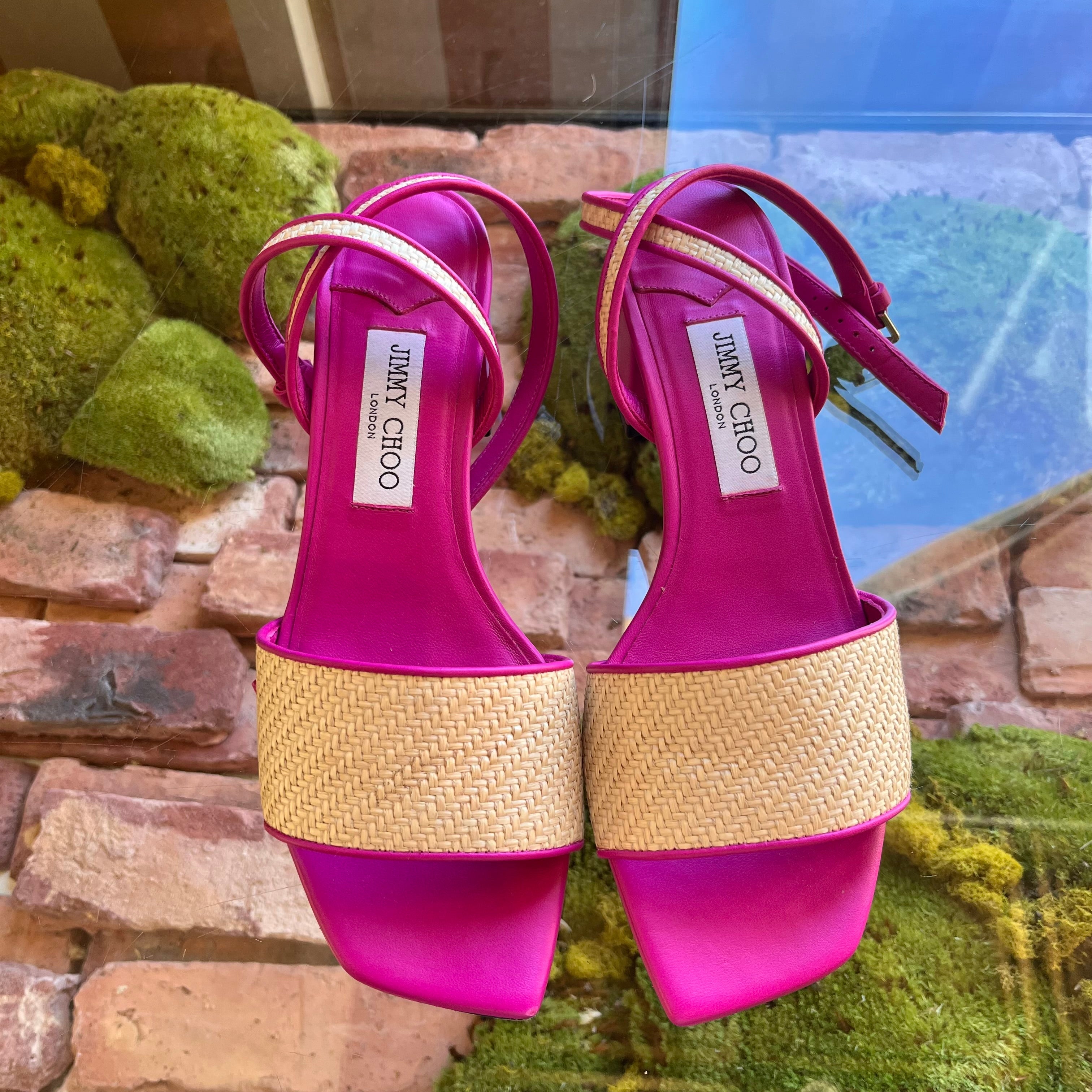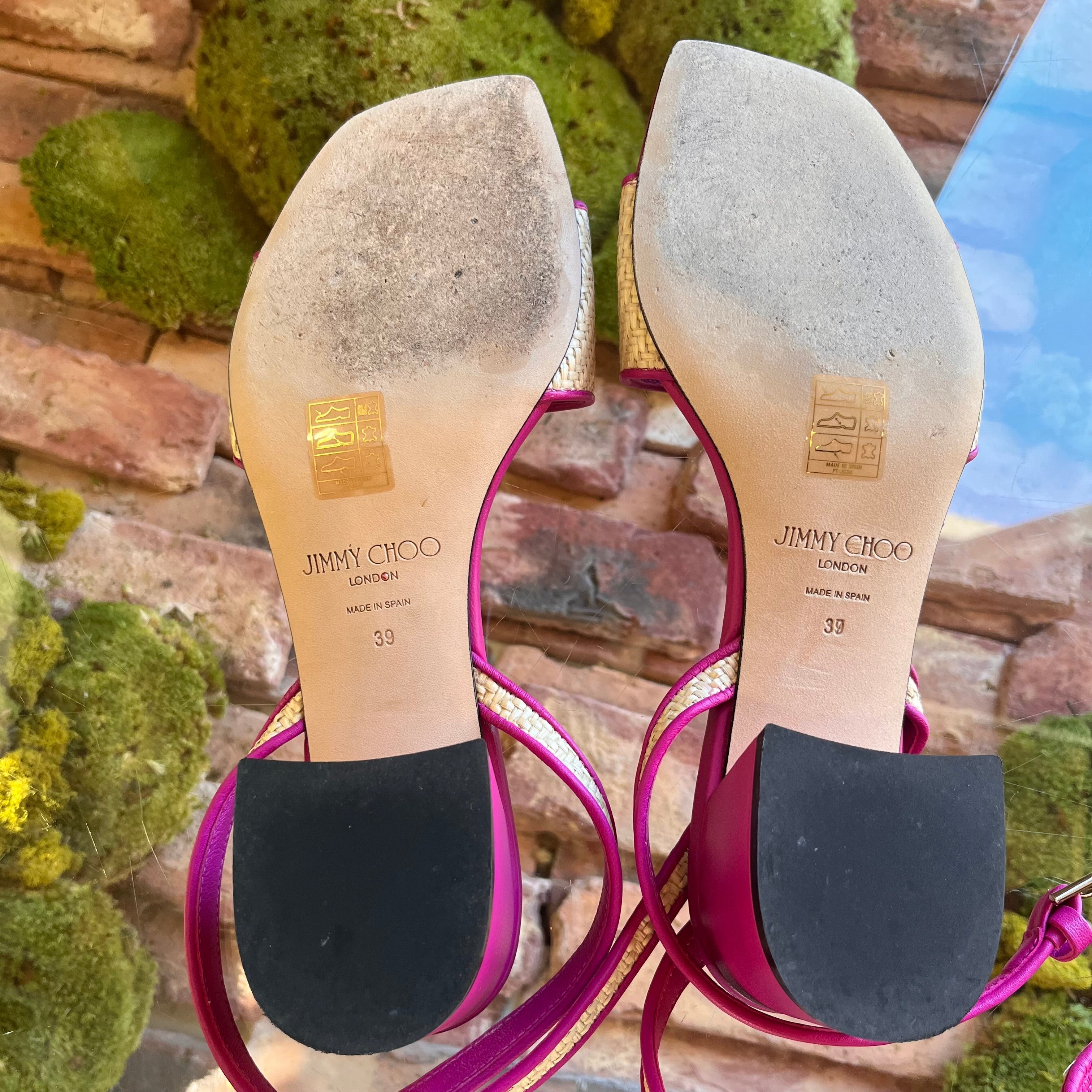 JIMMY CHOO Pink Raffia Sandals size 39 ( US 9)