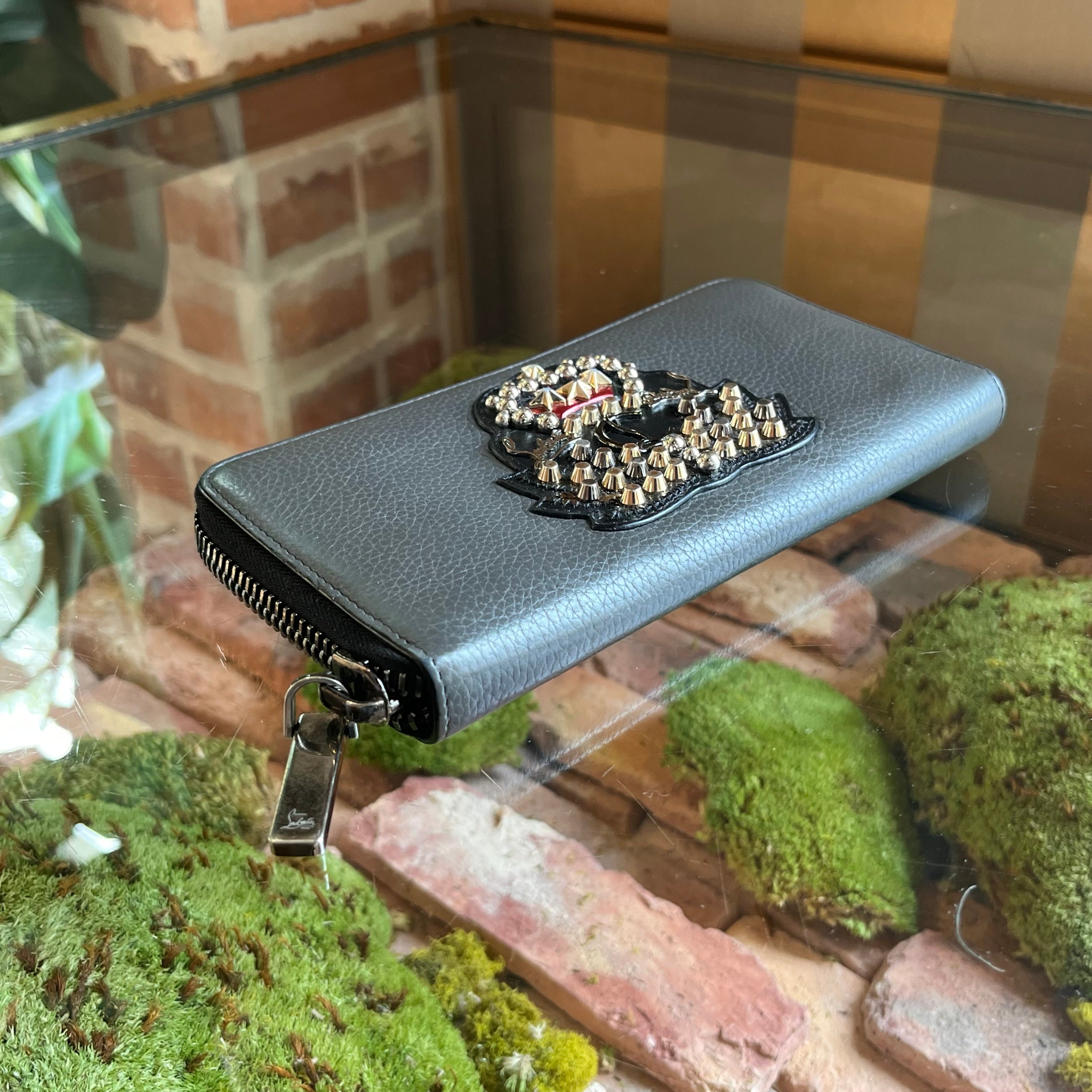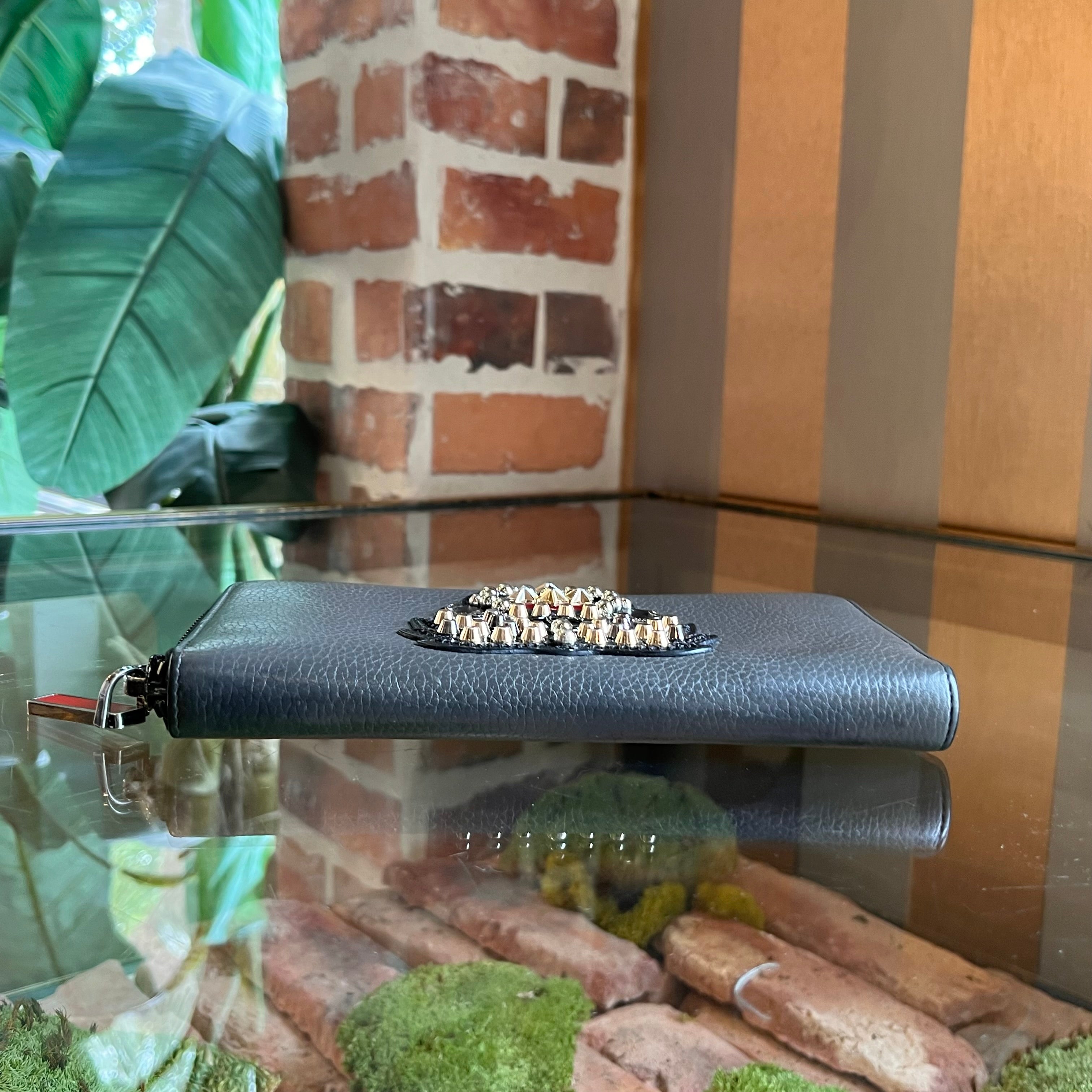 CHRISTIAN LOUBOUTIN Zip Around Gray Leather Studded Long Wallet
