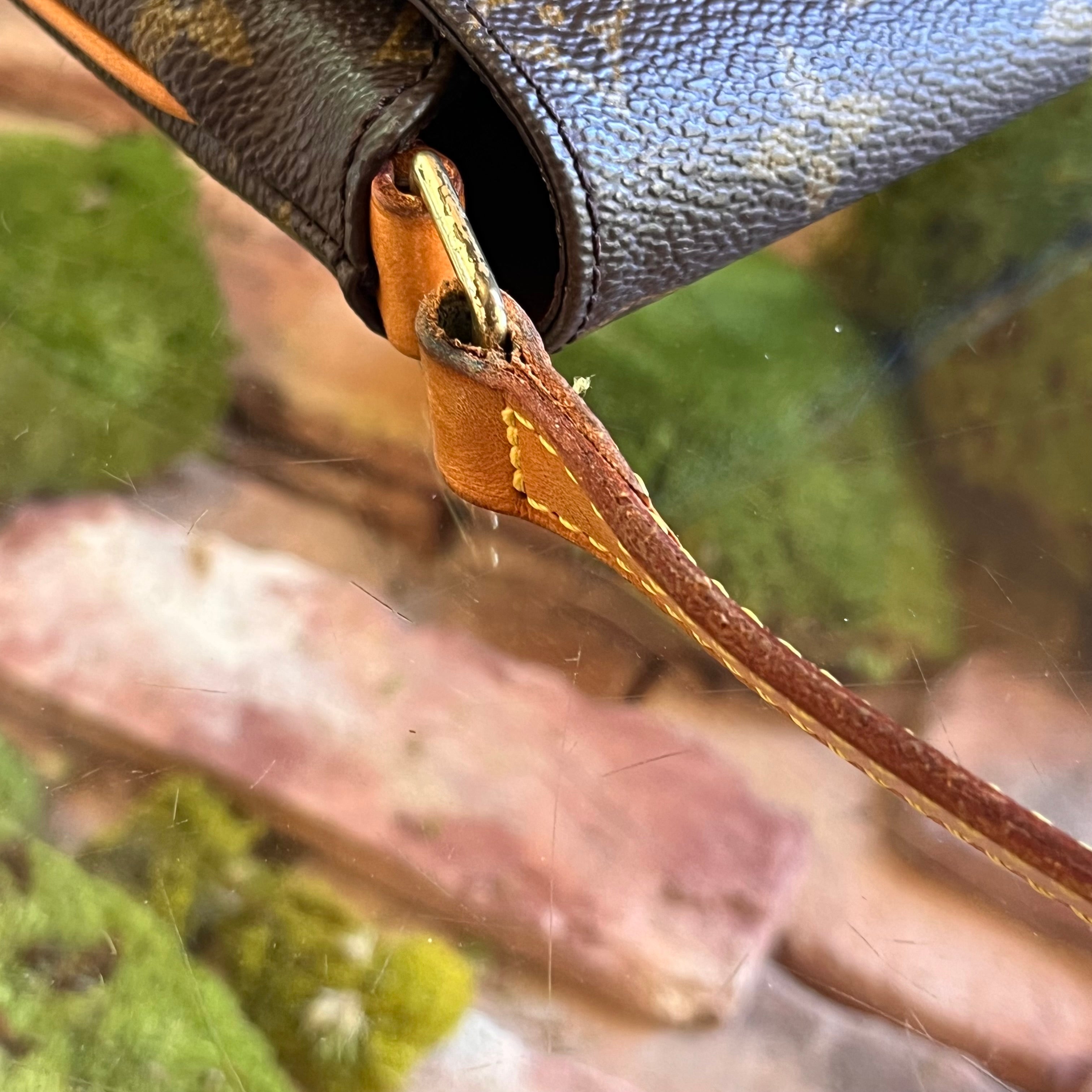 • Handle + Vachetta:  The vachetta leather has patianed displaying wear such as: water spots, scuffing, soiling, rubbing, markings, creasing, scratches while appearing darker in certain areas(please refer to photos).