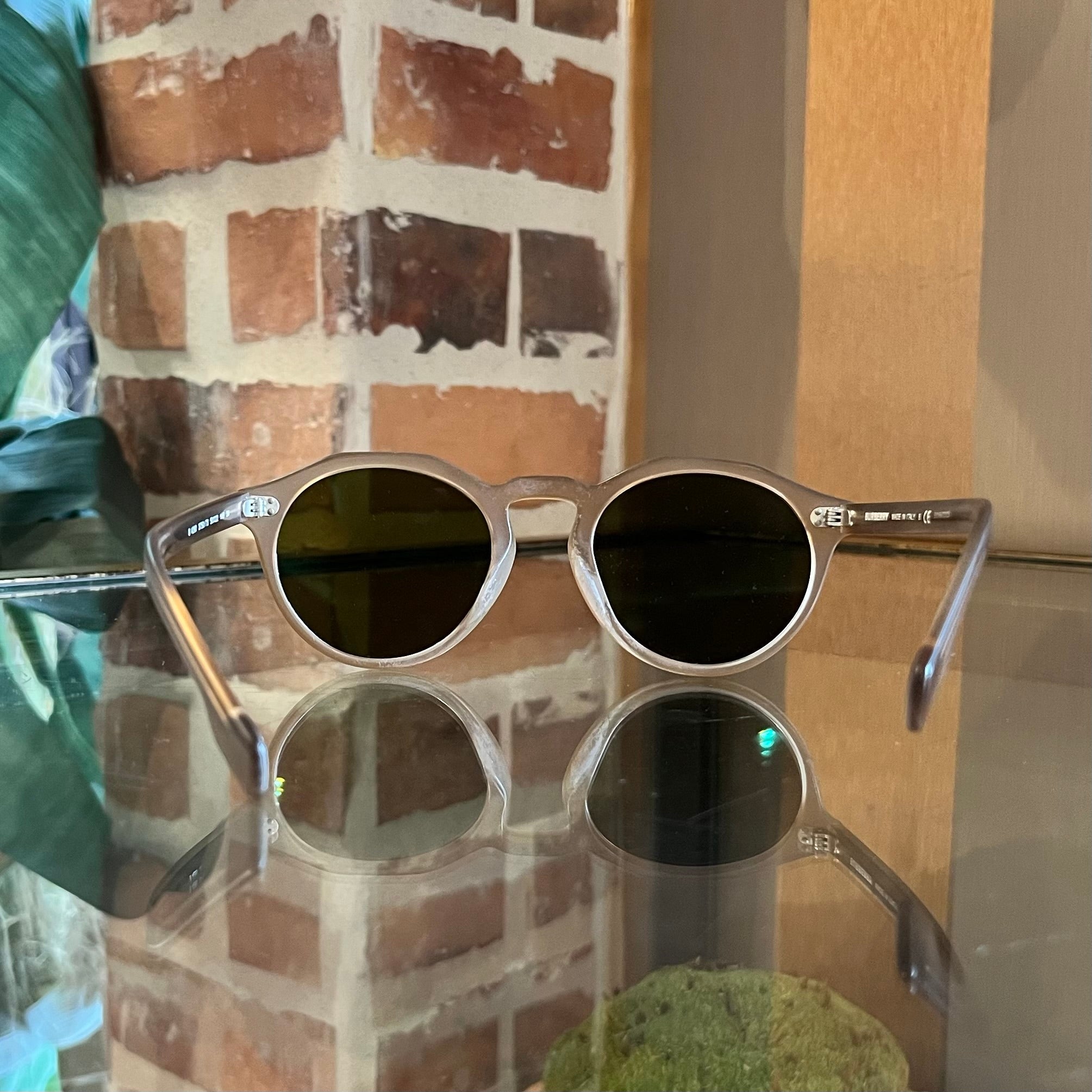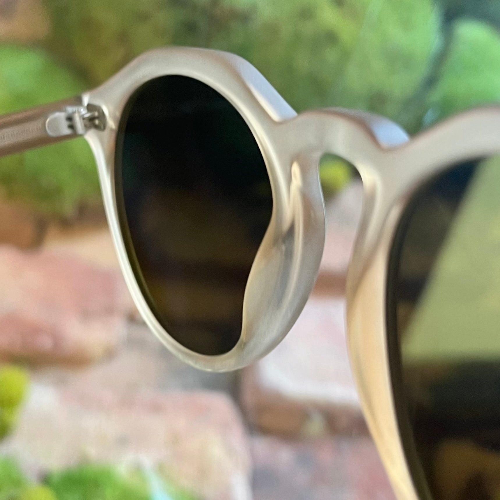 - Exterior: Temple arms are uneven. Nose pads show gentle wear. Lenses still remain clear. Color is vibrant. Overall very good condition.