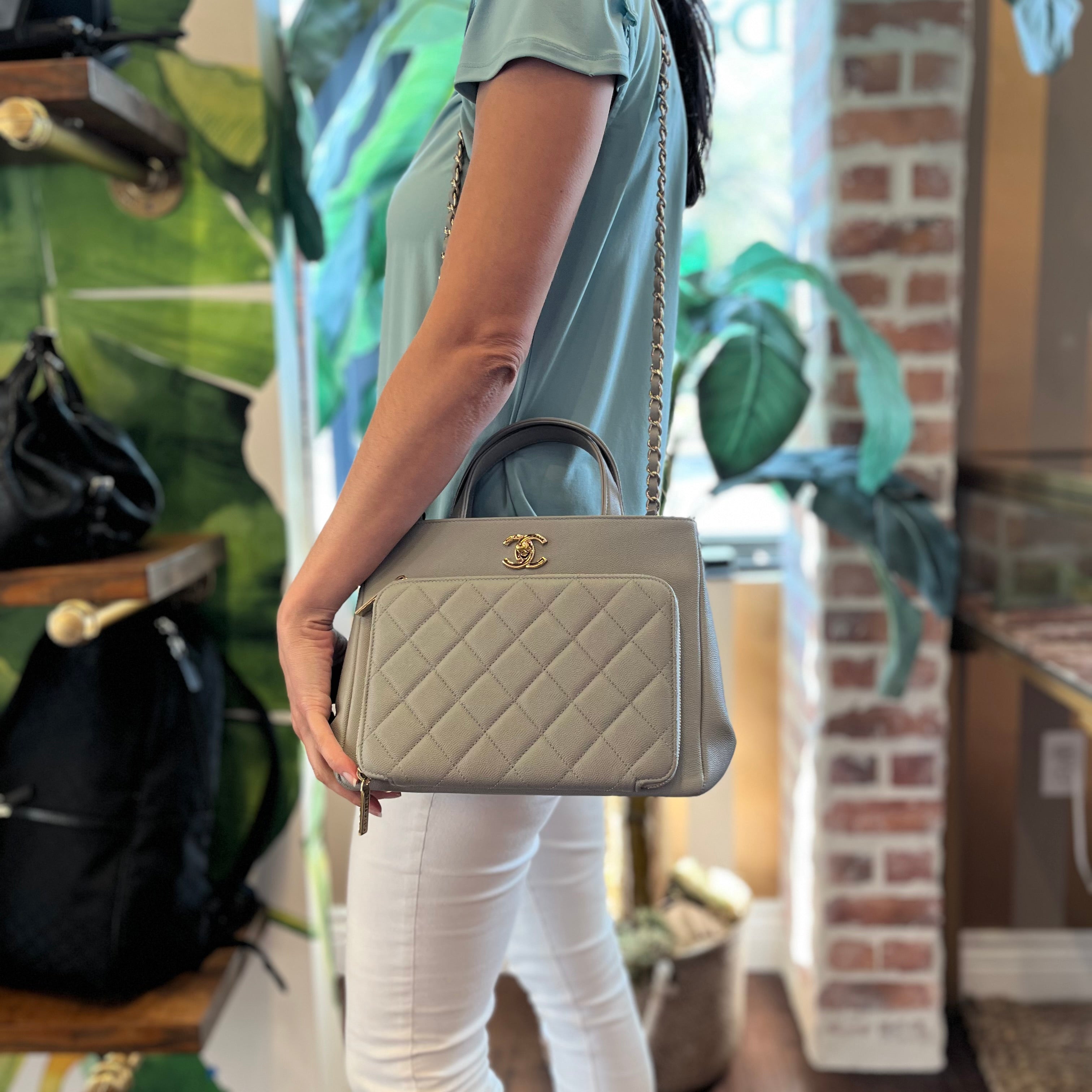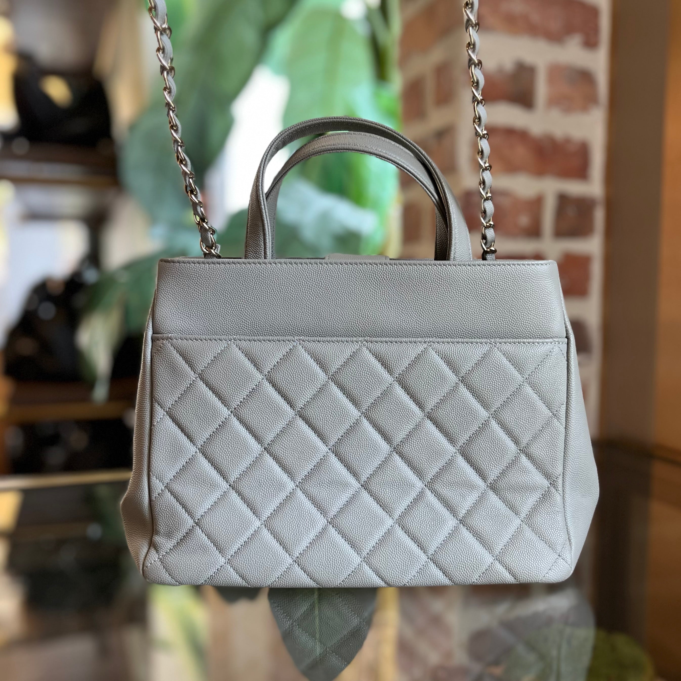 CHANEL Business Affinity Small Gray Caviar Tote Bag