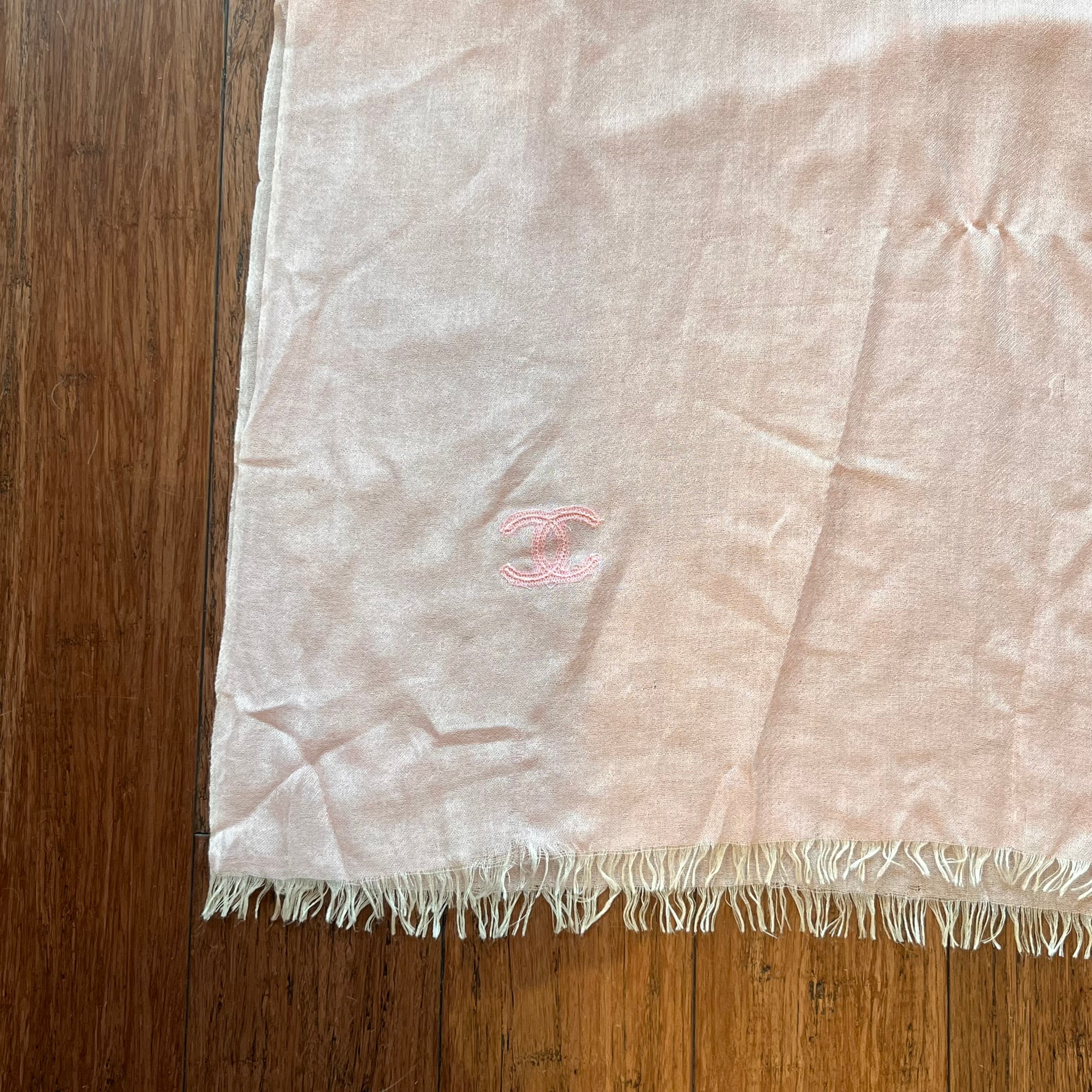 CHANEL CC Pink Cashmere Blend Scarf Shawl