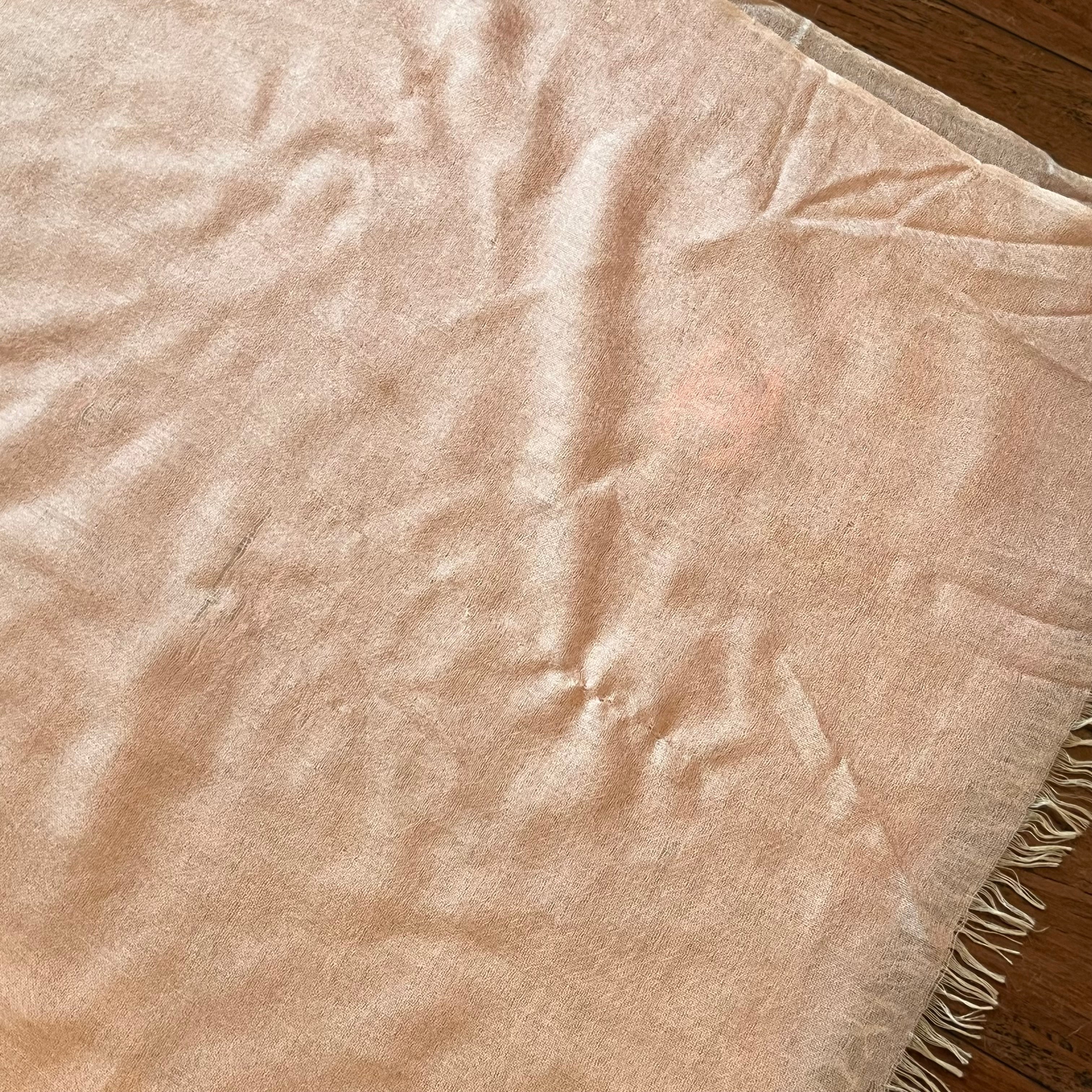 • Exterior: The scarf is vibrant and beautiful. It has developed snags, runs, pilling and small stains. It could possibly be cleaned if desired after purchase although it is wearable as is. Overall it's in very good condition.