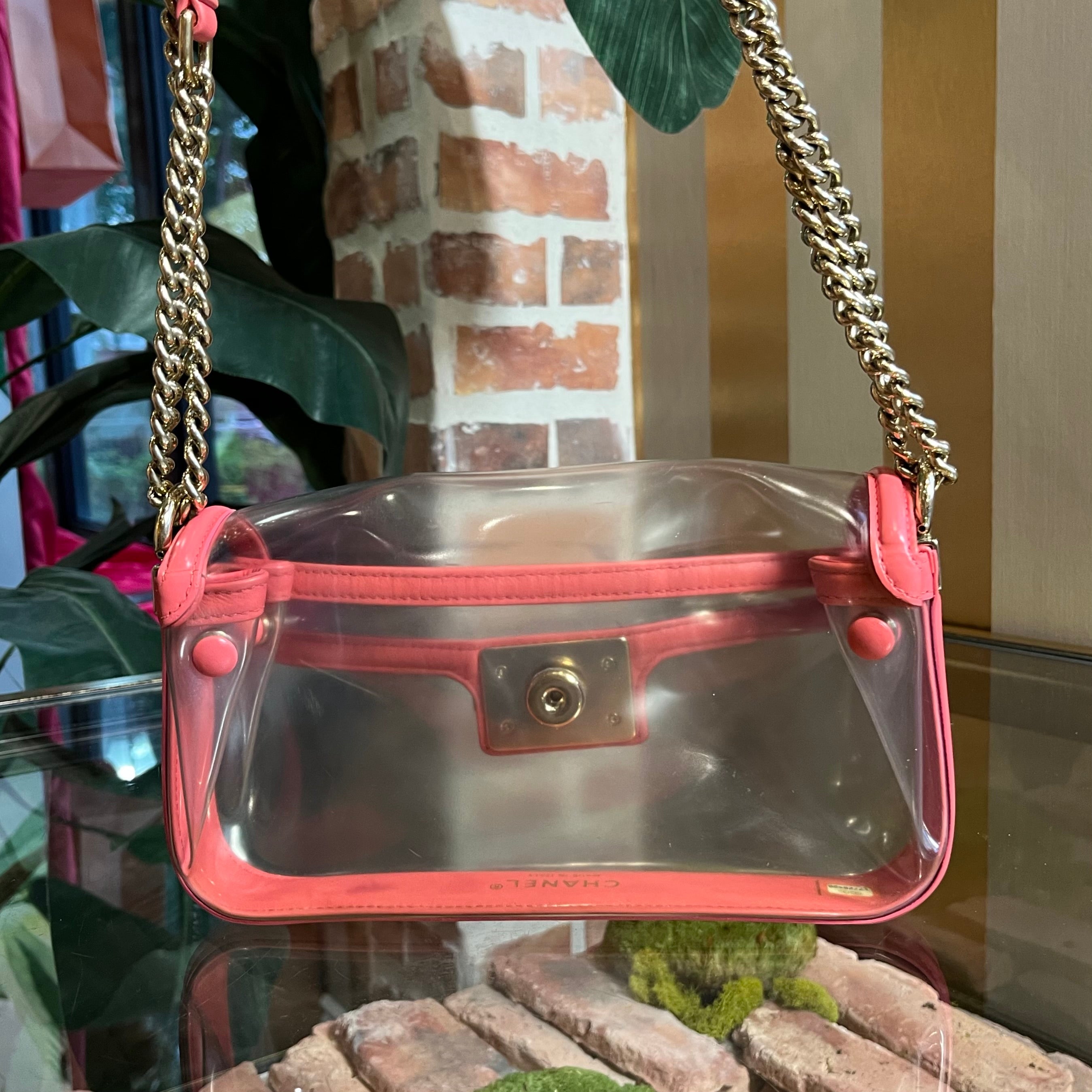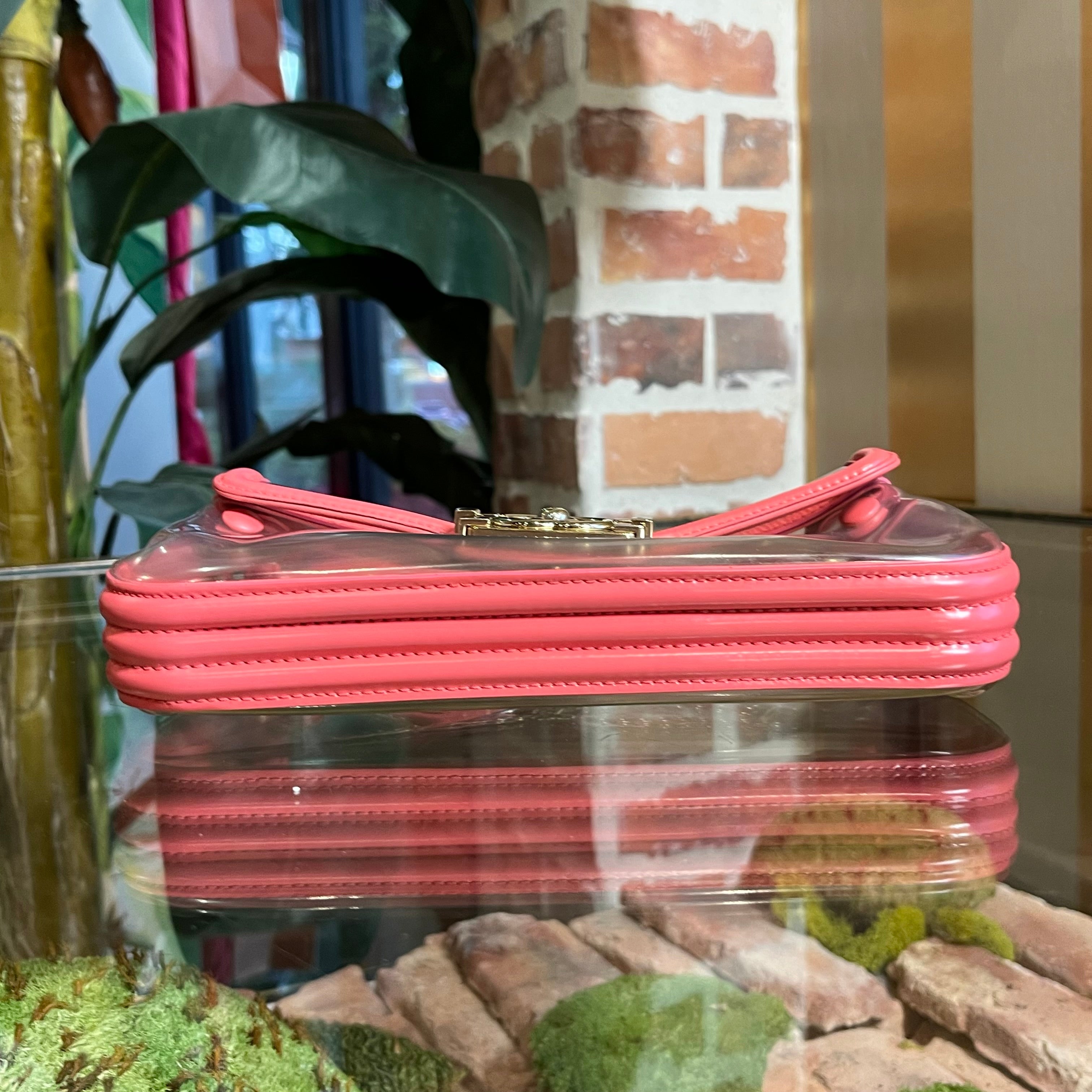 CHANEL Transparent And Pink Vinyl CC Chain Small Shoulder Bag