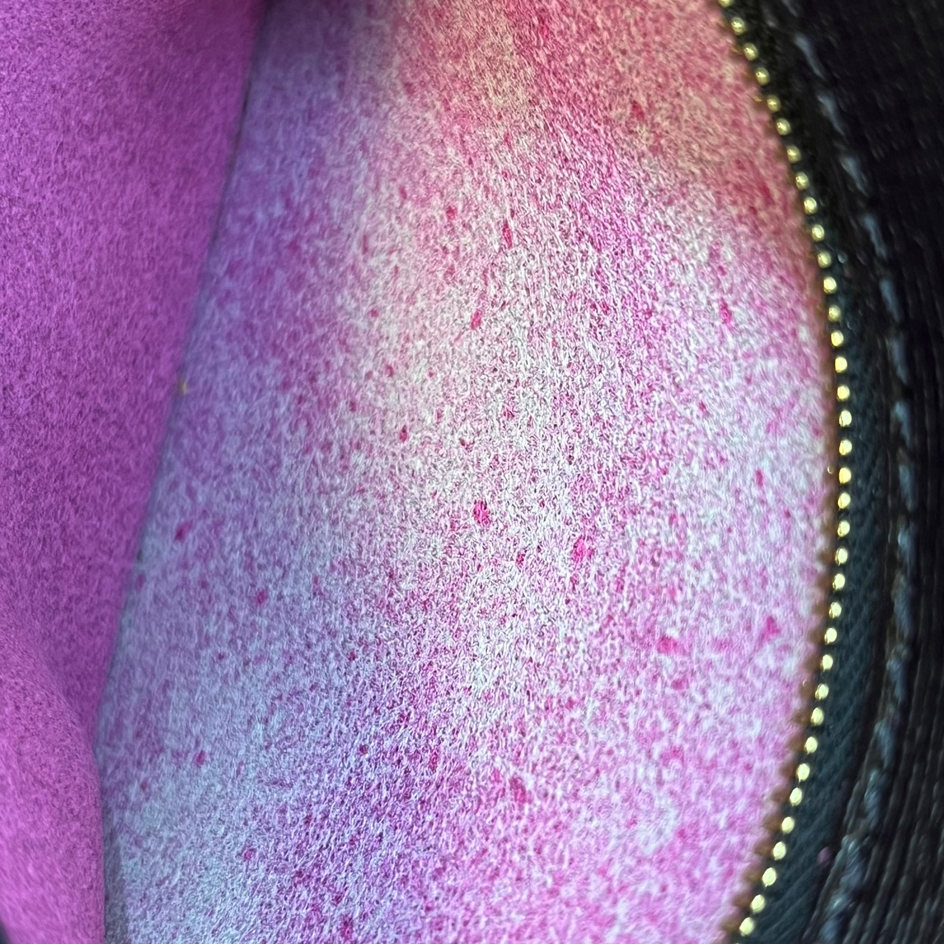 • Interior: Peeling/flaking to the leather and the interior of the pouch is heavily rubbed but not powdery to the touch.