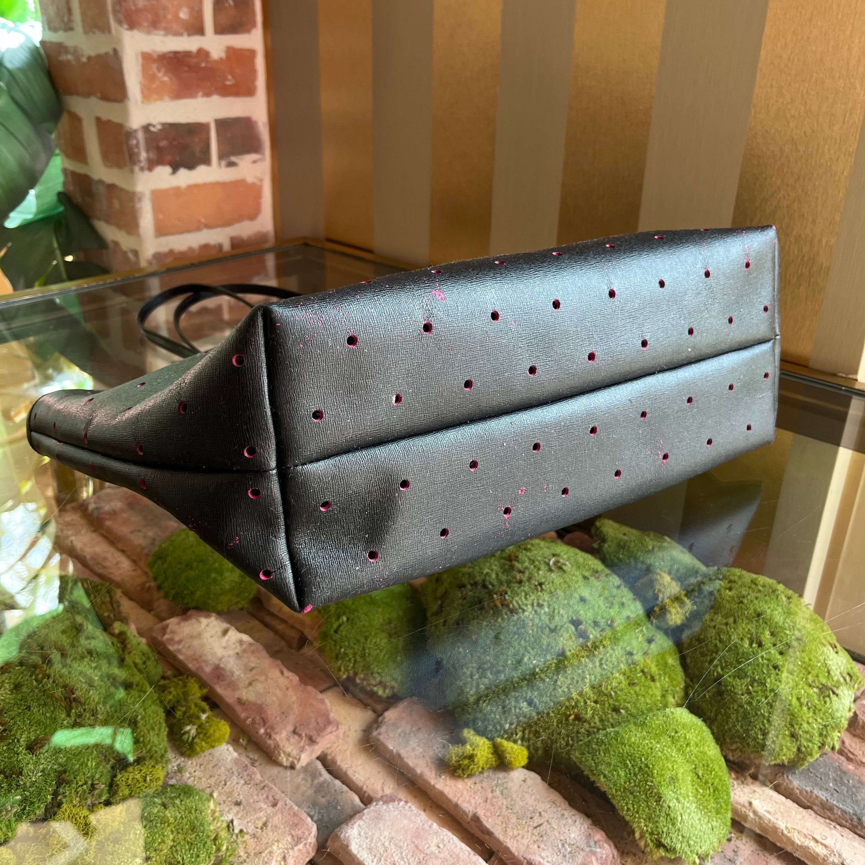 A modern twist on Italian craftsmanship, this tote features supple Vitello leather with bold perforated detailing for a breathable, textured look. The structured roll-top design and FF logo hardware strike the perfect balance between Fendi's playful spirit and timeless functionality. C+ Poor Condtion