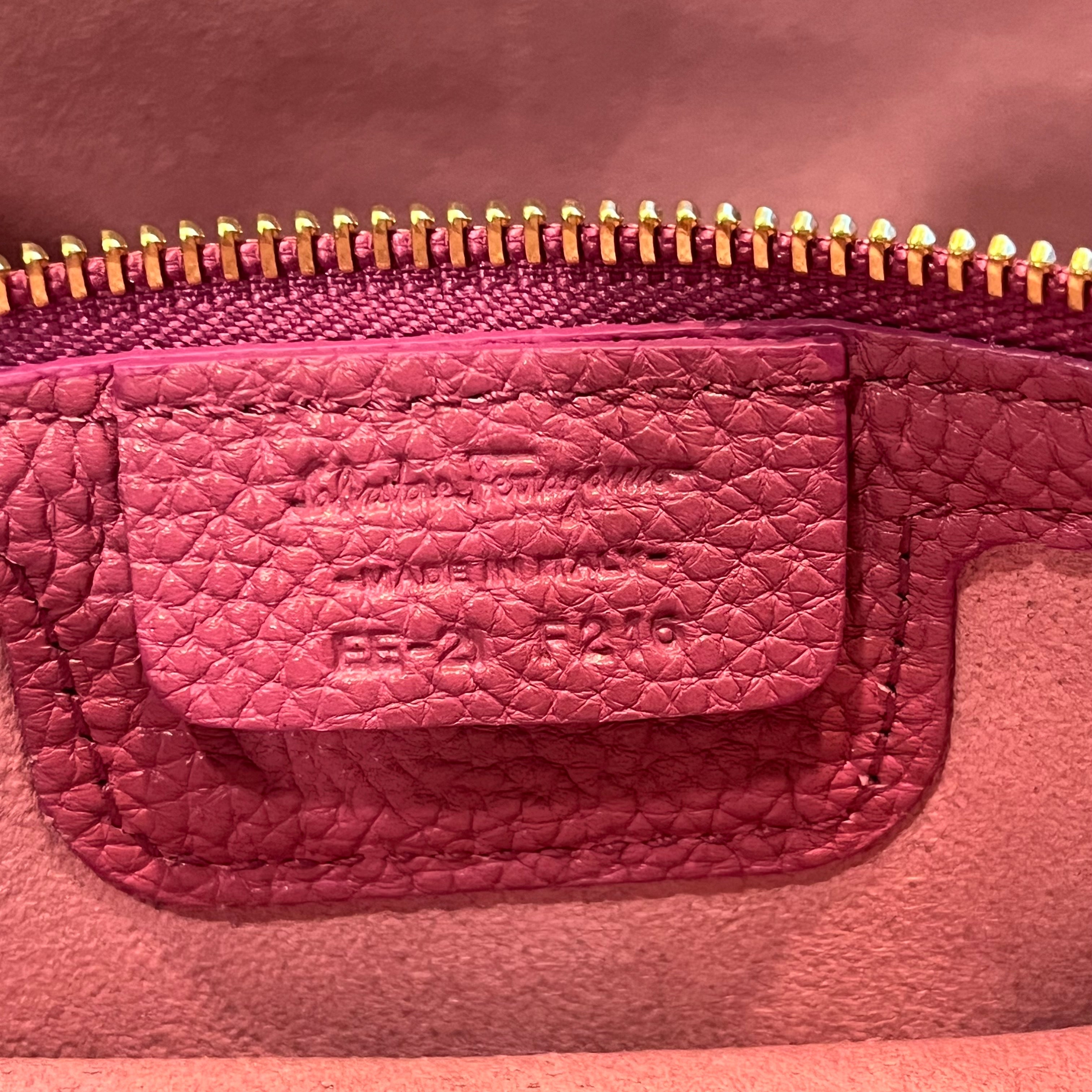 A sophisticated tote in Salvatore Ferragamo's textured leather, featuring the brand's discreet Gancini detailing for understated elegance. The medium size offers ample space without bulk, while the structured silhouette and top handles ensure polished versatility. Perfect for those who appreciate Italian craftsmanship with quiet luxury. B+ Very Good Condition