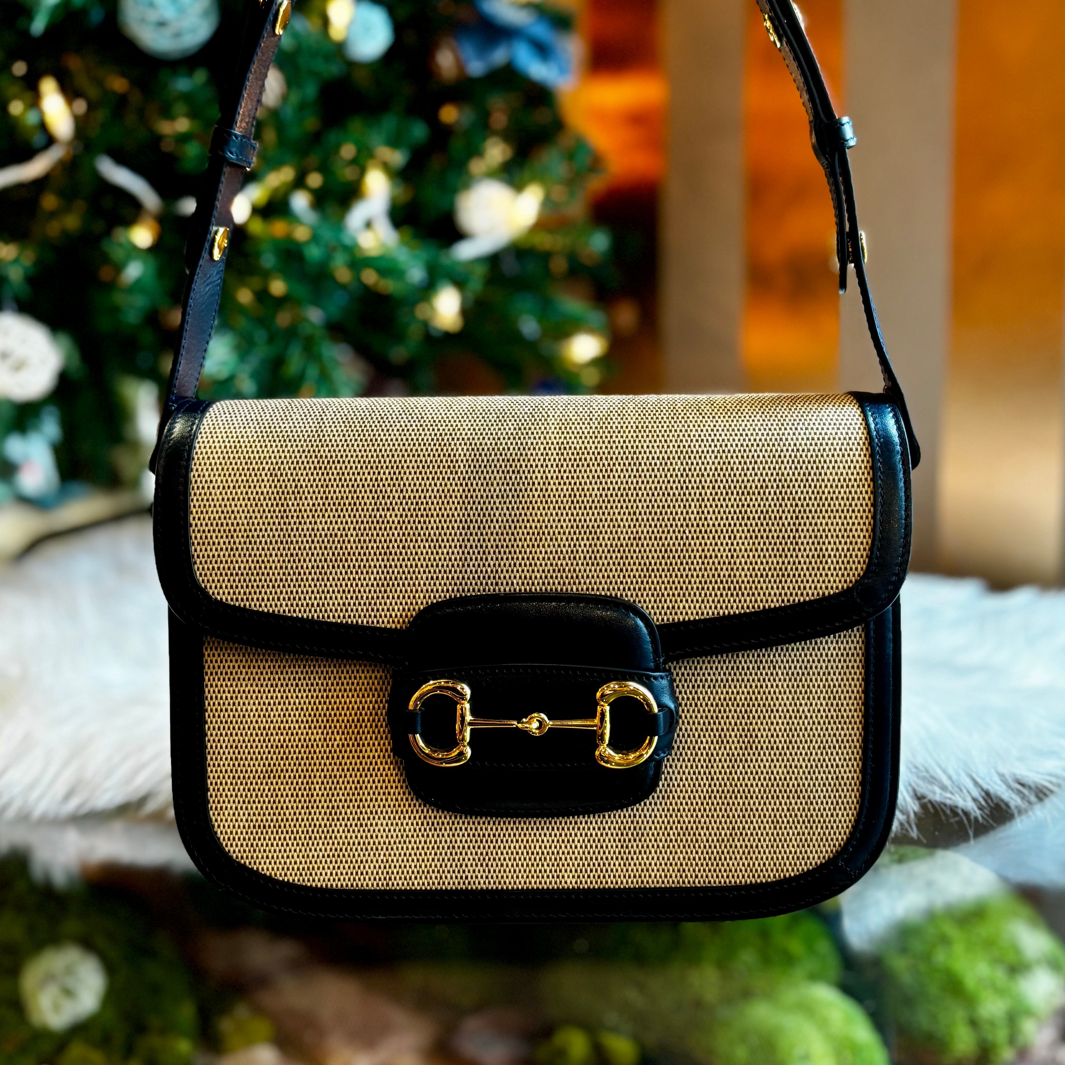 GUCCI 1955 Horsebit Canvas Shoulder Bag