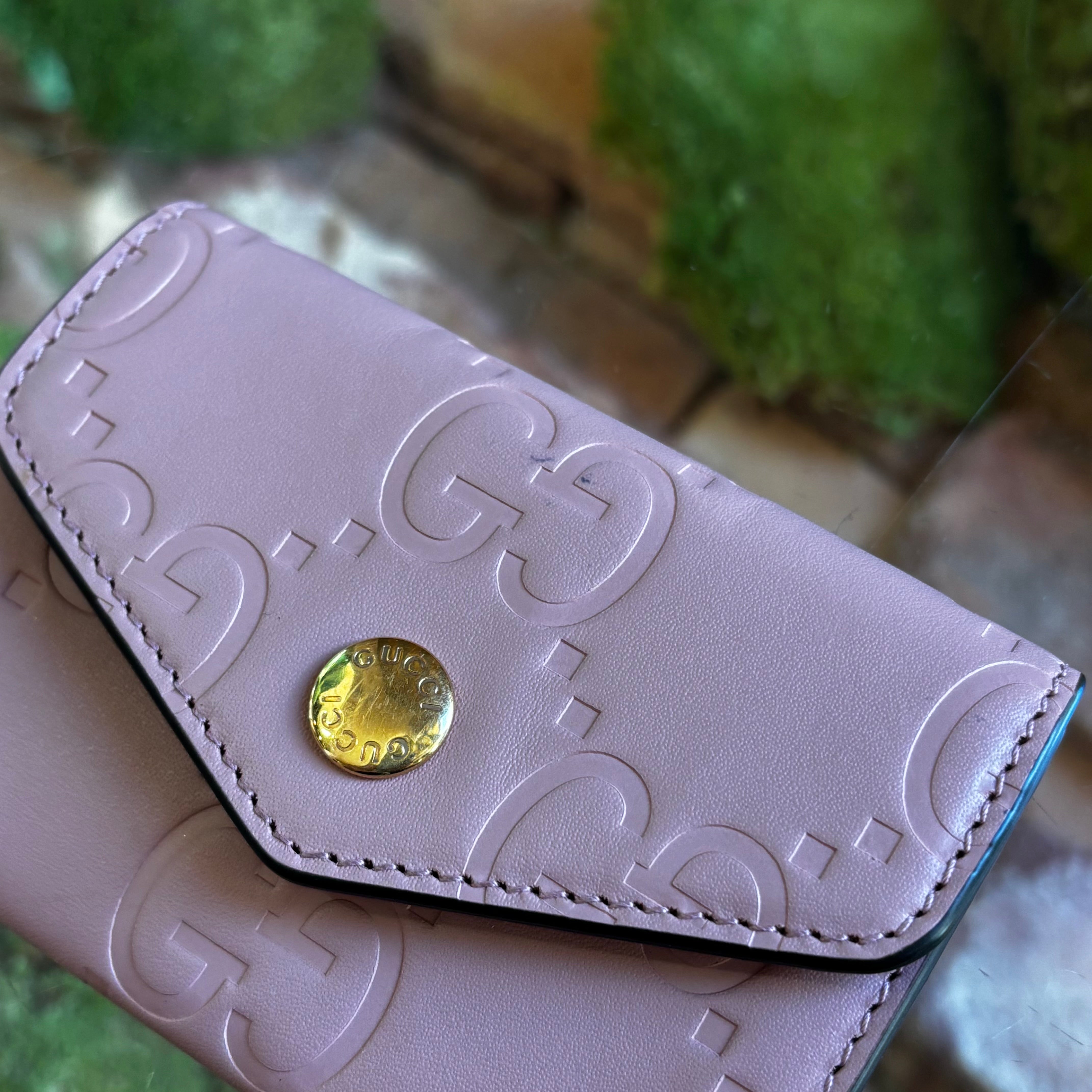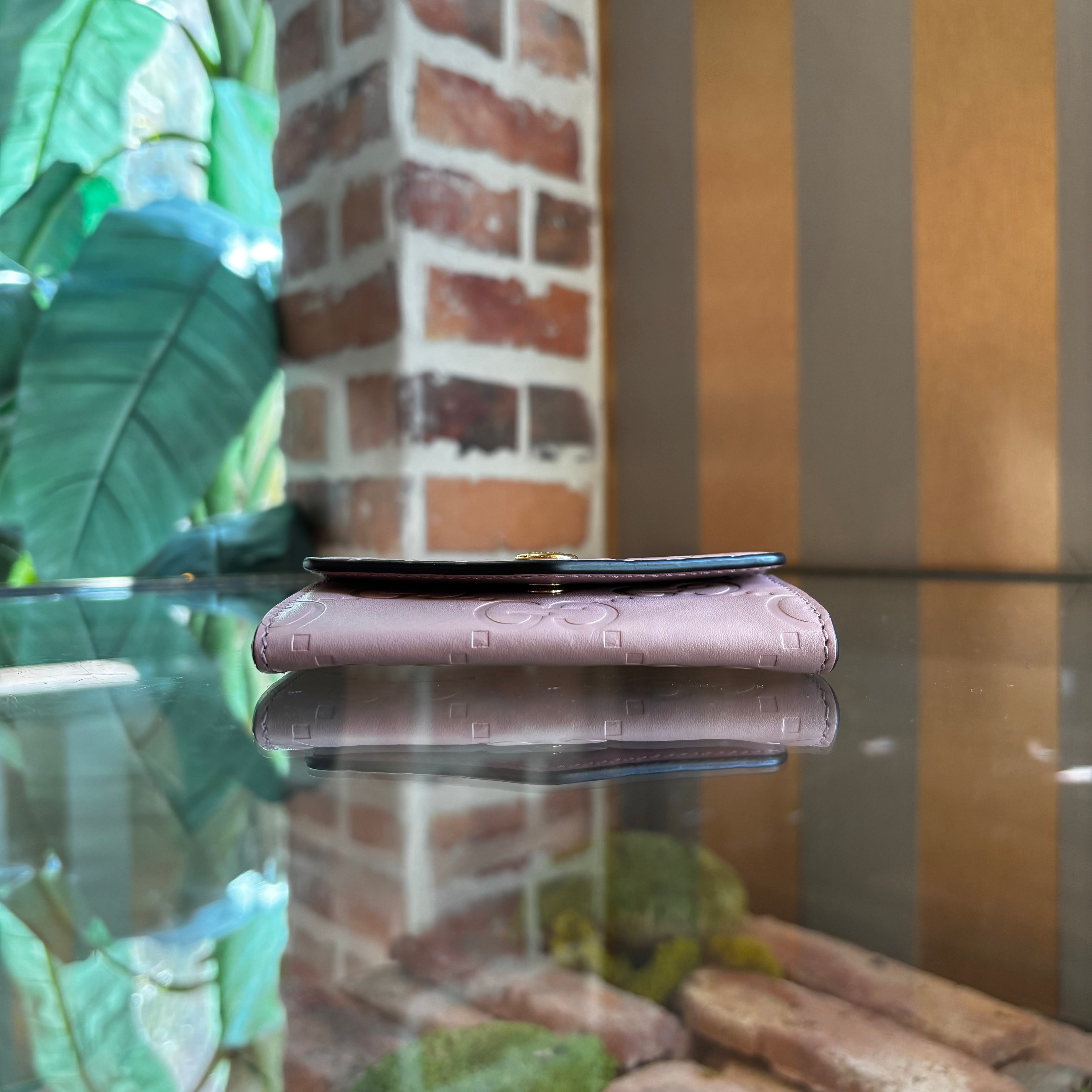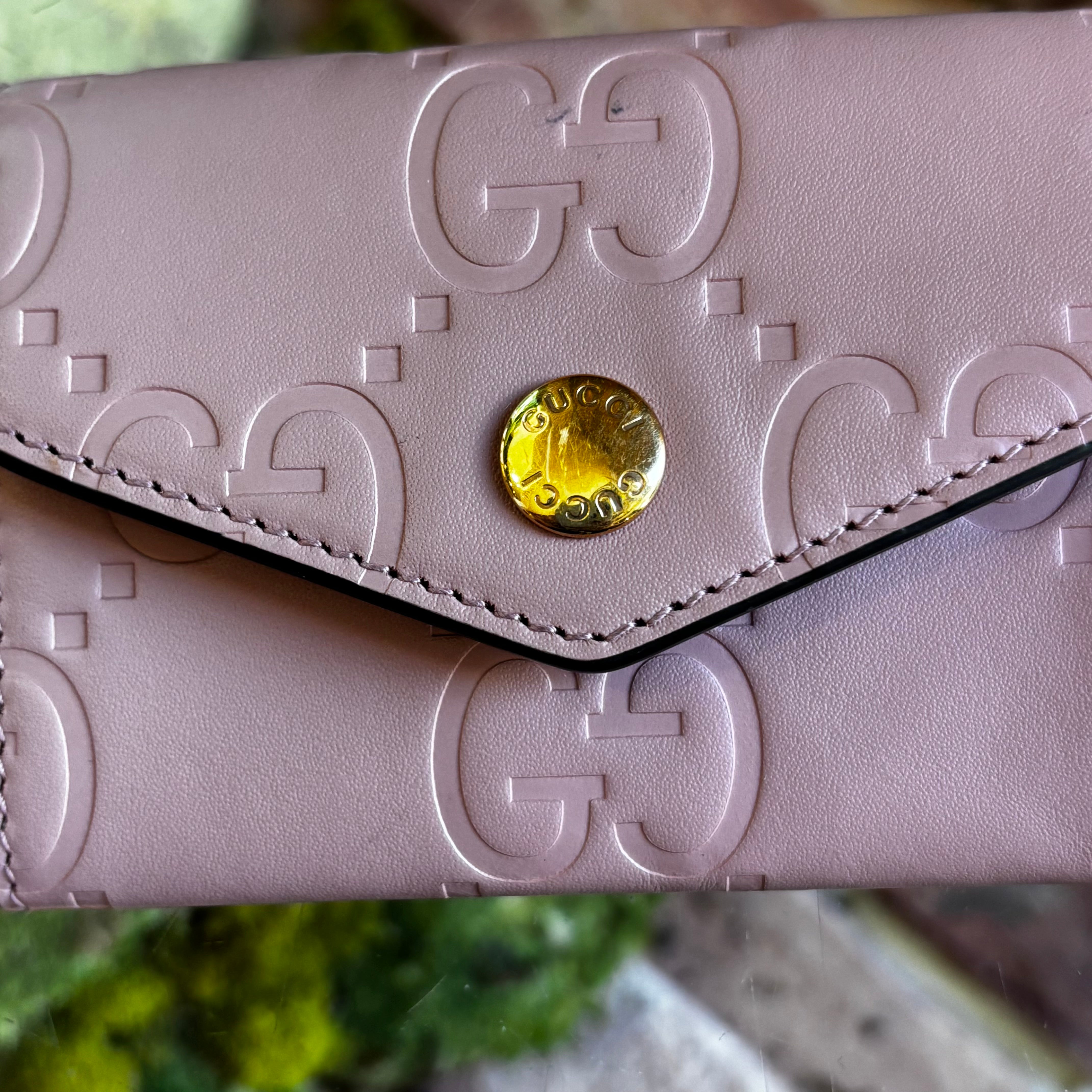 GUCCI Jumbo Snap Pink GG Embossed Calfskin Wallet