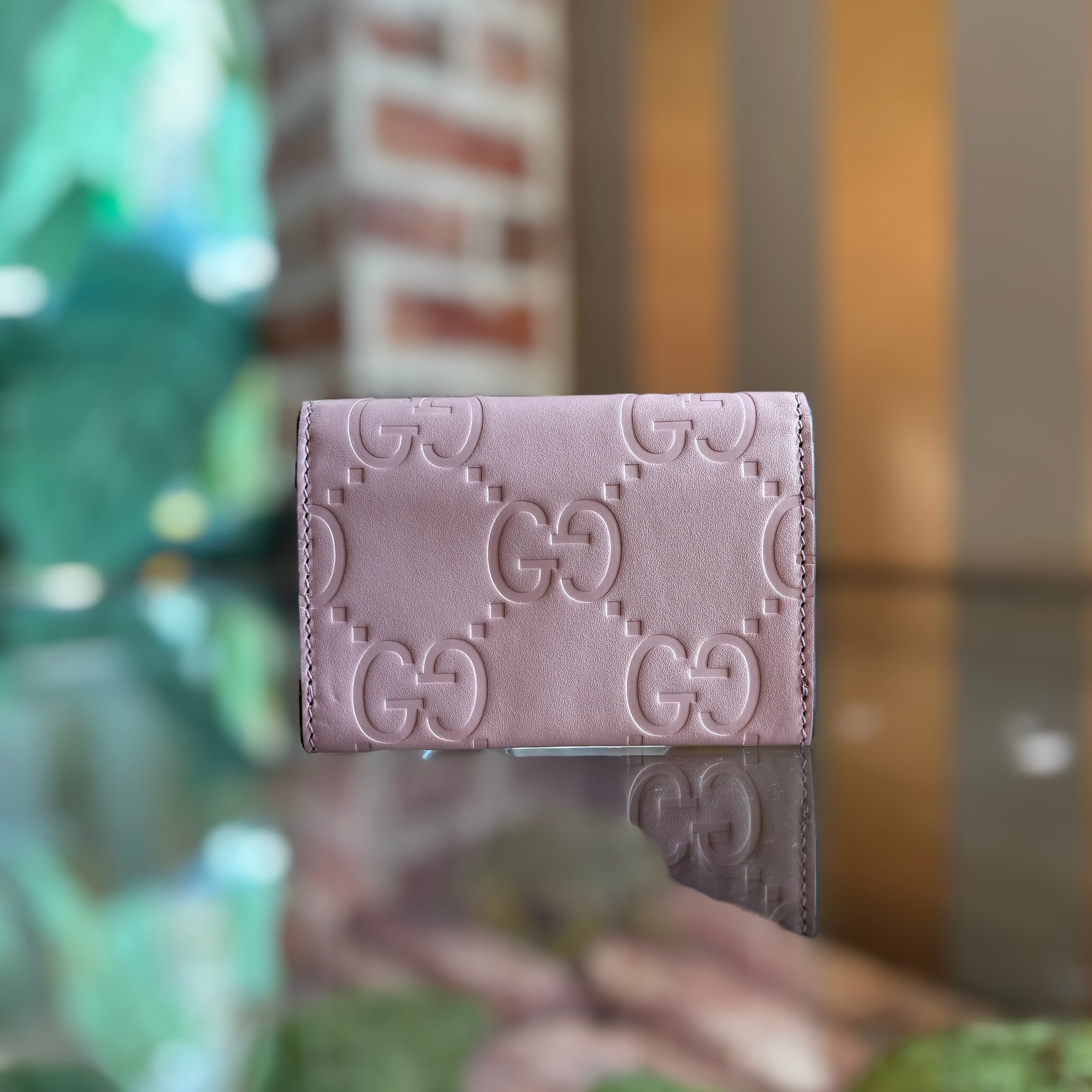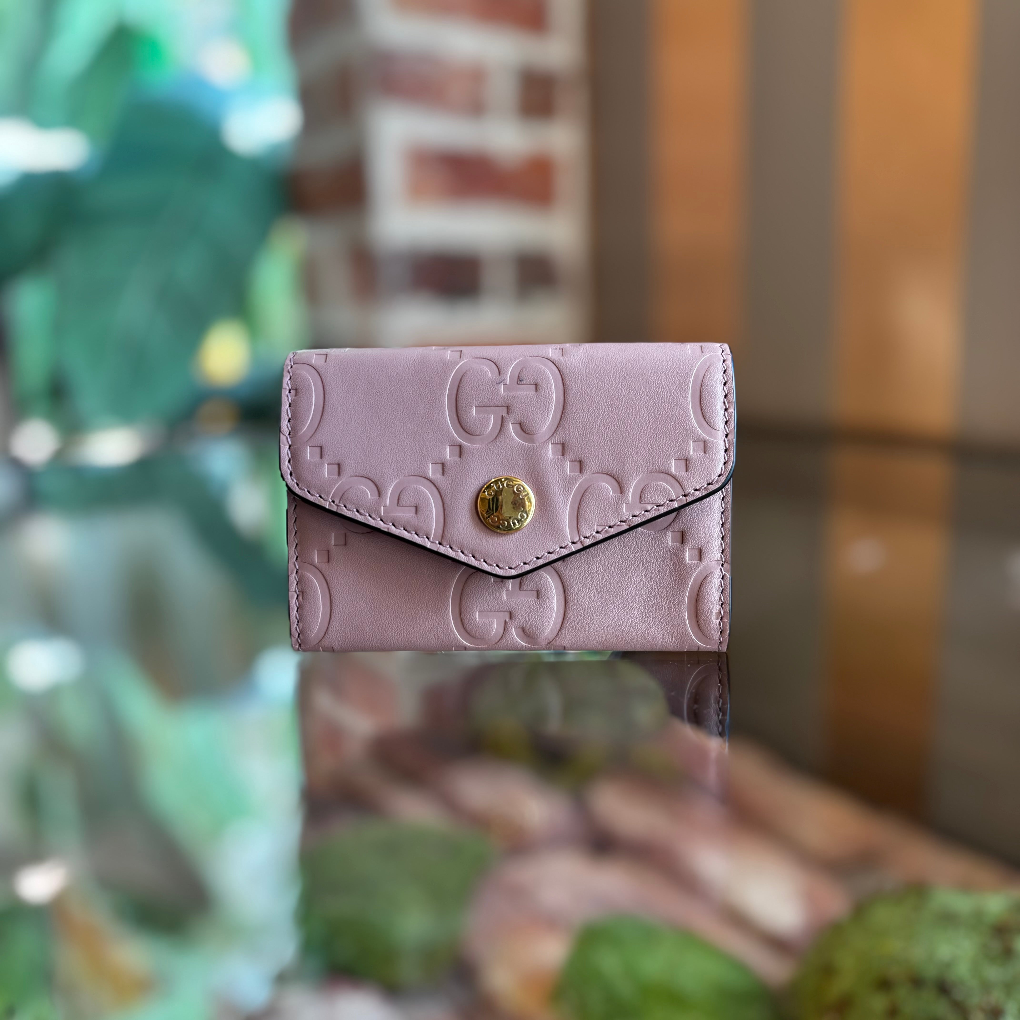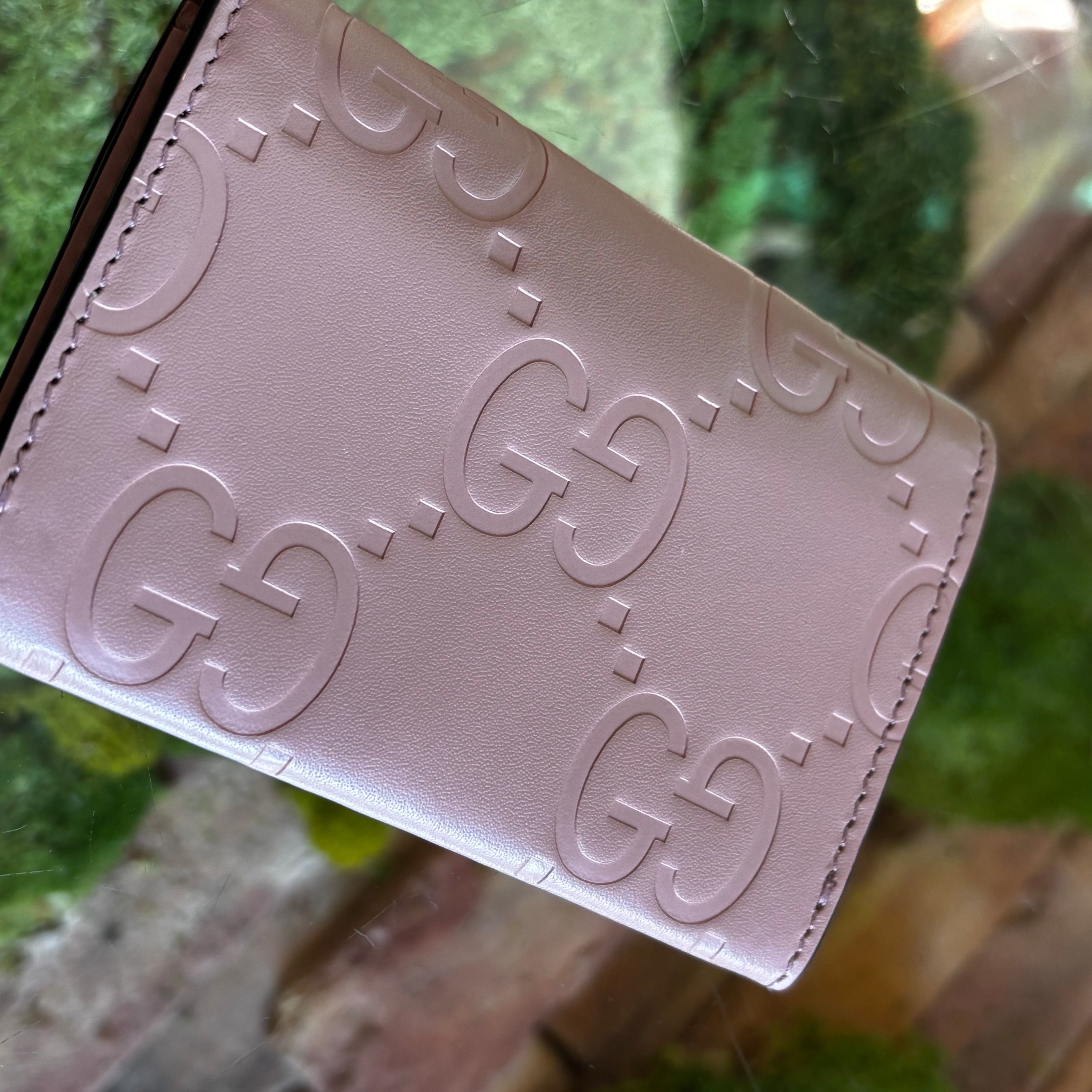 GUCCI Jumbo Snap Pink GG Embossed Calfskin Wallet