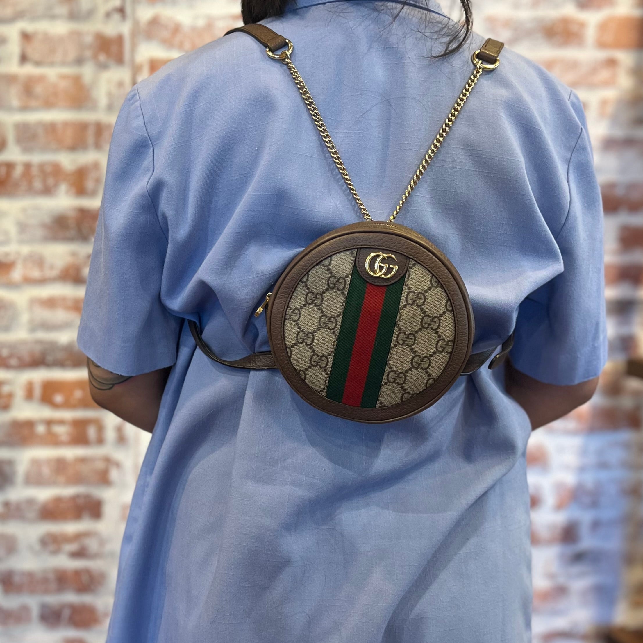 GUCCI Ophidia Round Mini GG Supreme Monogram Web Backpack