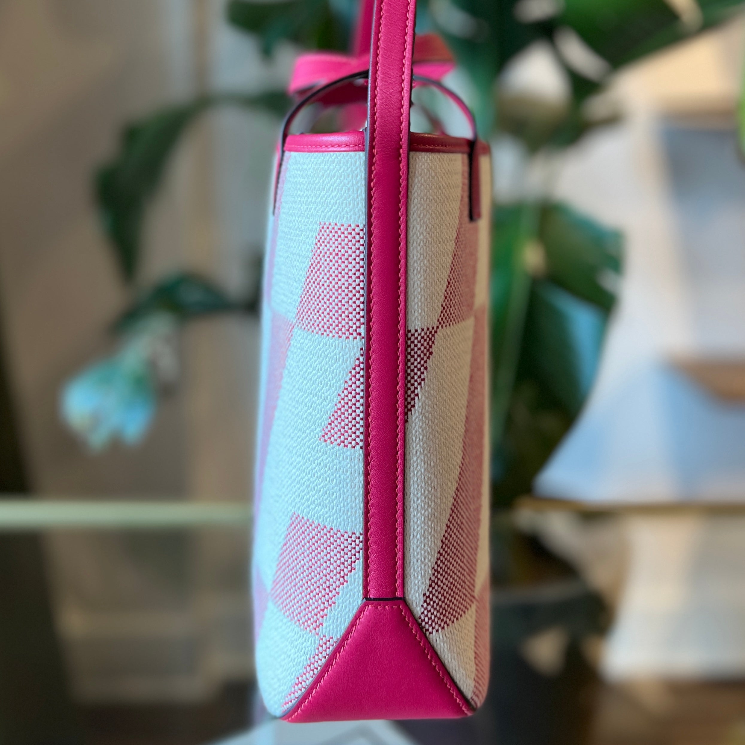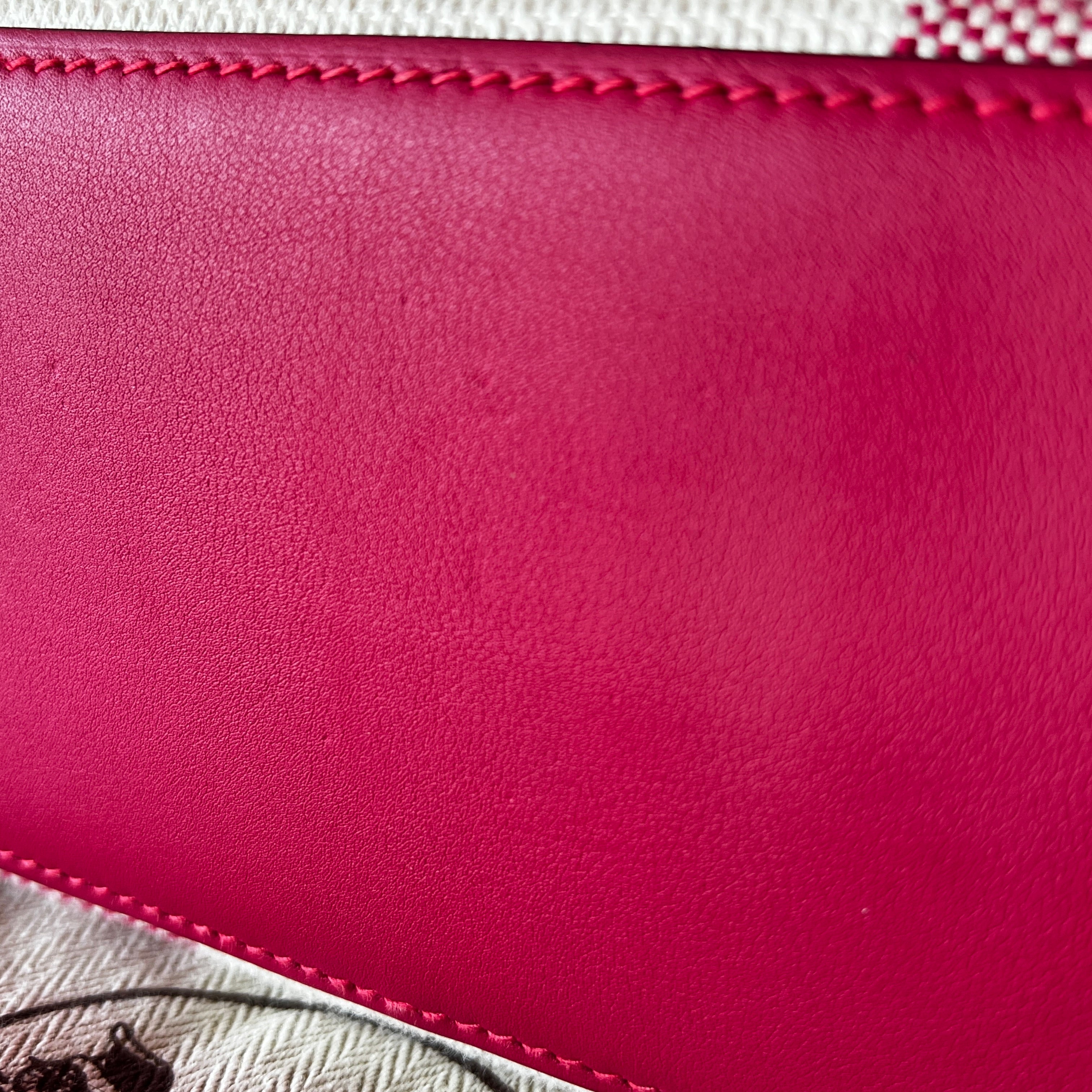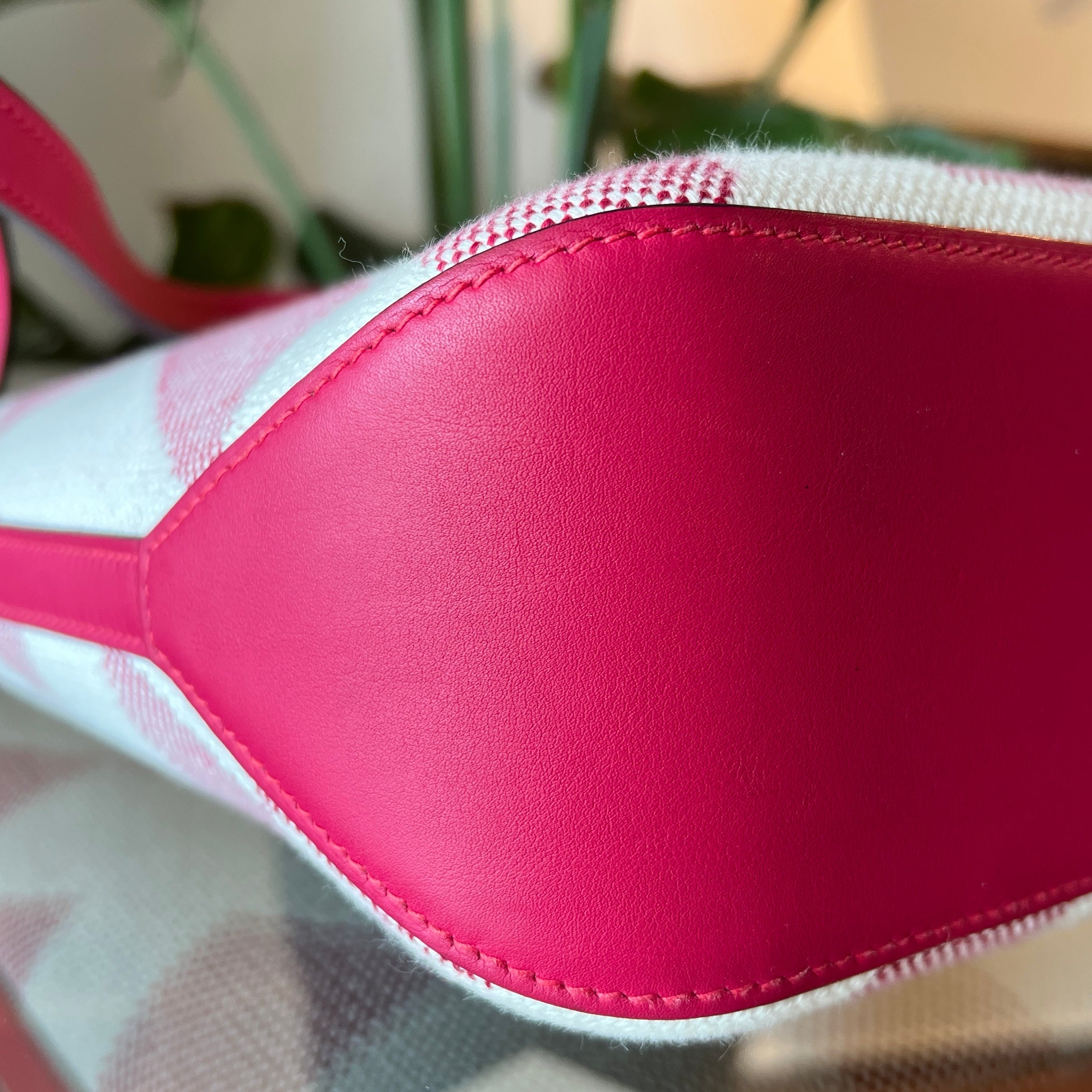 HERMES Ambie PM Framboise Toile H Veau Swift Tote