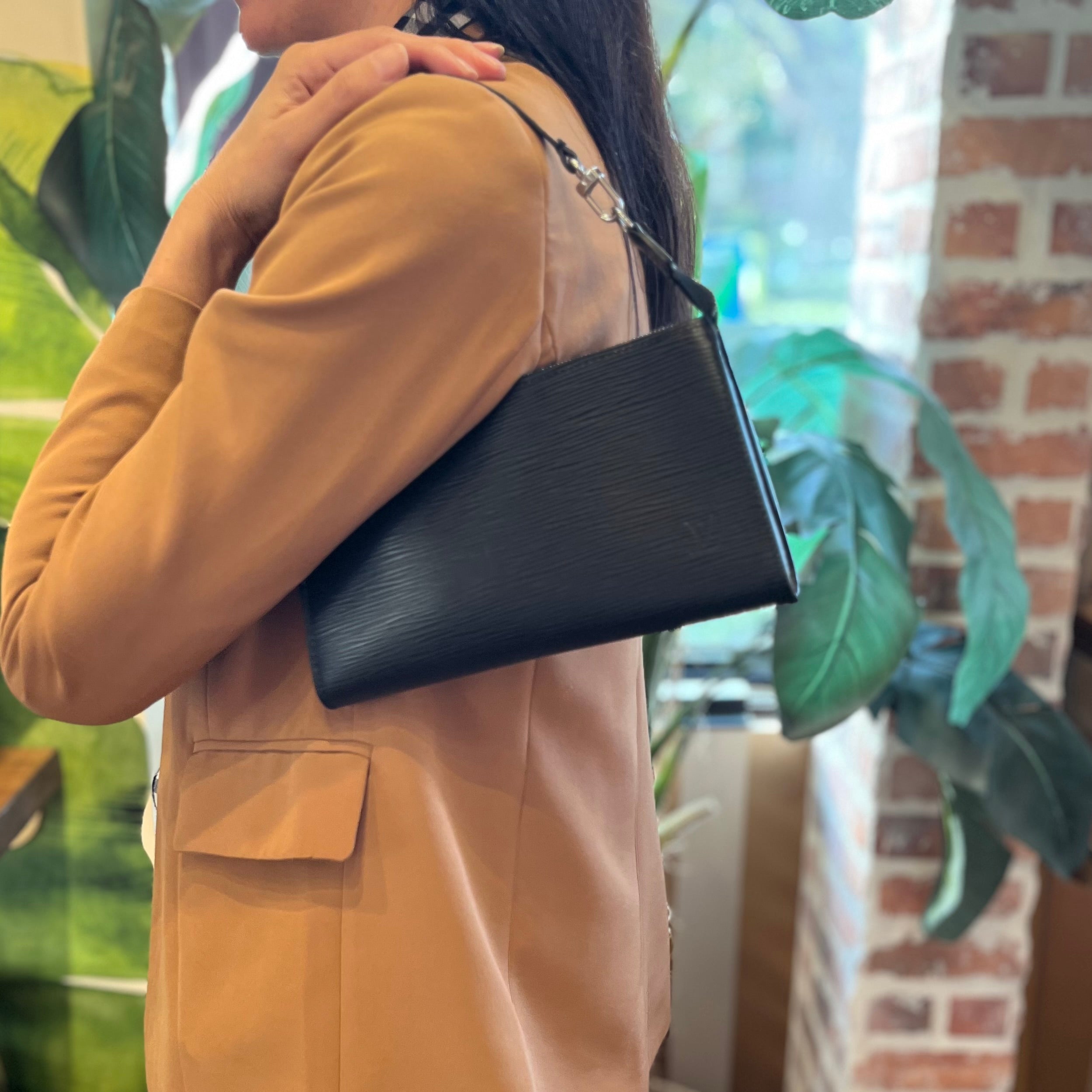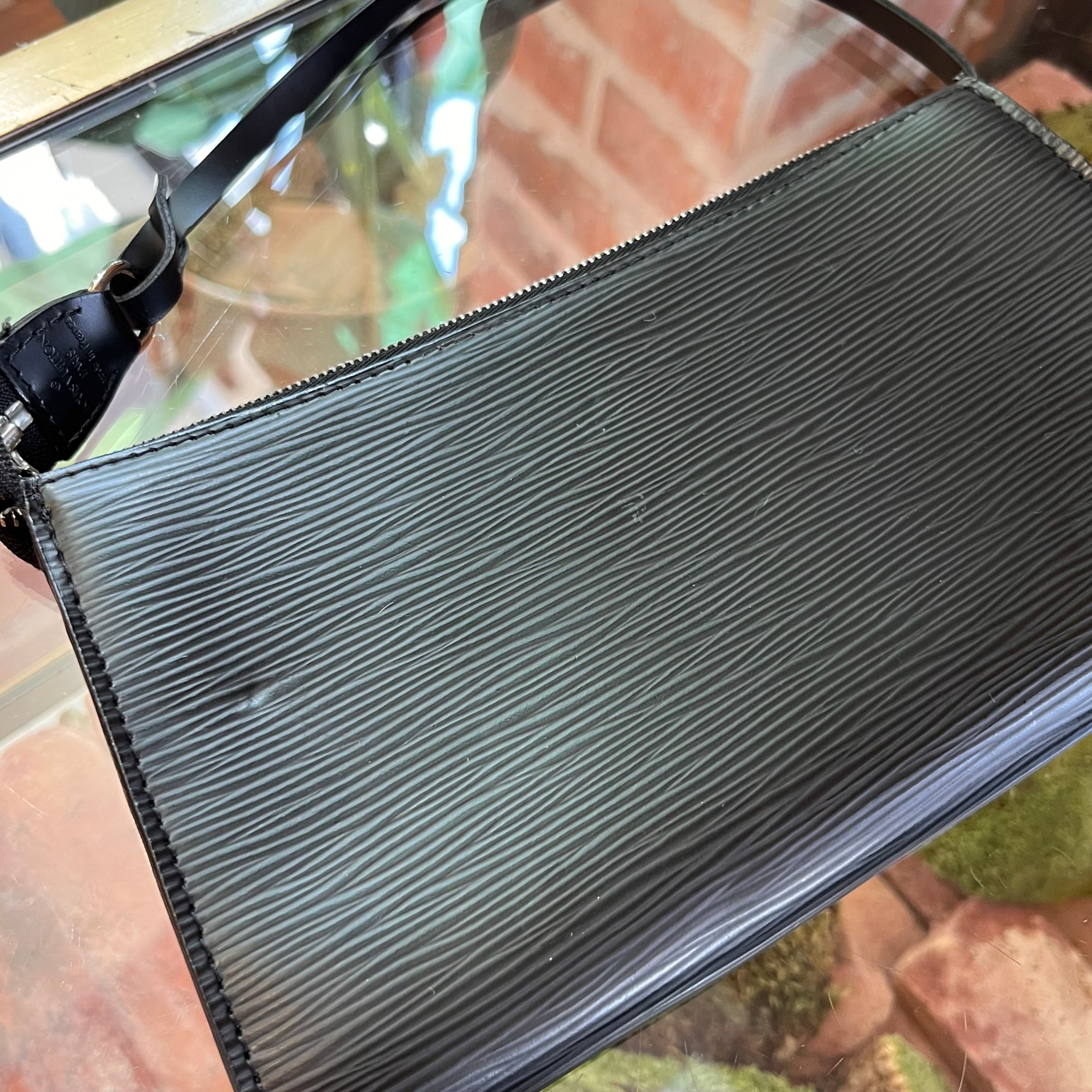 LOUIS VUITTON Pochette Accessories 24 Black Epi Leather Shoulder Bag