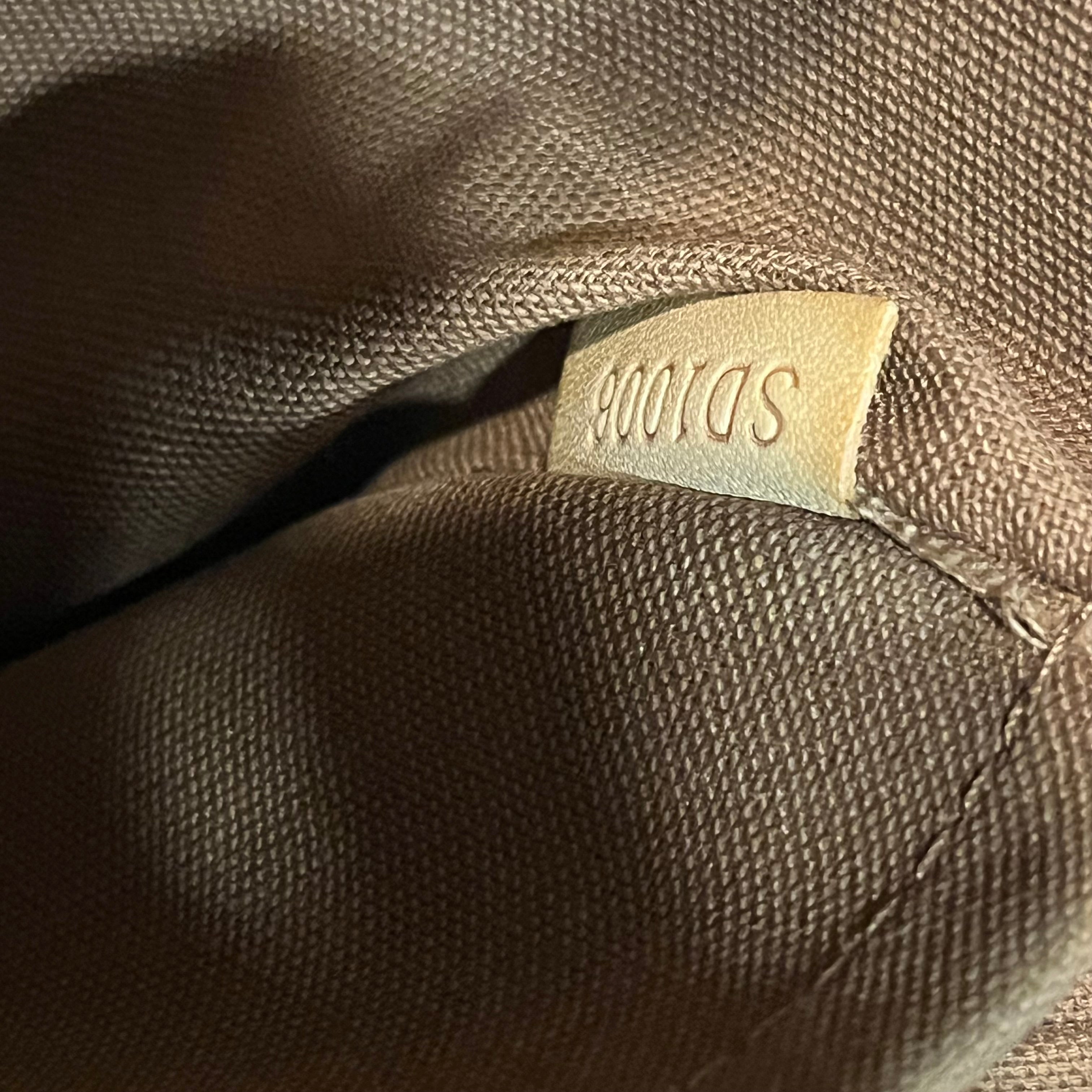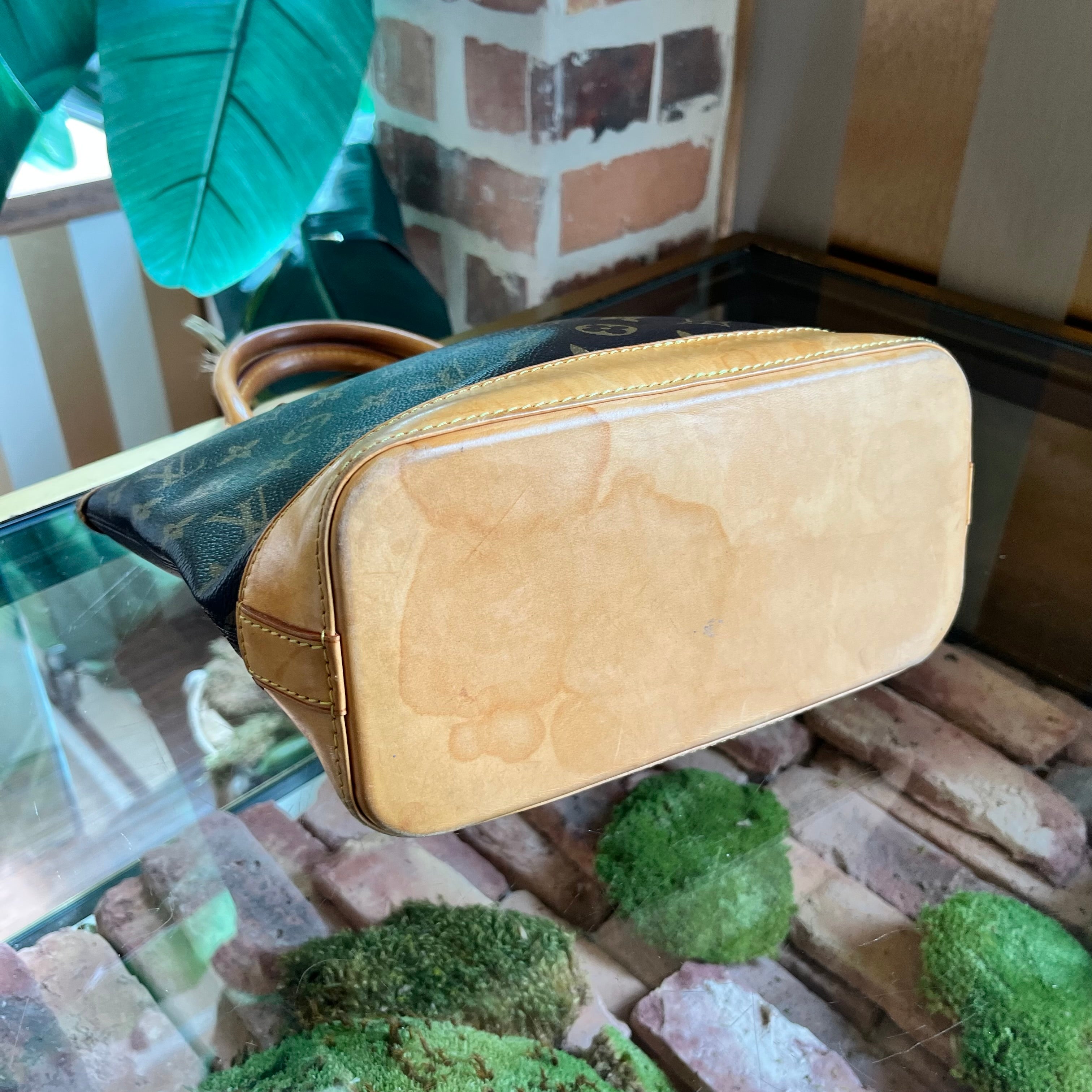 • Handle+Vachetta Leather: The vachetta leather has patianed displaying wear such as: water spots, scuffing, soiling, rubbing, markings, creasing, scratches while appearing darker in certain areas(please refer to photos).